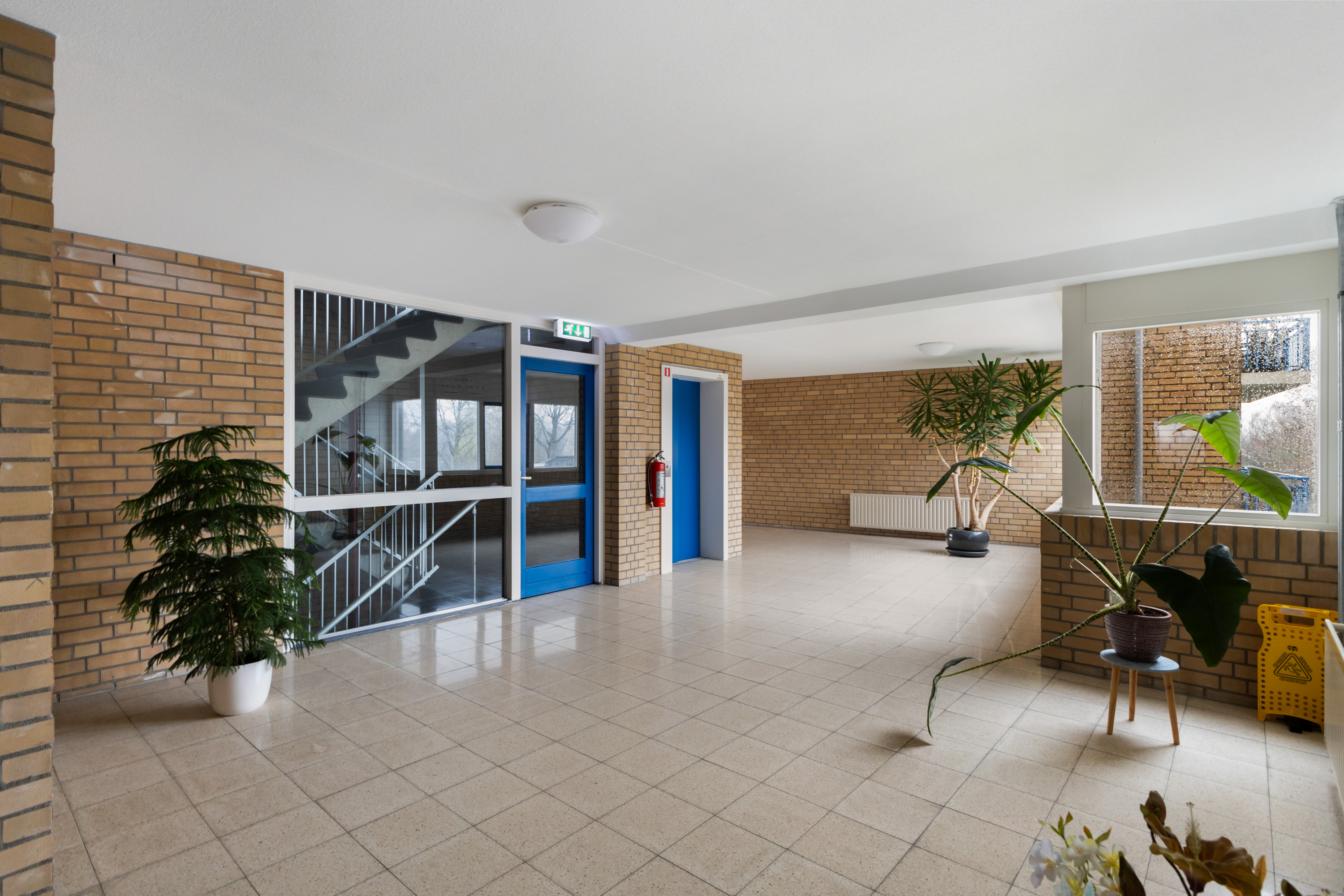 De afsluitbare hoofdingang beschikt over een video-intercom. Vanuit de hal met brievenbussen komt u in de ruimte met het trappenhuis en de lift. Hiervandaan is er toegang tot de appartementsverdiepingen, de parkeerkelder met de parkeerplaatsen en bergingen.