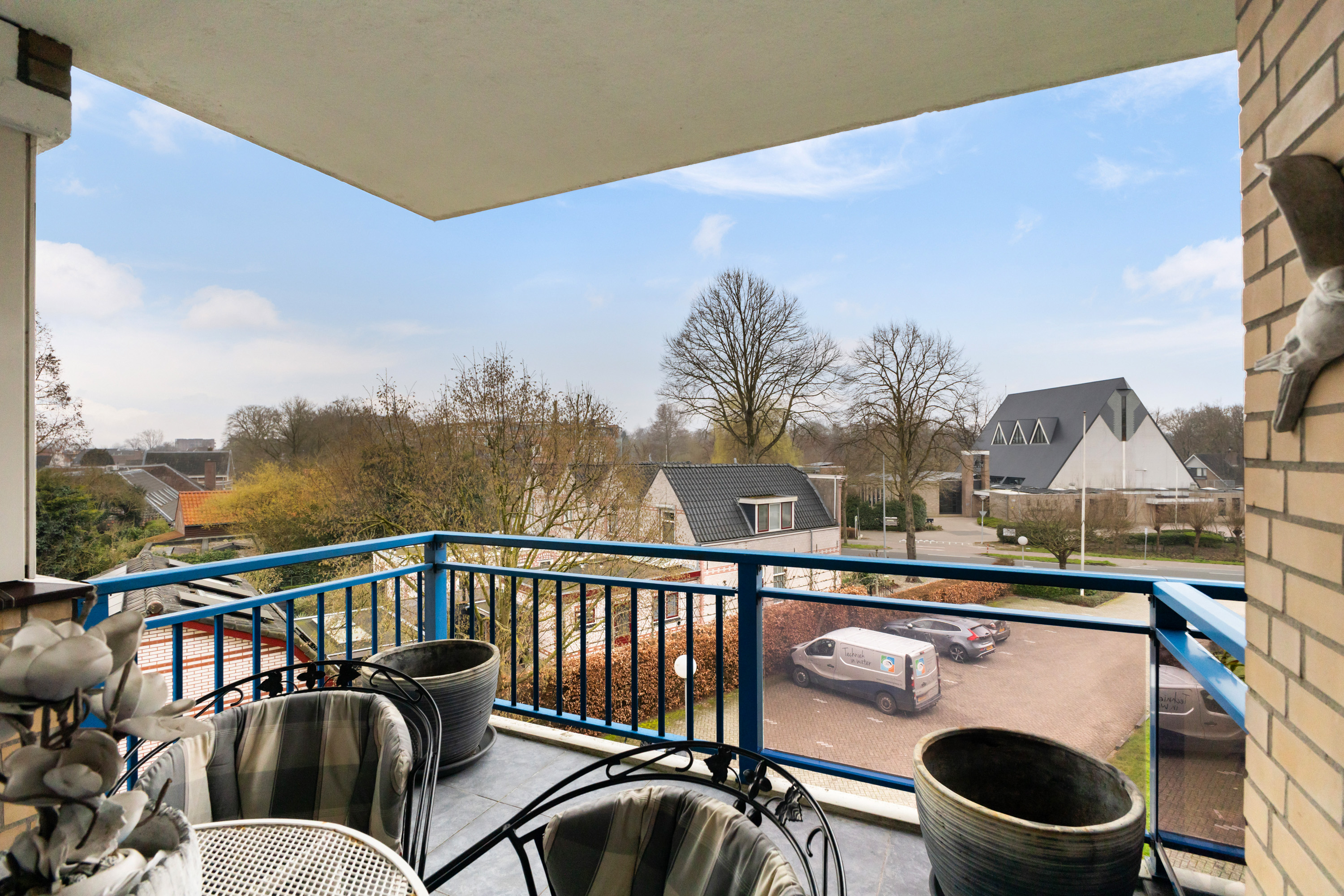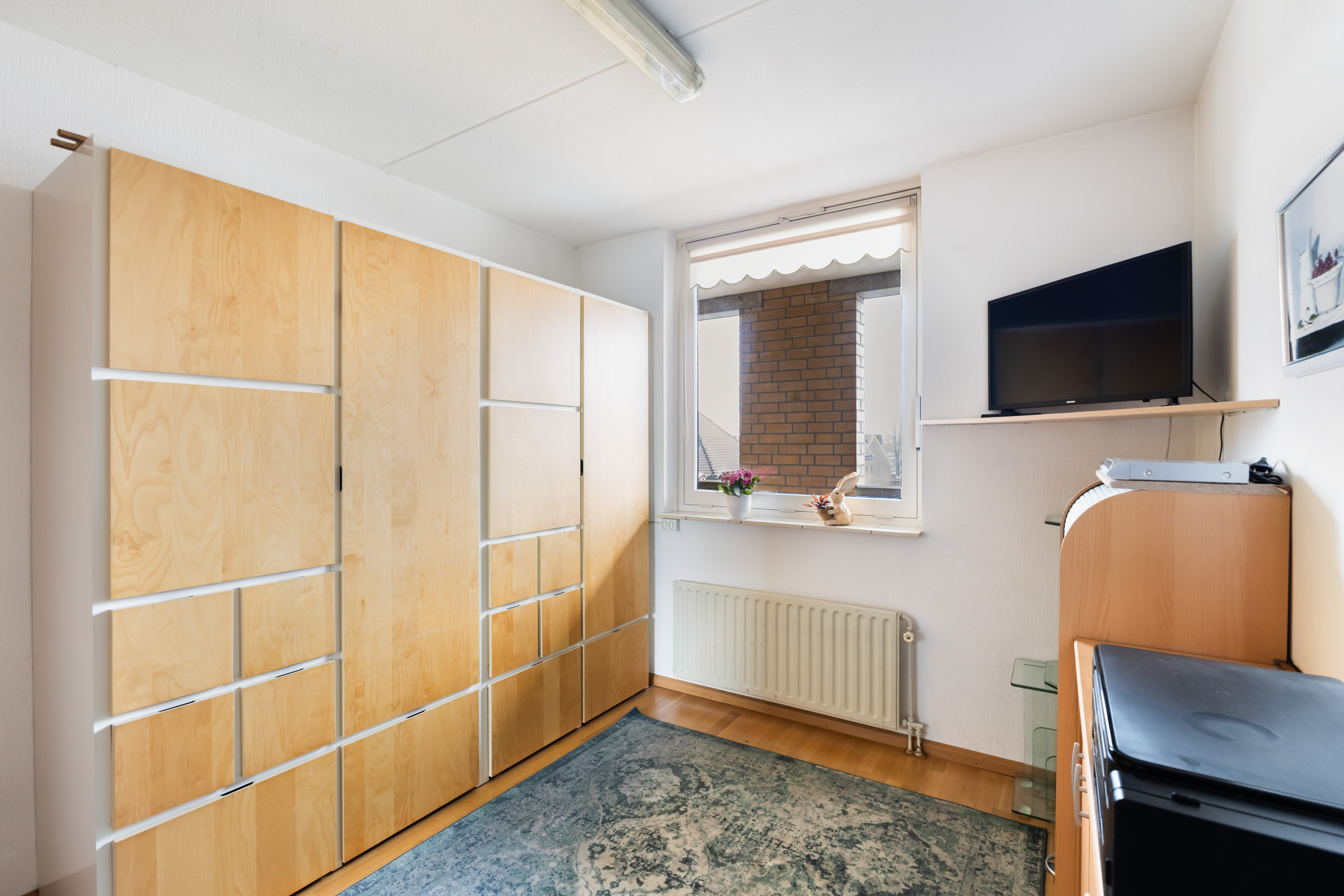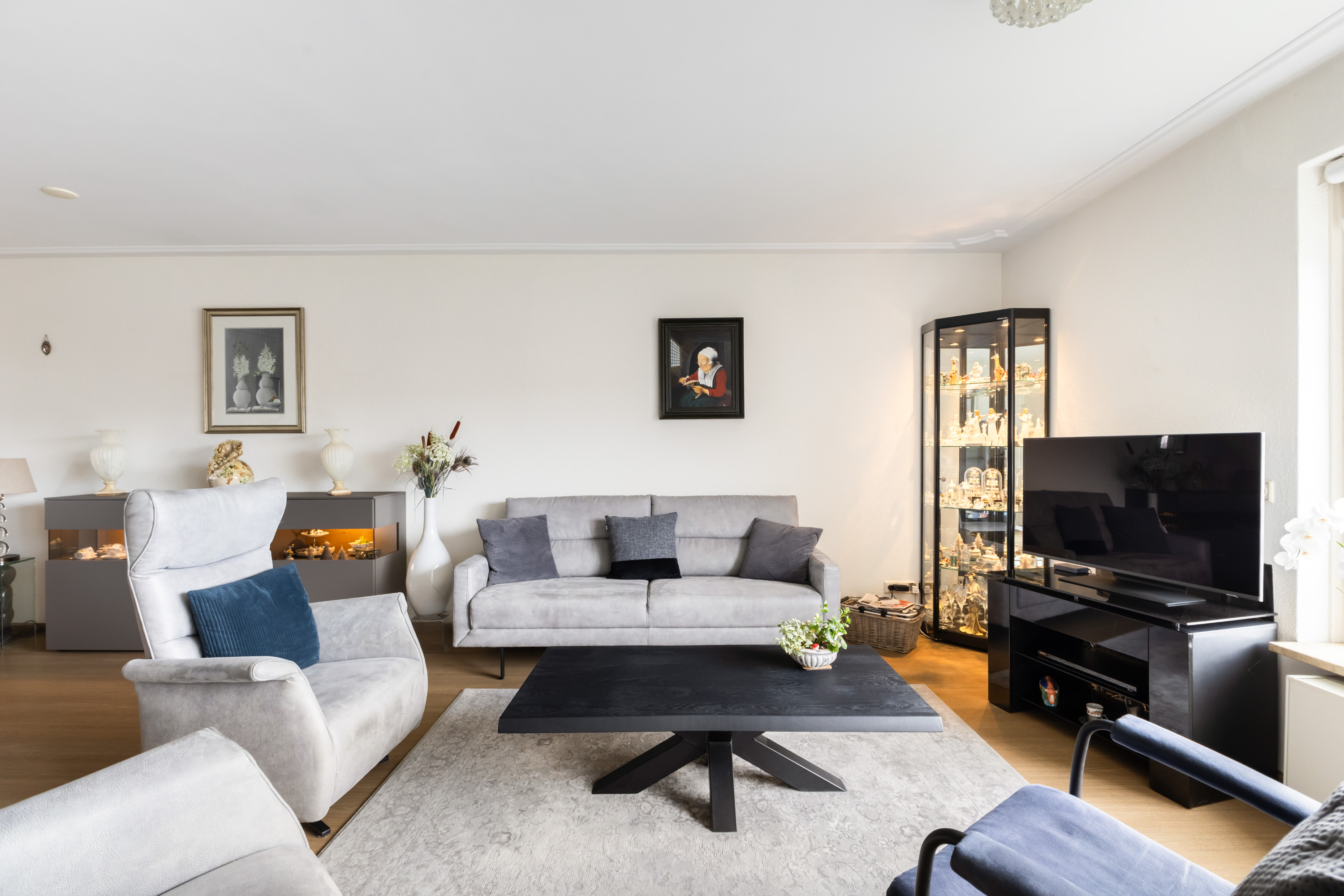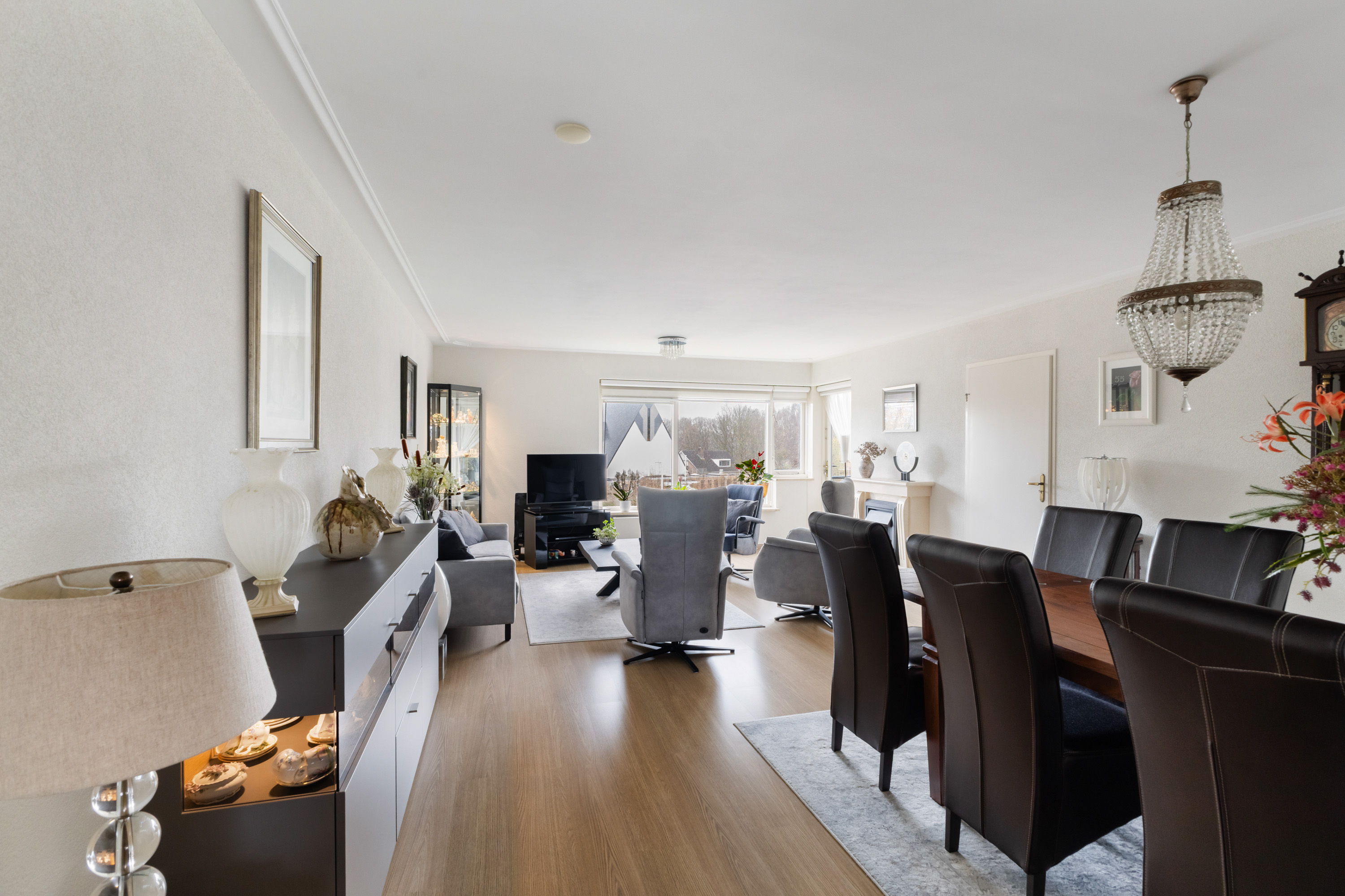 De woonkamer is heerlijk licht en heeft een deur naar het balkon aan de voorzijde. Het balkon is gesitueerd op het westen en vanaf hier is er vrij uitzicht over de groene omgeving.