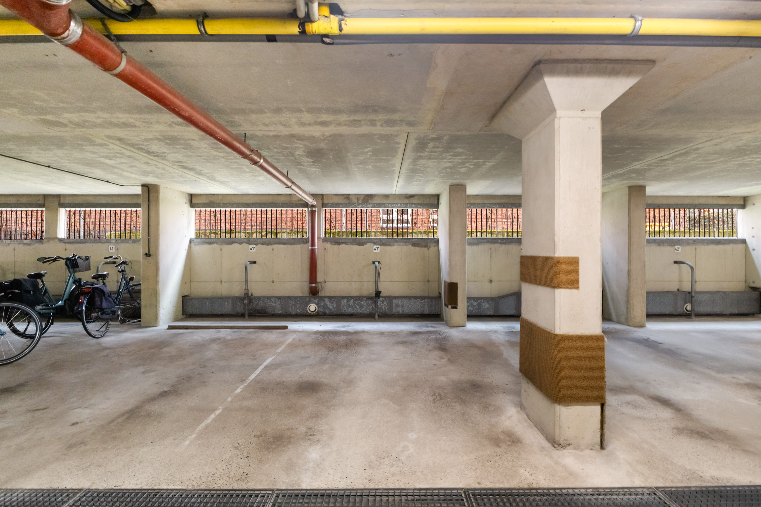 In de parkeerkelder ligt de afgesloten fietsenberging behorende bij het appartement en een aangewezen privéparkeerplaats.