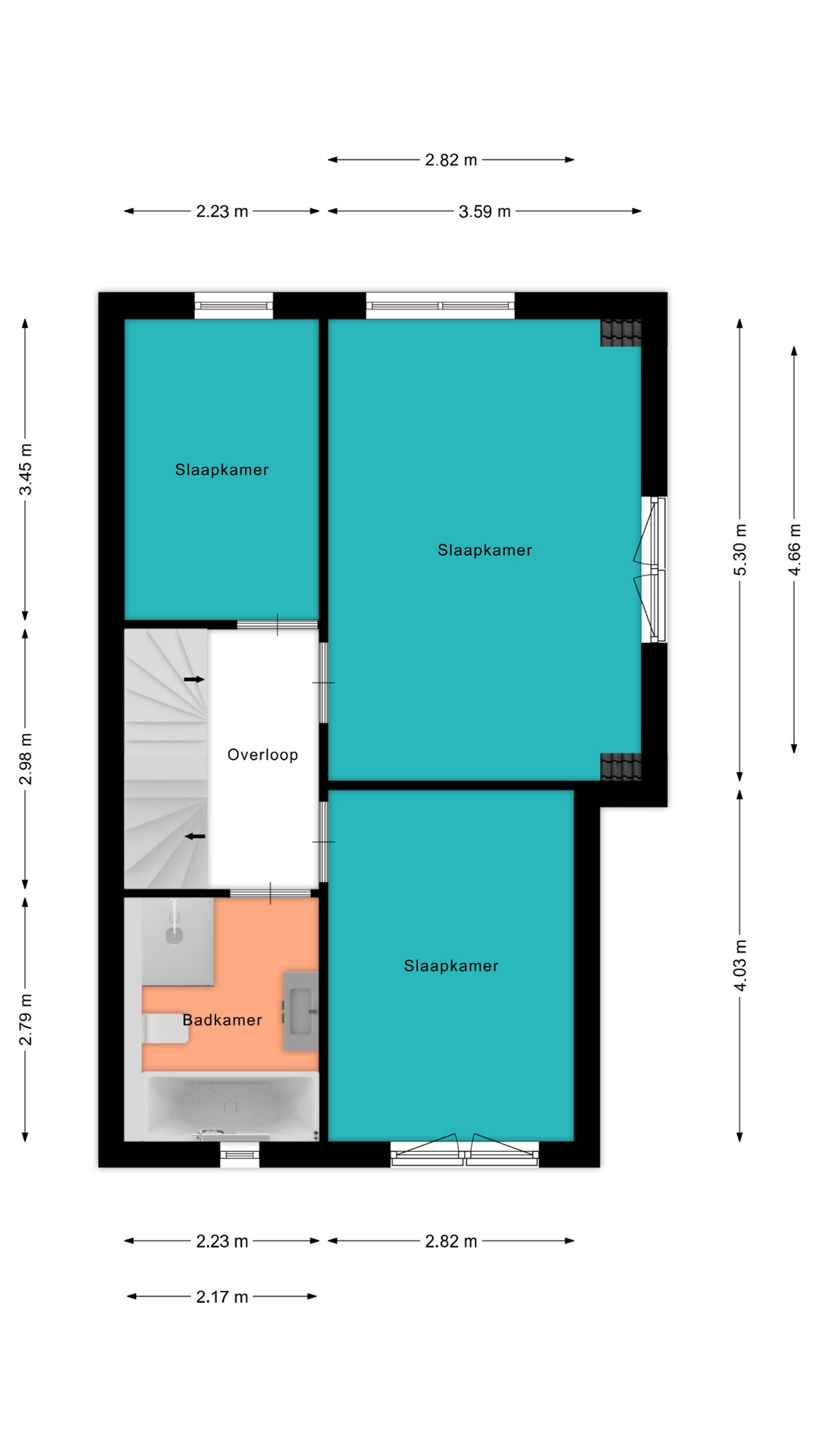 Voor de afmetingen en indeling raadpleeg de gedetailleerde plattegronden.