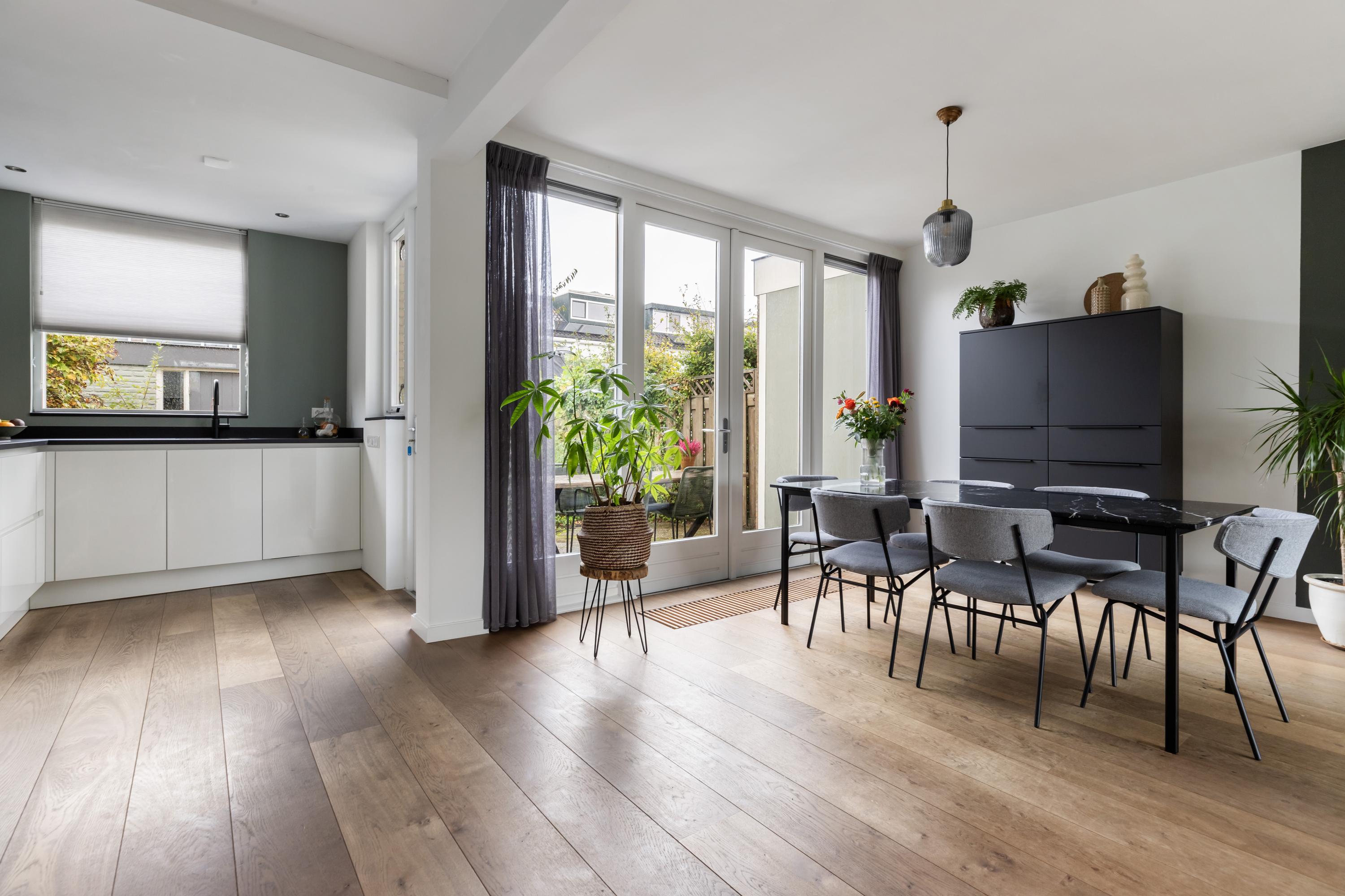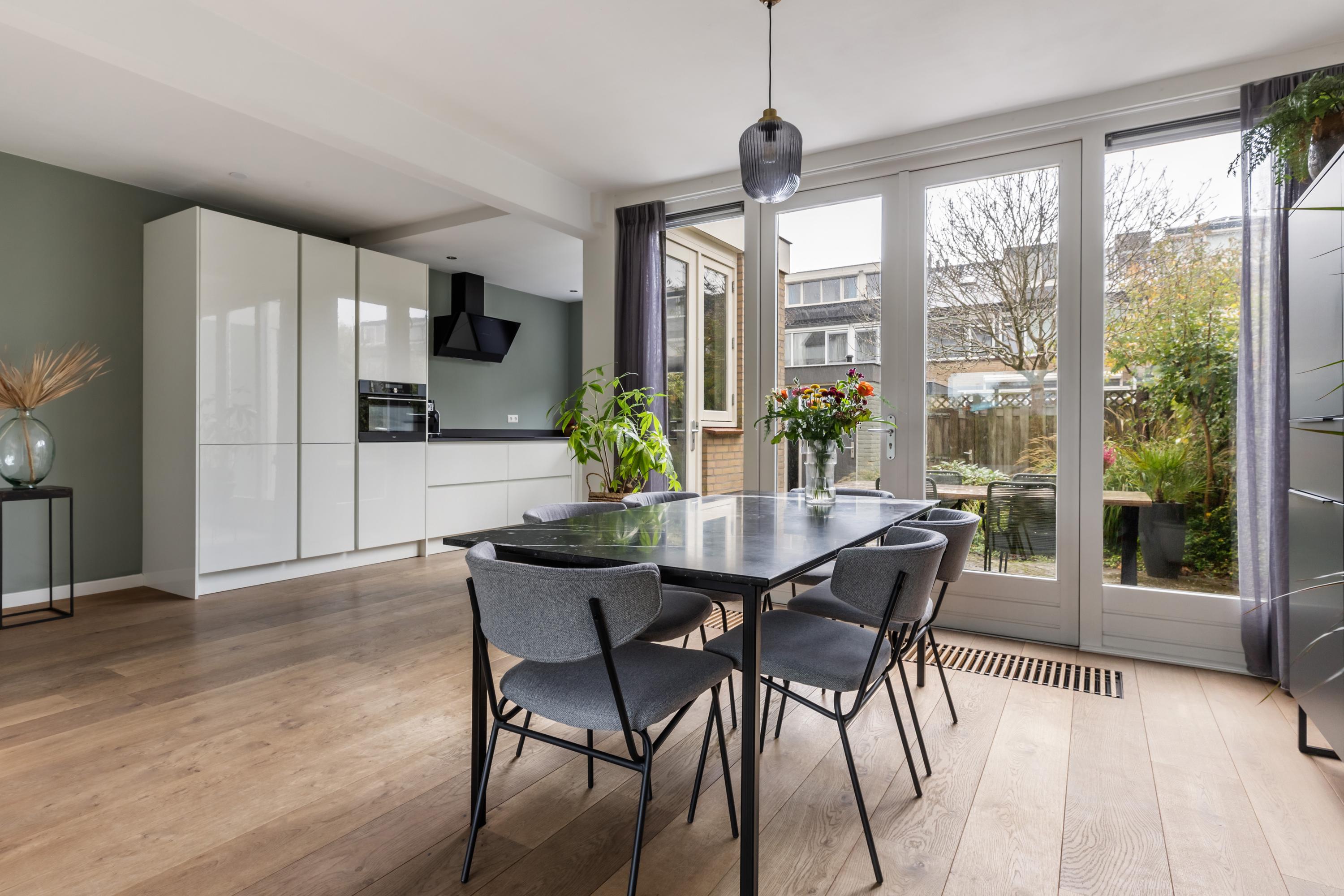 Het perfecte plaatje! Deze ruime en strak afgewerkte eengezinswoning heeft alles in huis voor optimaal wooncomfort. Geniet van de royale woonkamer met openslaande deuren naar de tuin en een sfeervolle haard, perfect voor gezellige diners of ontspannen avonden. De lichte en open keuken nodigt uit om de lekkerste gerechten te bereiden en de gerenoveerde badkamer is de perfecte plek om echt tot rust te komen. Met vijf slaapkamers heeft iedereen zijn eigen plekje. De heerlijke tuin heeft een stenen berging voor de fietsen en er is een praktische achterom. Dat wordt binnen- en buitenshuis genieten!
