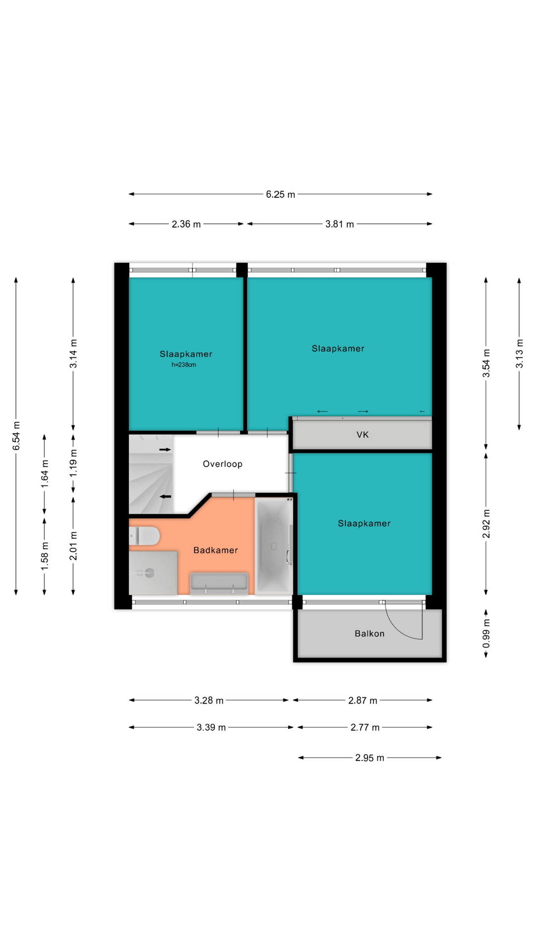 Voor de afmetingen en indeling raadpleeg de gedetailleerde plattegrond.
