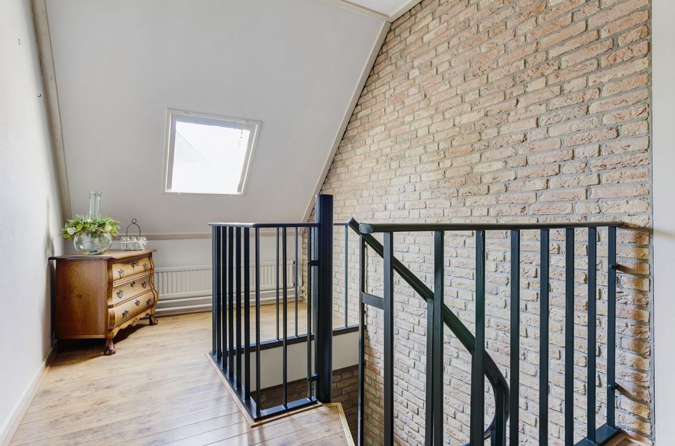 De overloop is voorzien van een dakraam voor een goede lichtinval en een luik naar de bergzolder. Op deze verdieping vind je vier ruime slaapkamers, allen met een dakkapel, wastafel, vaste kasten en inbouwkasten. Door de hoge kap zijn de kamers extra ruimtelijk.