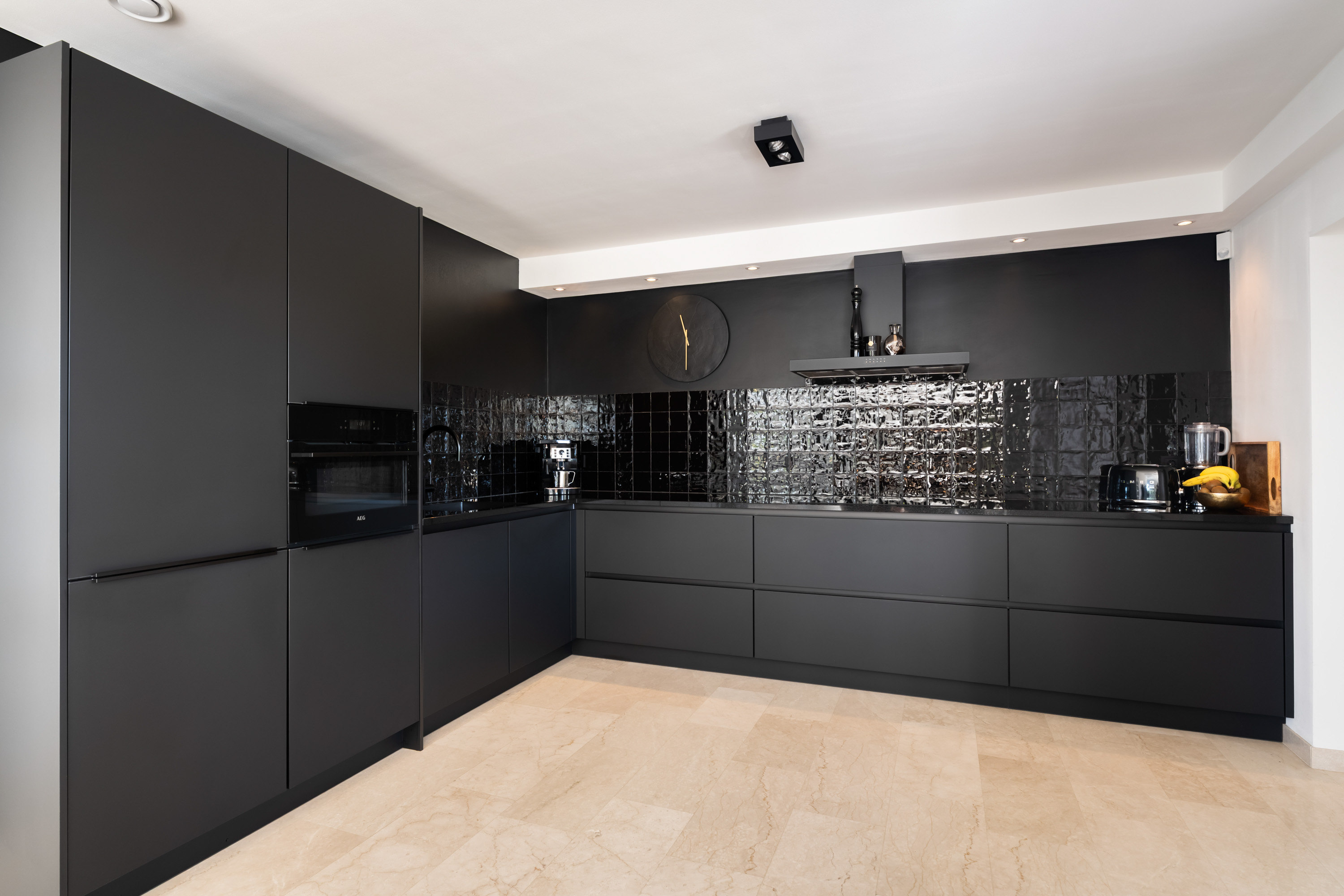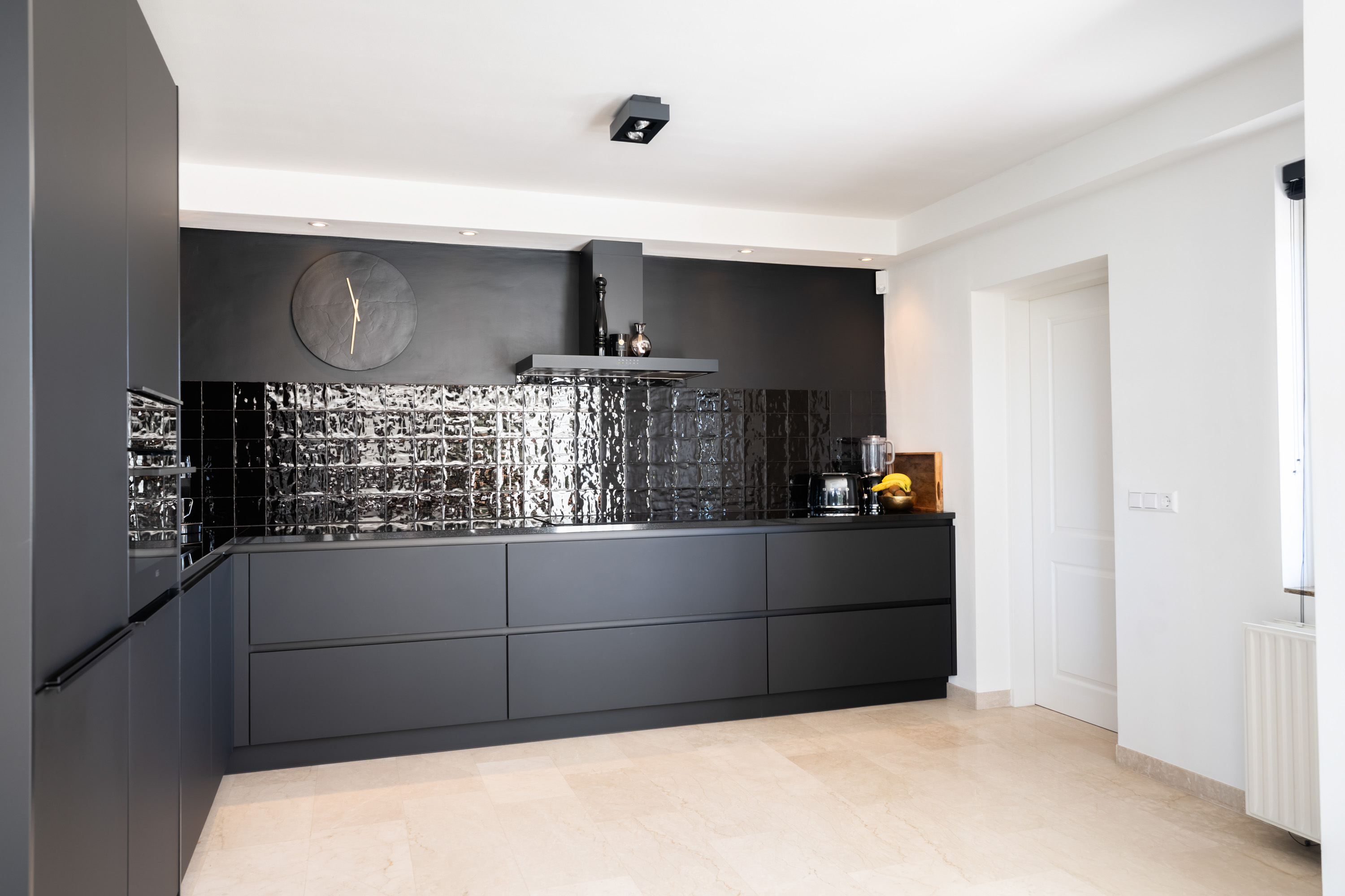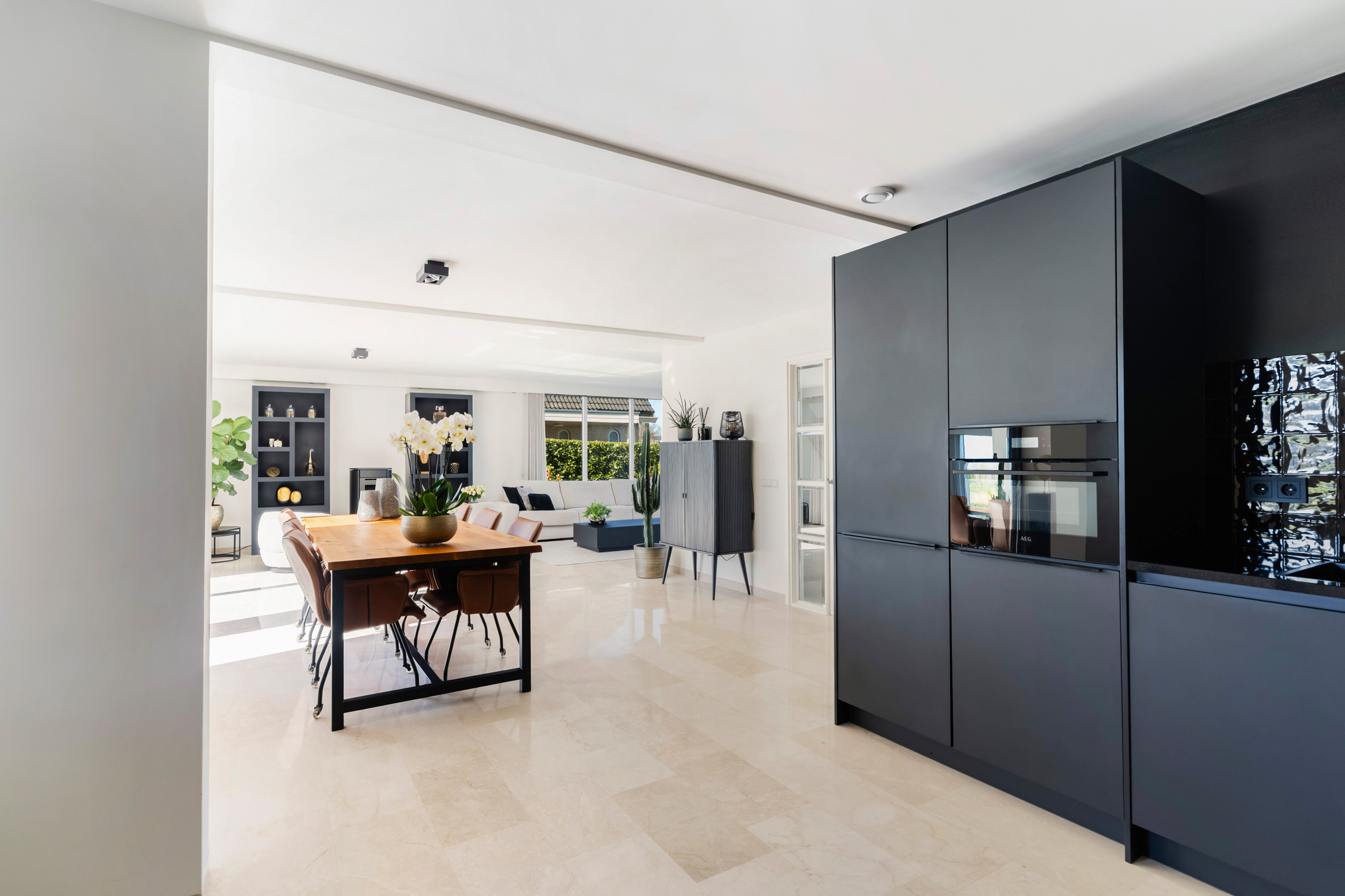 Aansluitend aan het zitgedeelte is de moderne open keuken gelegen, voorzien van de volgende inbouwapparatuur: