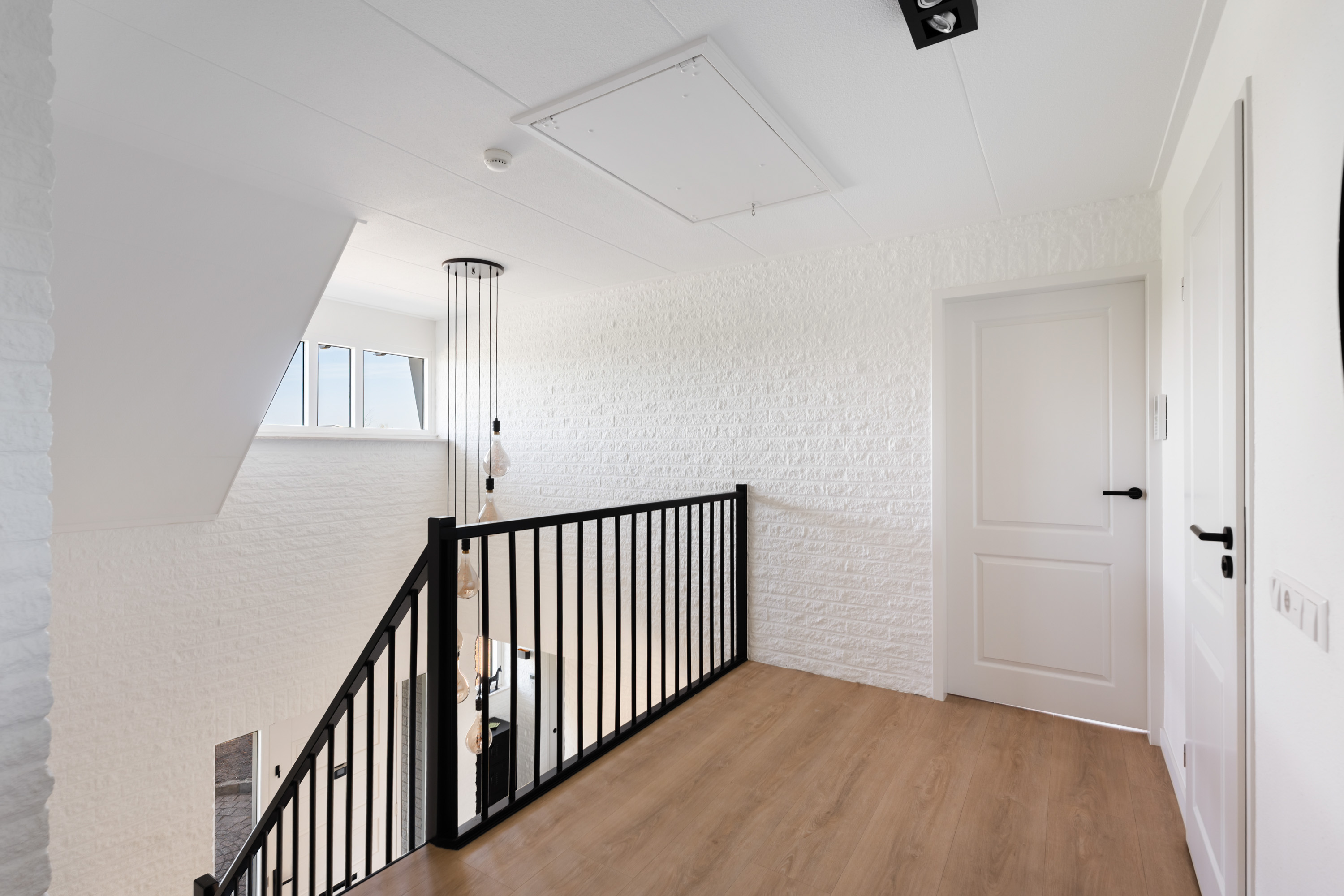 Het luik op de overloop geeft toegang tot de brede bergvliering. Hier staan de CV-ketel en de unit voor de mechanische ventilatie opgesteld. Daarnaast zijn er twee dakramen aanwezig voor extra daglichtinval.