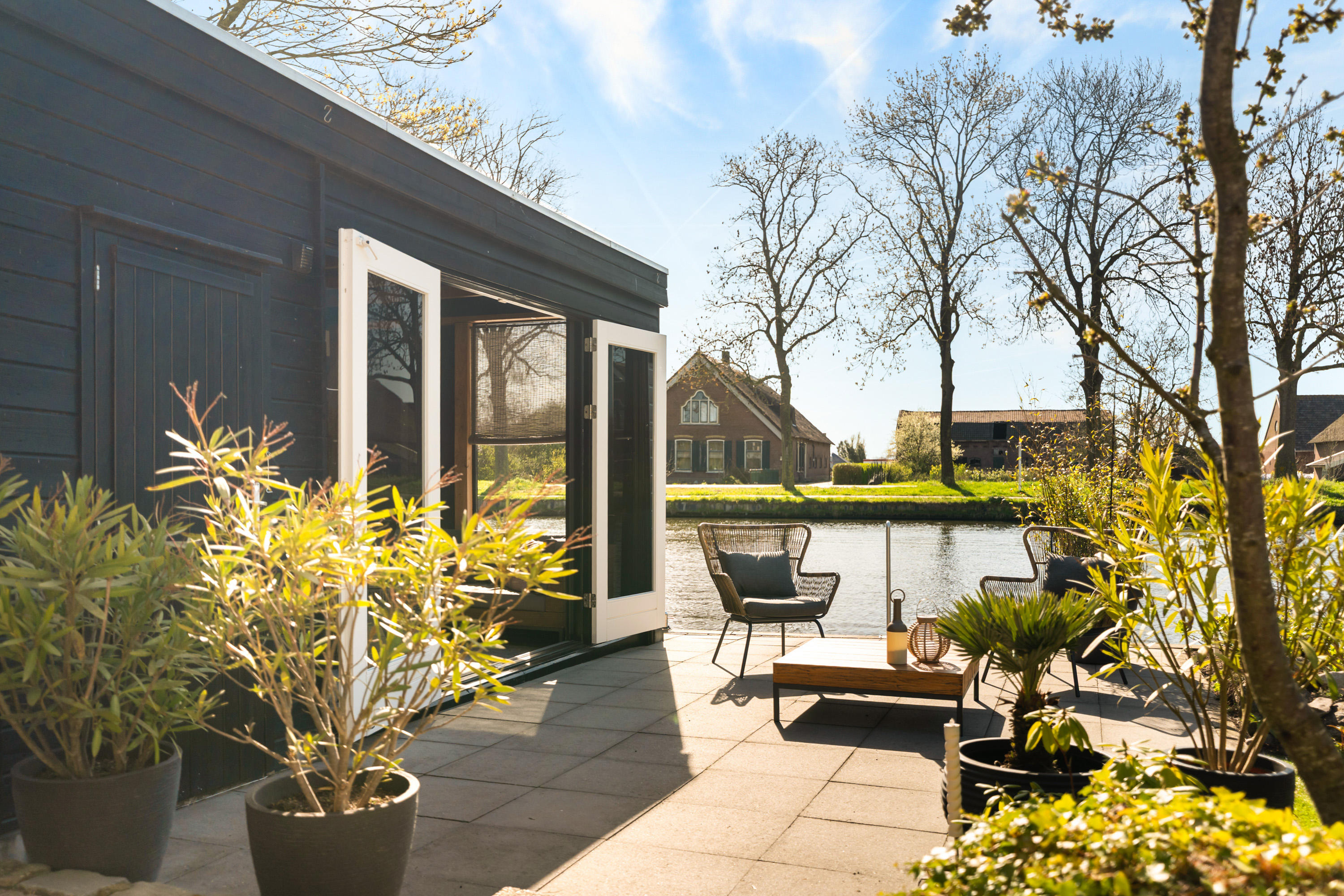 - Achtertuin grenst aan vaarwater de Oude Rijn