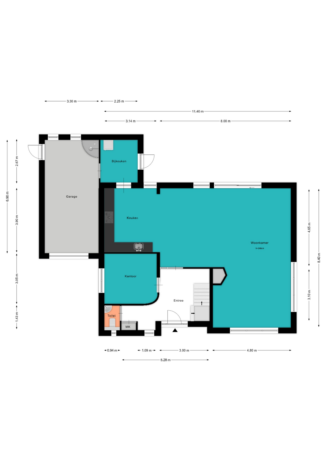 Voor de afmetingen en indeling raadpleeg de gedetailleerde plattegrond.
