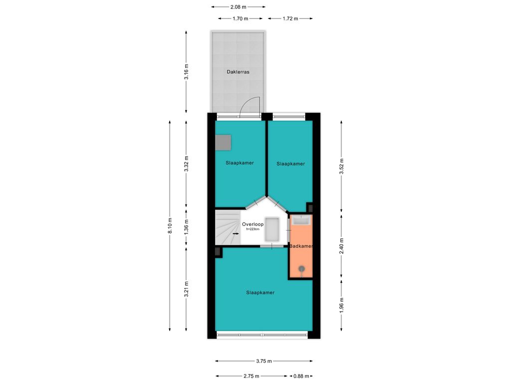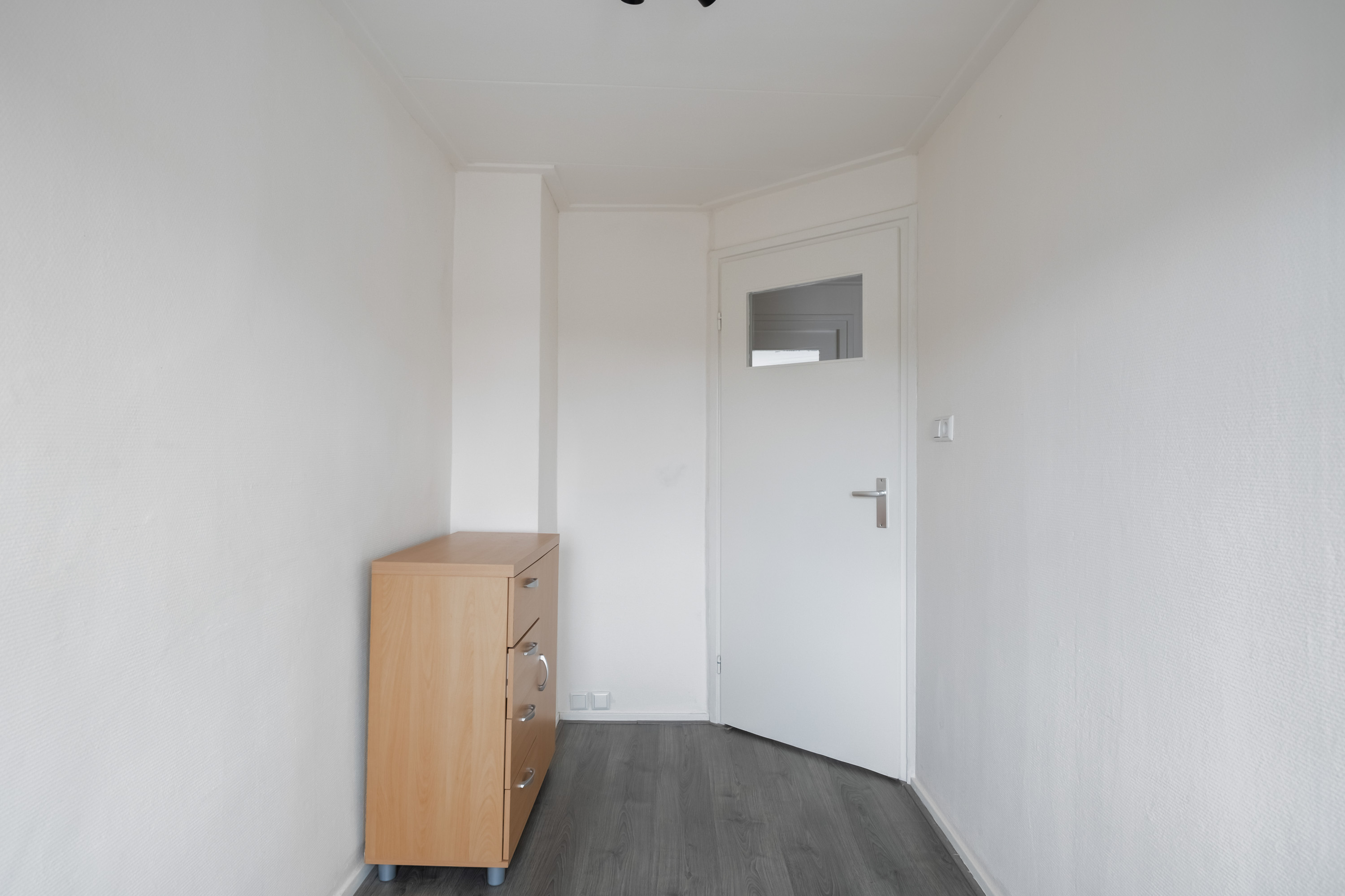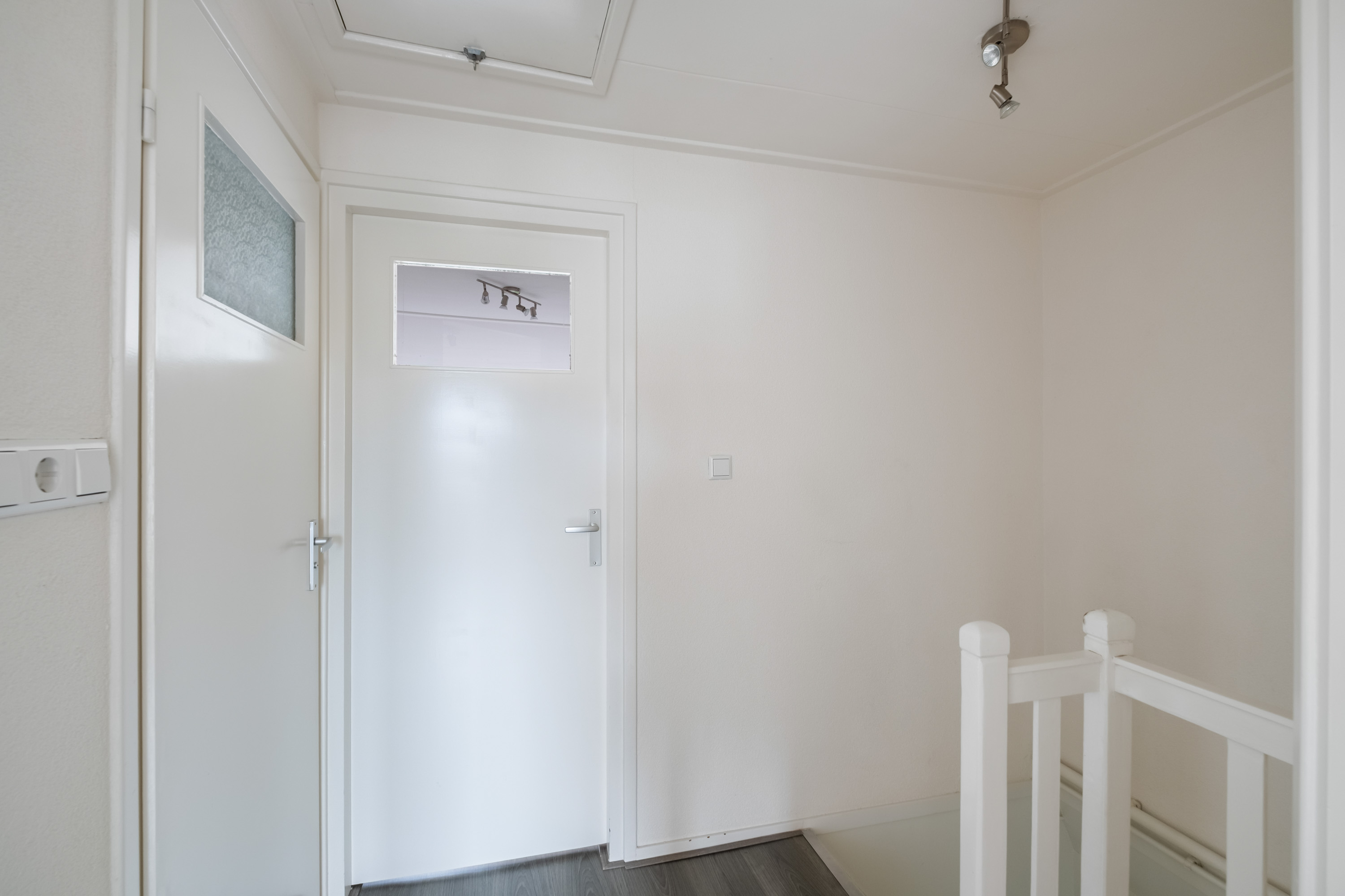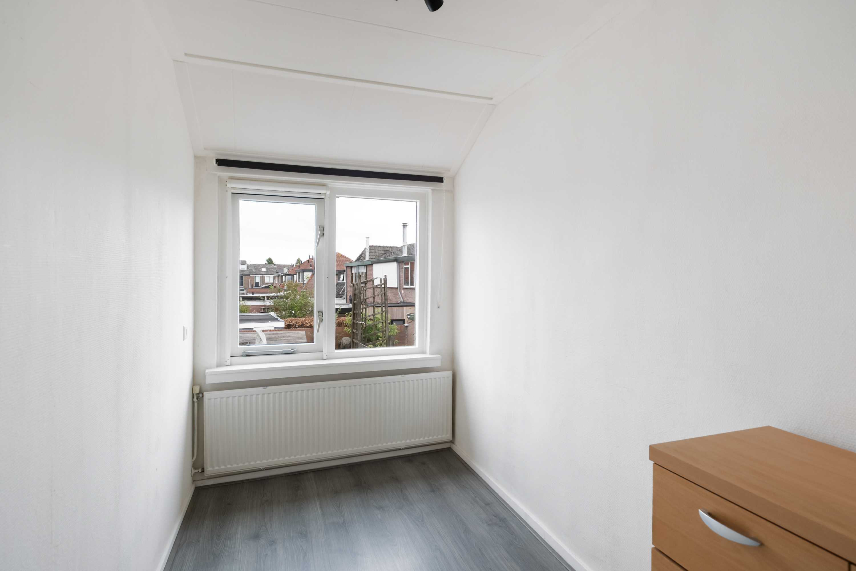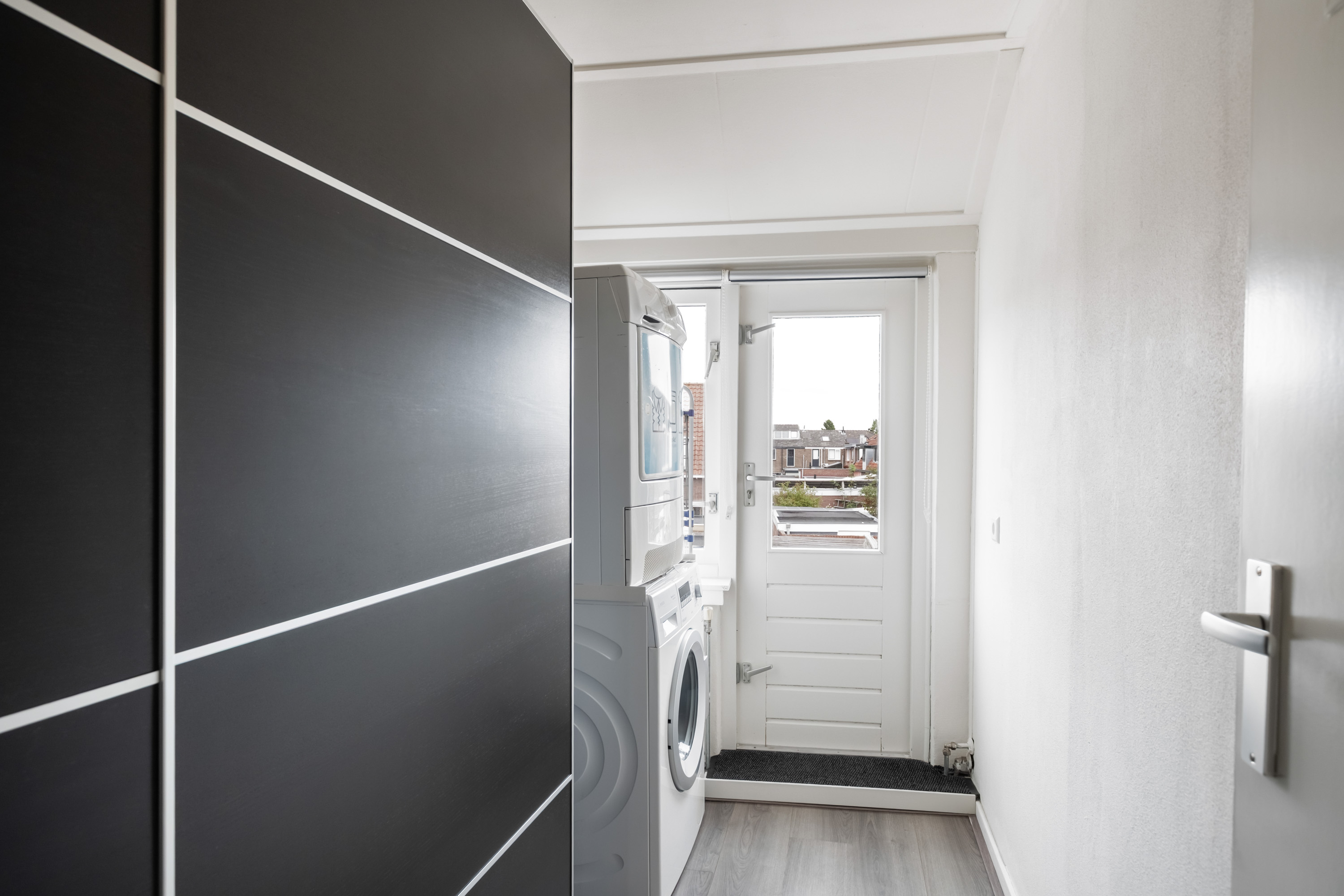 Vanaf de overloop kom je in de woningbrede slaapkamer met dakkapel aan de voorzijde. Dankzij de vele ramen geniet je hier van een heerlijk lichte en ruimtelijke sfeer. Aan de achterzijde bevinden zich de tweede en derde slaapkamer. In de linker kamer vind je de aansluitingen voor de wasapparatuur en via een loopdeur bereik je direct het zonnige dakterras. De tussengelegen badkamer is volledig betegeld en voorzien van een inloopdouche en een wastafelmeubel. Op de overloop kom je via een luik met vlizotrap op de royale bergvliering, waar de CV-ketel is opgesteld.