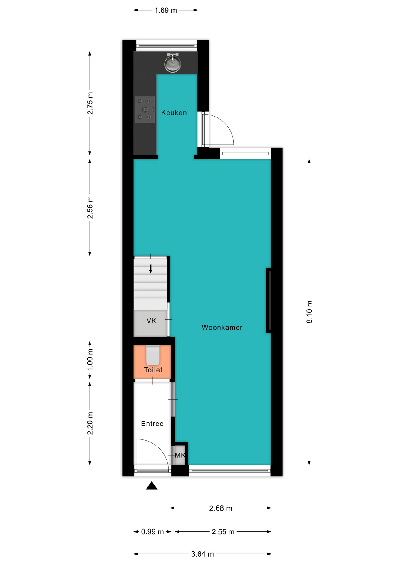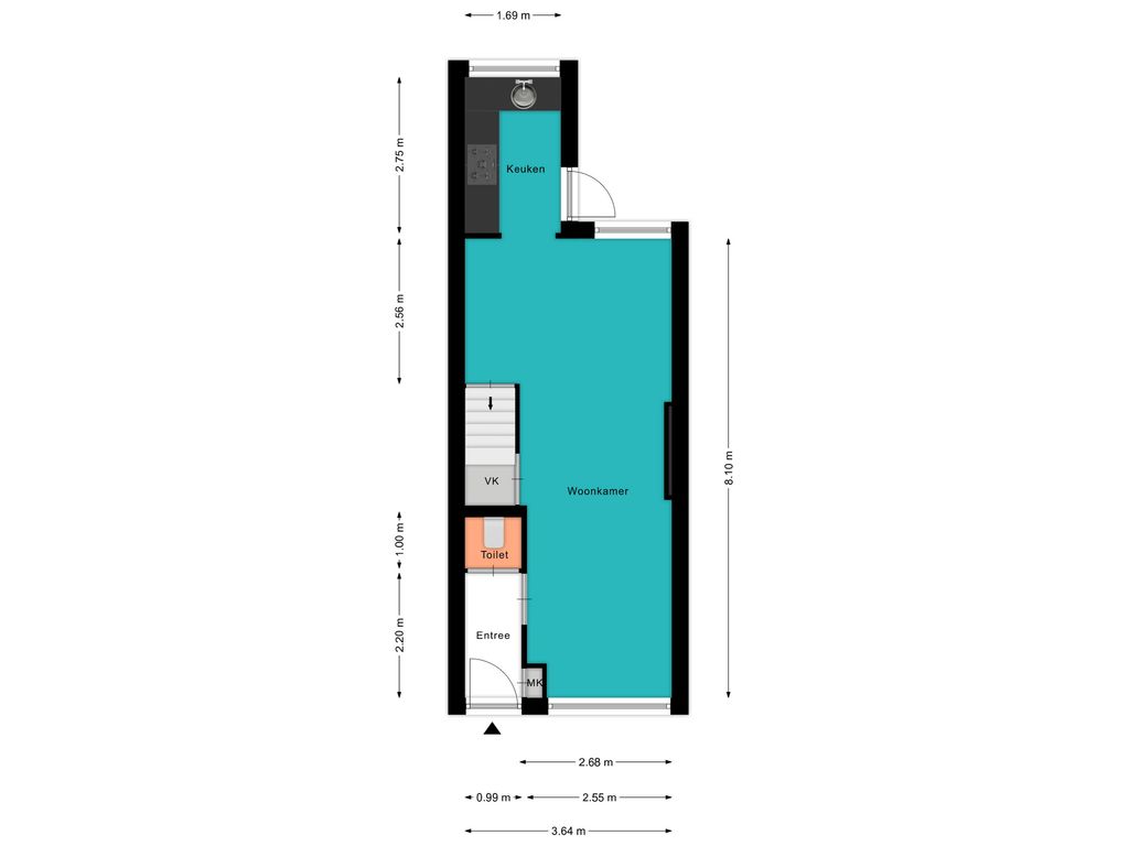 Voor de afmetingen en indeling raadpleeg de gedetailleerde plattegrond.