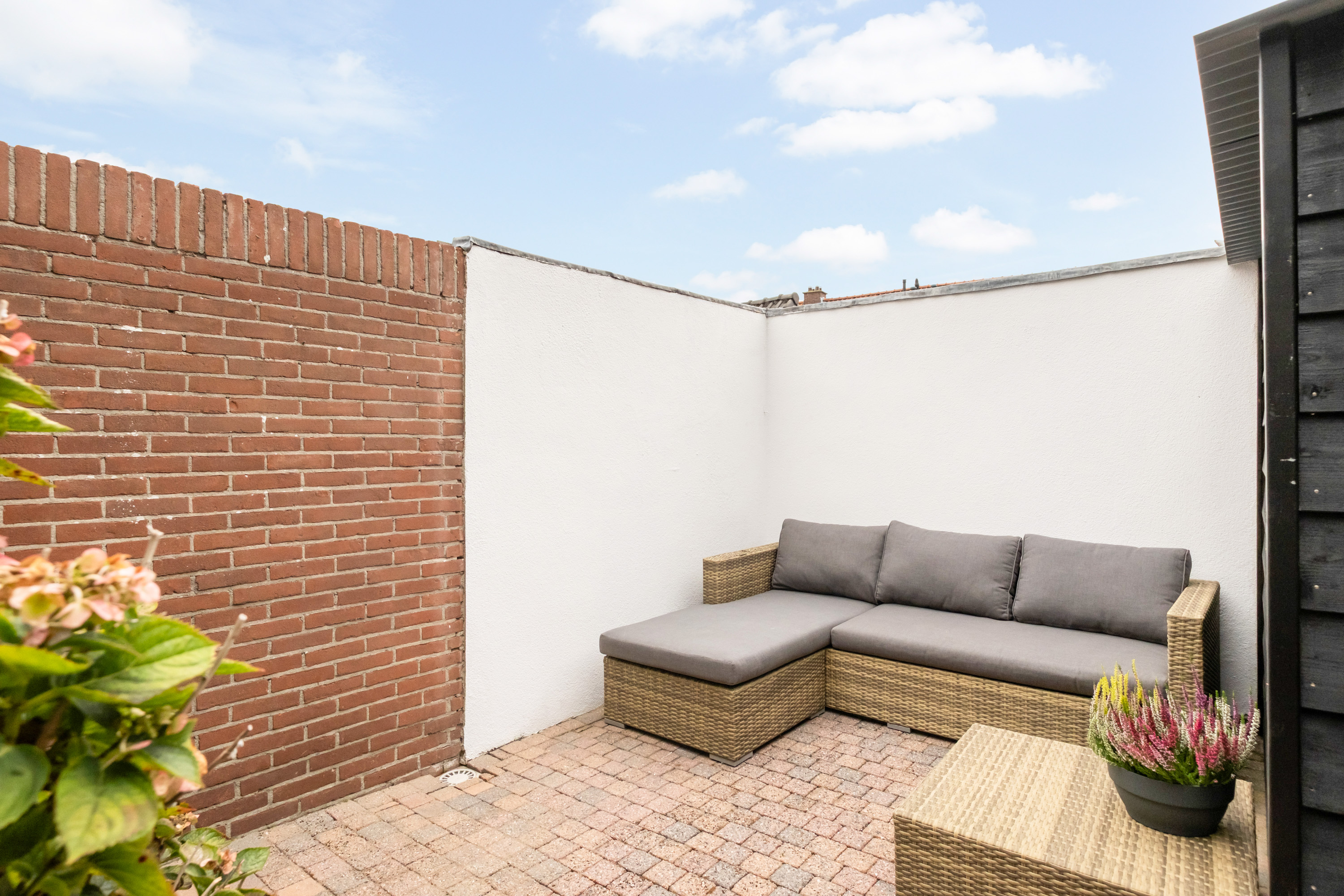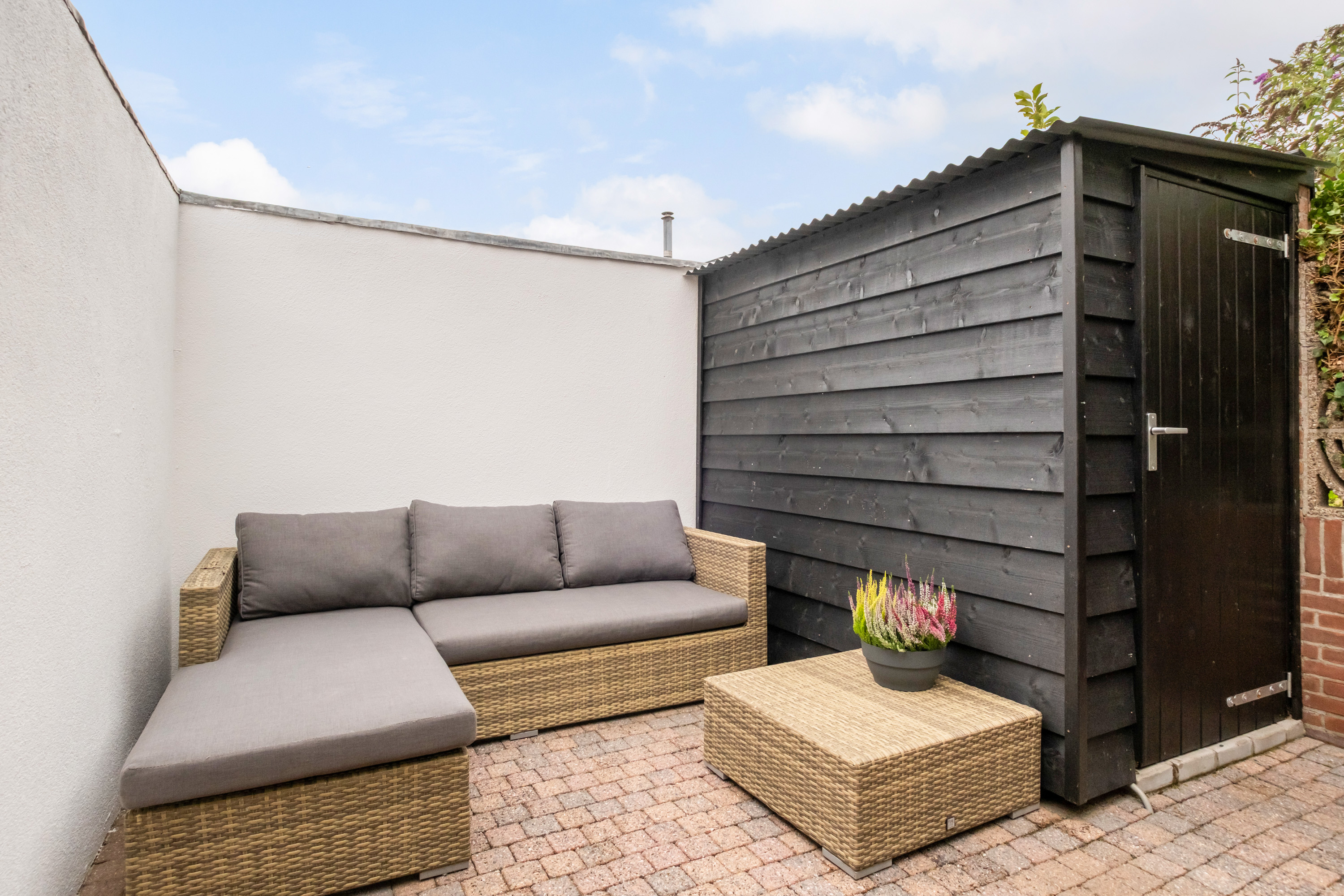 Via de deur in de keuken is de zonnige tuin op het zuidoosten bereikbaar. De praktische fietsenberging met elektra geeft toegang tot de steeg aan de achterzijde.