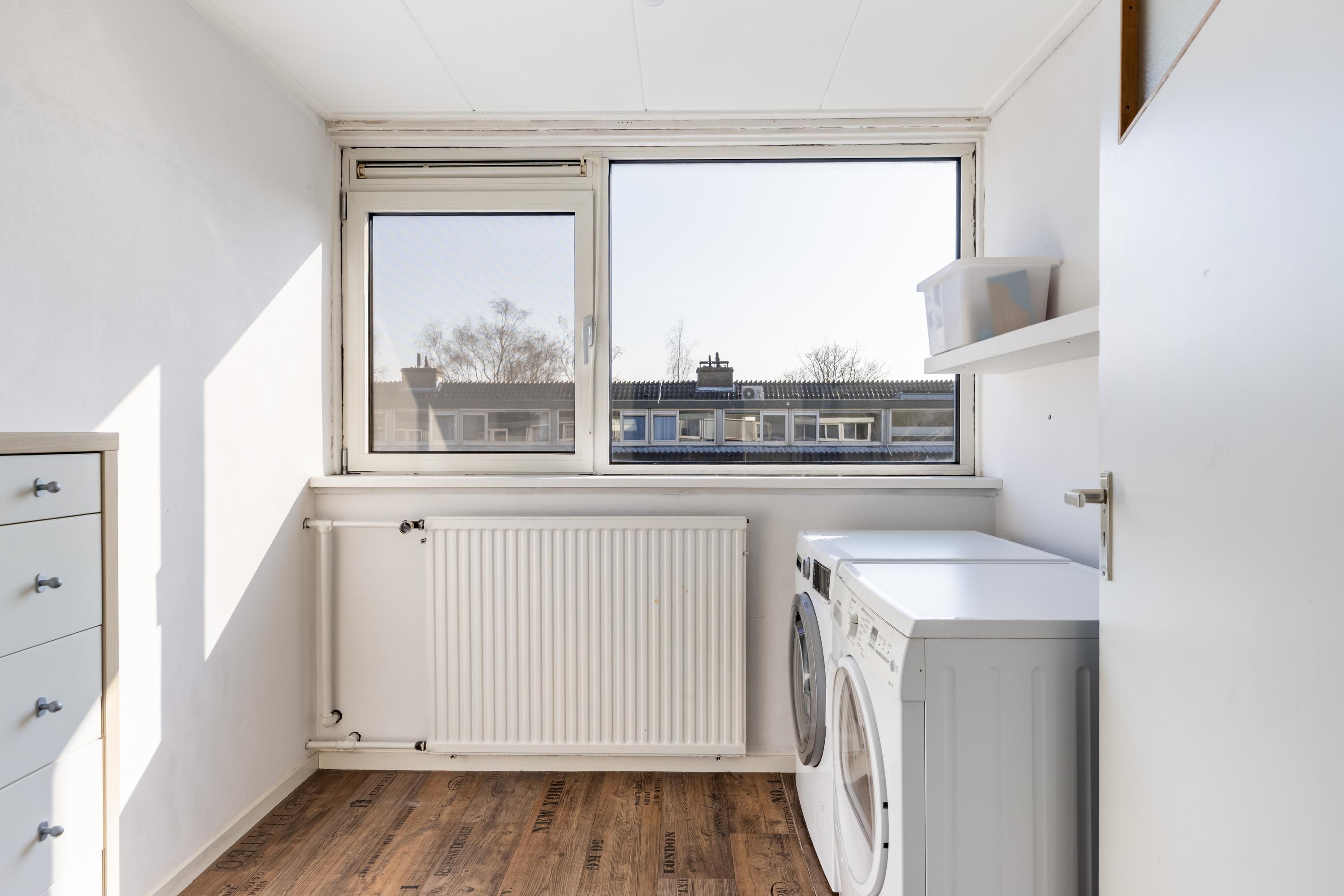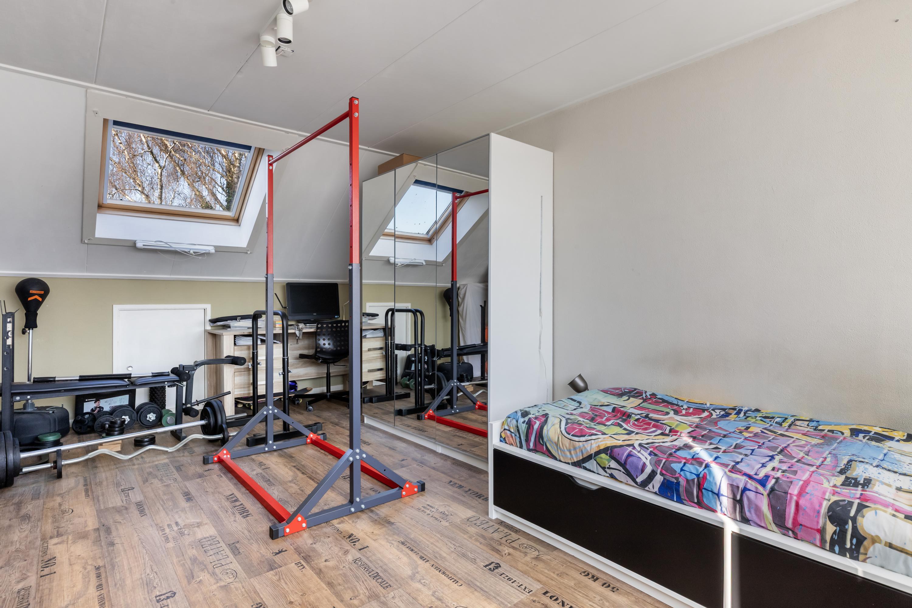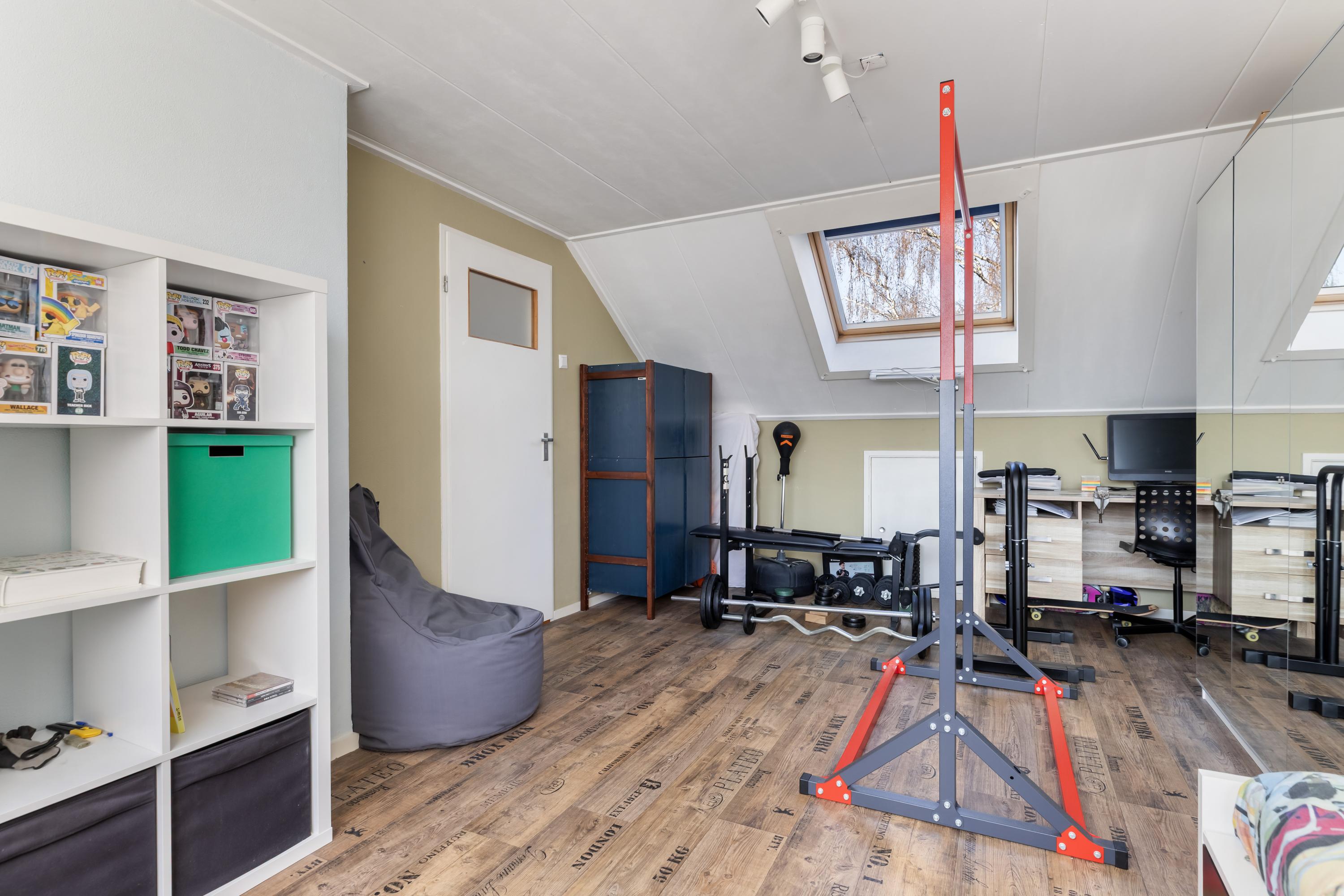 De overloop van de tweede verdieping herbergt de CV-ketel en geeft toegang tot de vierde slaapkamer en de wasruimte. De vierde slaapkamer is over de volledige lengte van de woning gelegen en heeft aan de voorzijde een dakraam. Daarnaast is er aan de achterzijde een woningbrede dakkapel, wat zorgt voor aanzienlijk meer ruimte en veel daglicht.