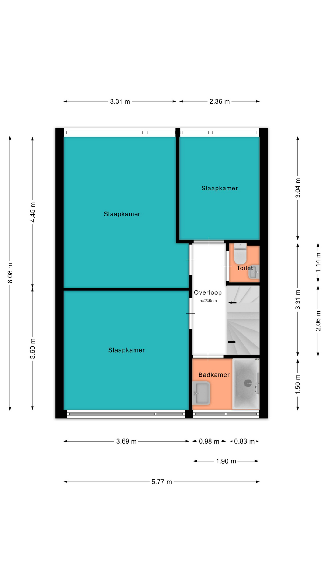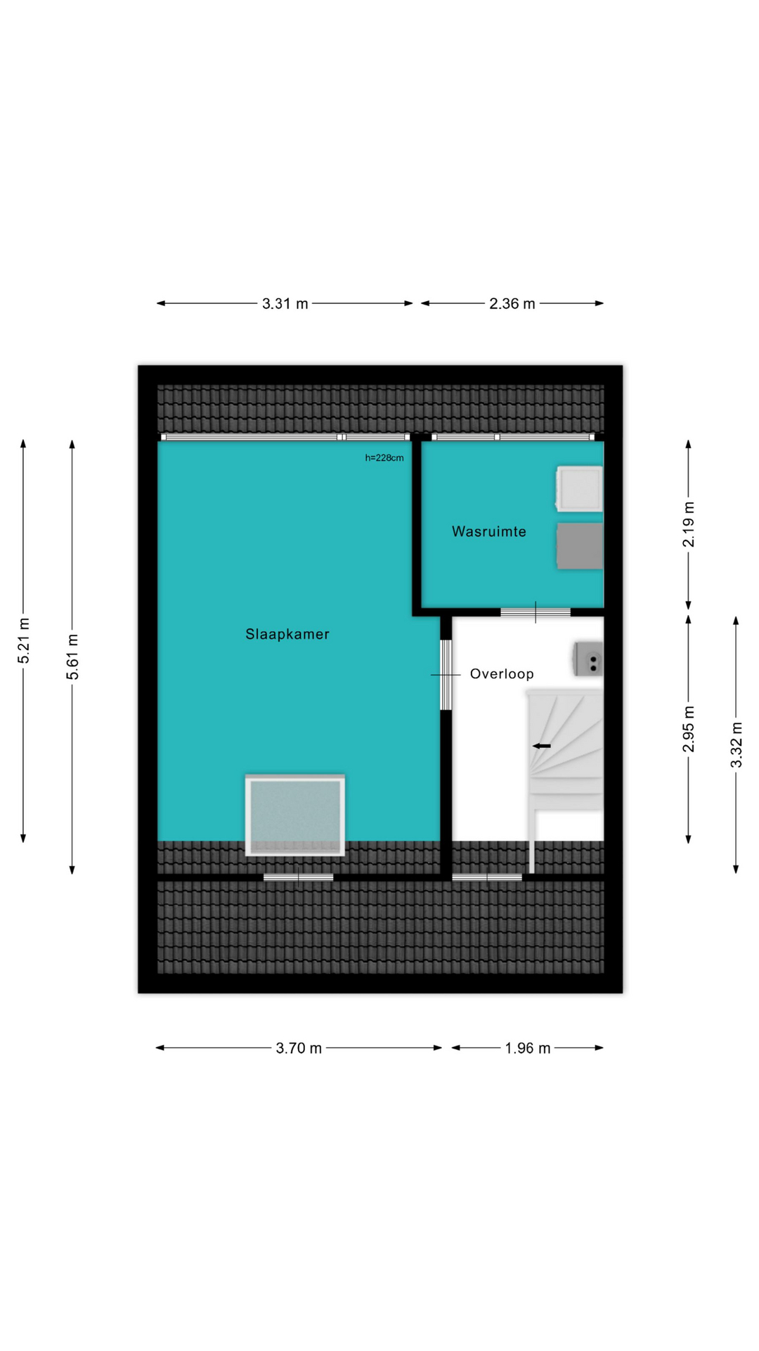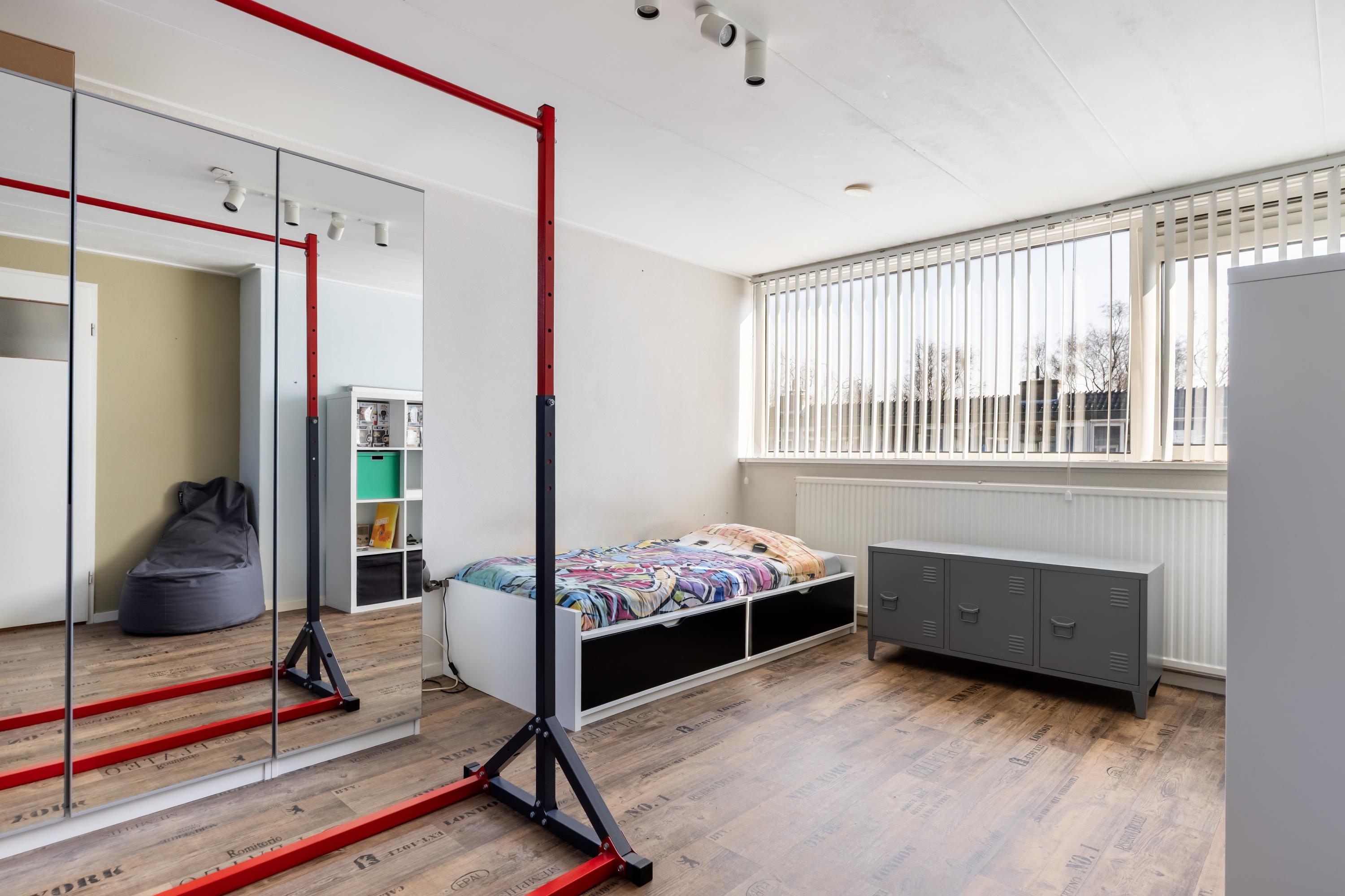 De overloop van de tweede verdieping herbergt de CV-ketel en geeft toegang tot de vierde slaapkamer en de wasruimte. De vierde slaapkamer is over de volledige lengte van de woning gelegen en heeft aan de voorzijde een dakraam. Daarnaast is er aan de achterzijde een woningbrede dakkapel, wat zorgt voor aanzienlijk meer ruimte en veel daglicht.