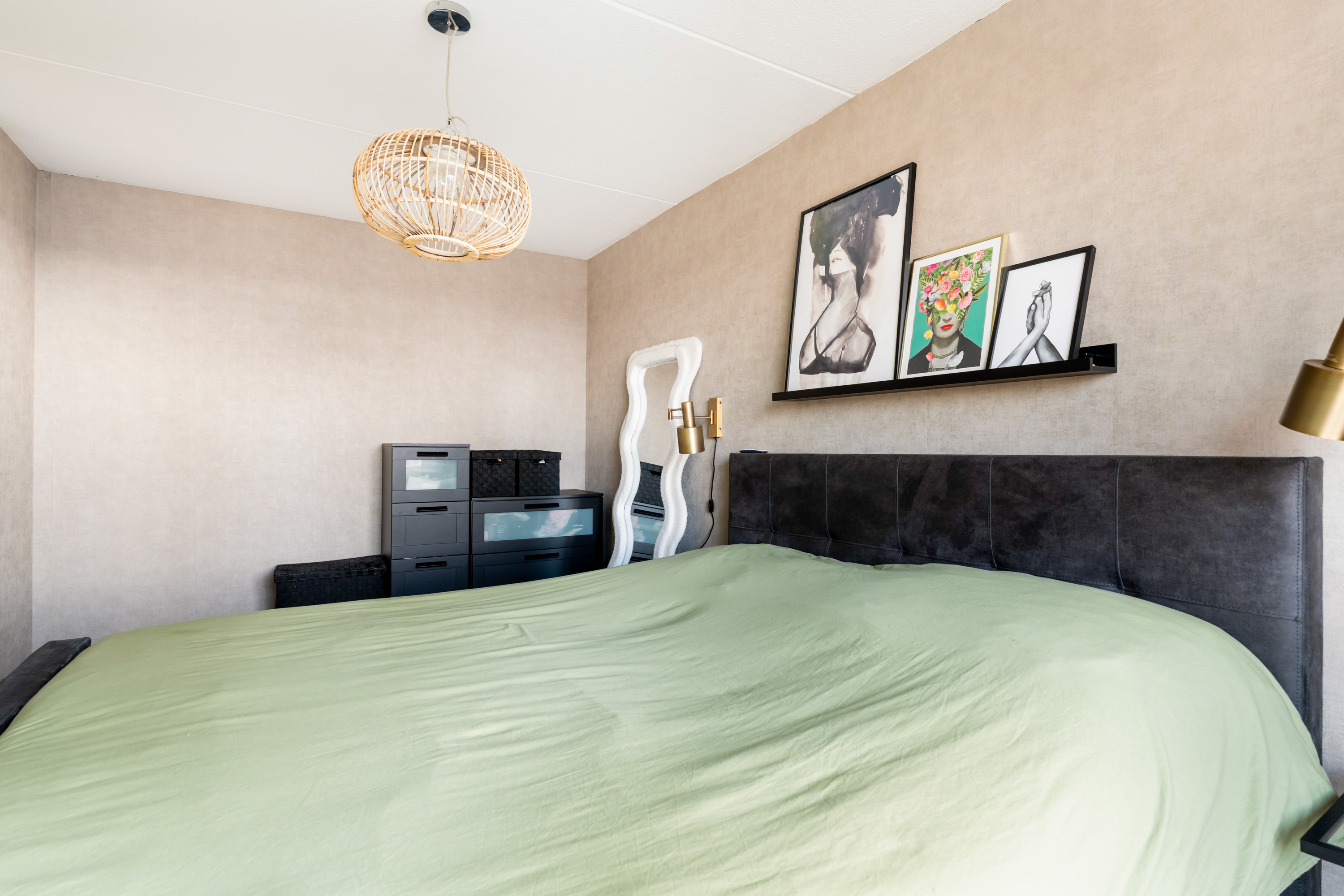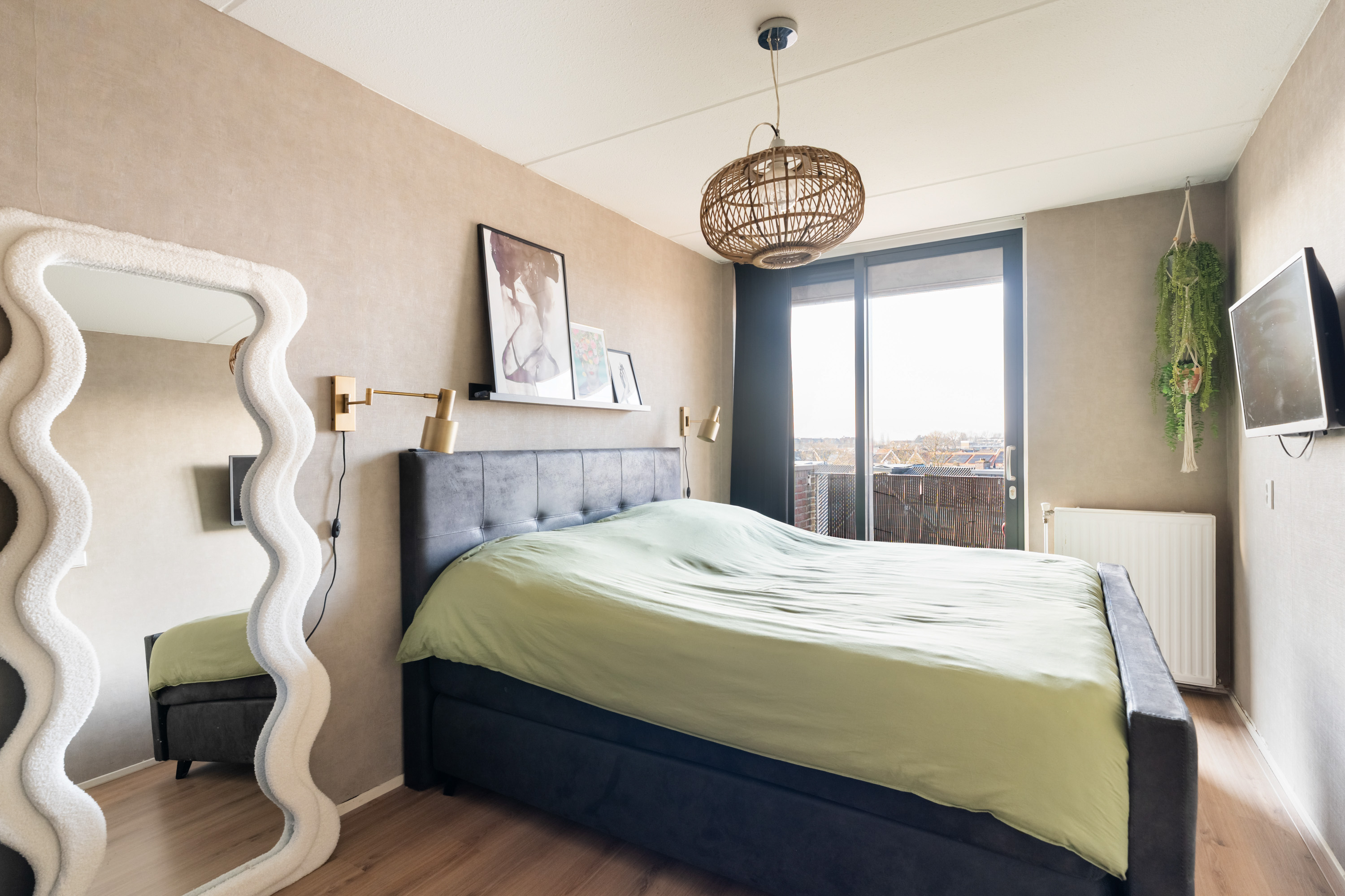 De twee slaapkamers liggen aan de achterzijde van het appartement. Beide slaapkamers hebben een schuifpui naar het brede balkon.