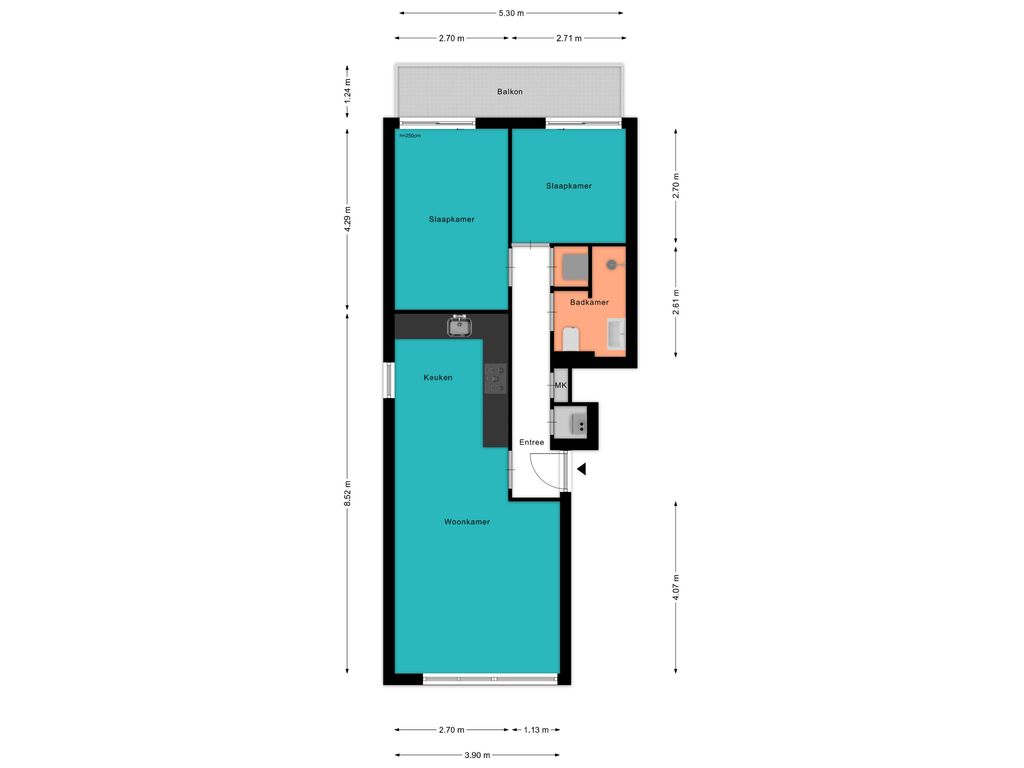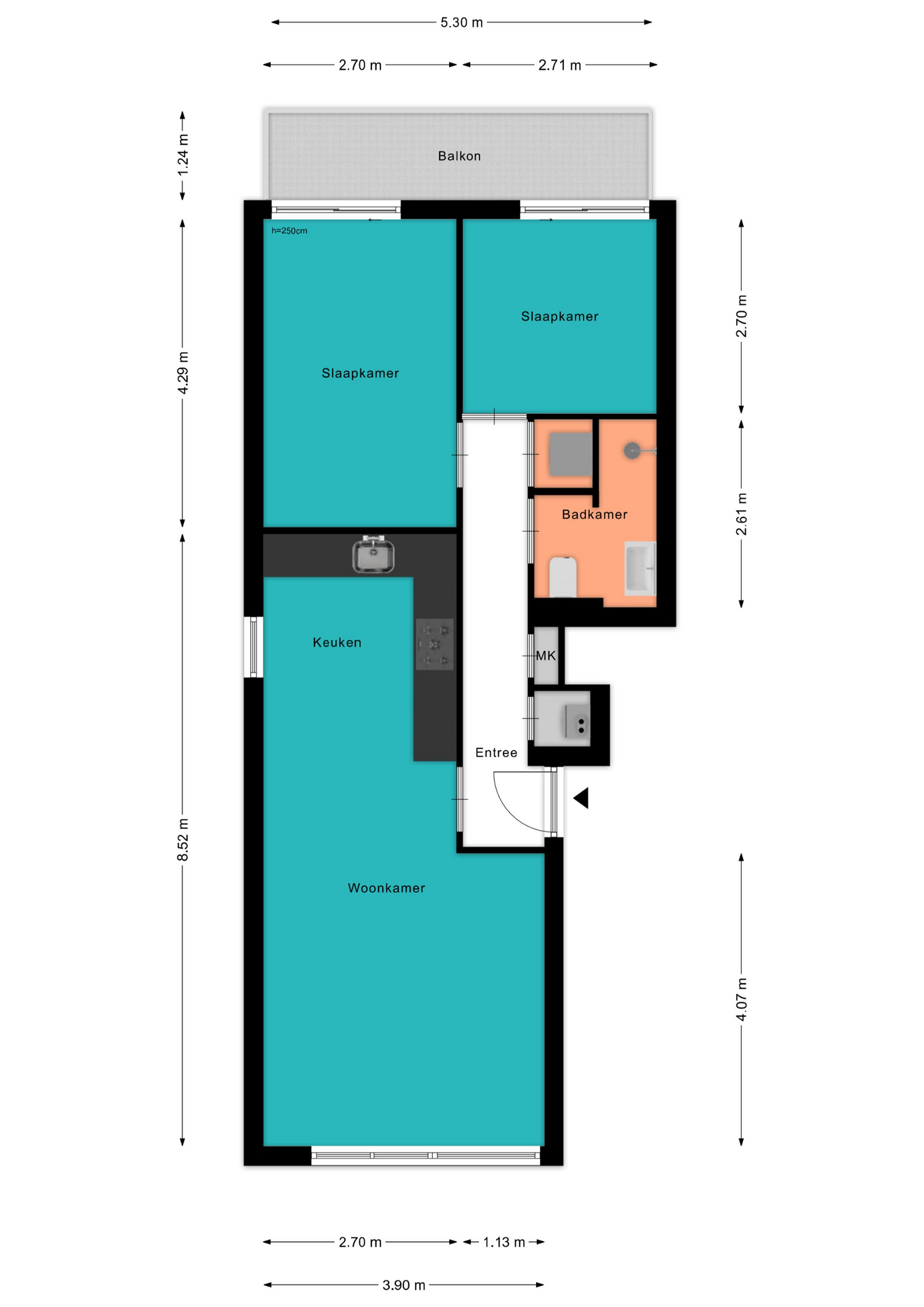 Voor de afmetingen en indeling raadpleeg de gedetailleerde plattegrond.