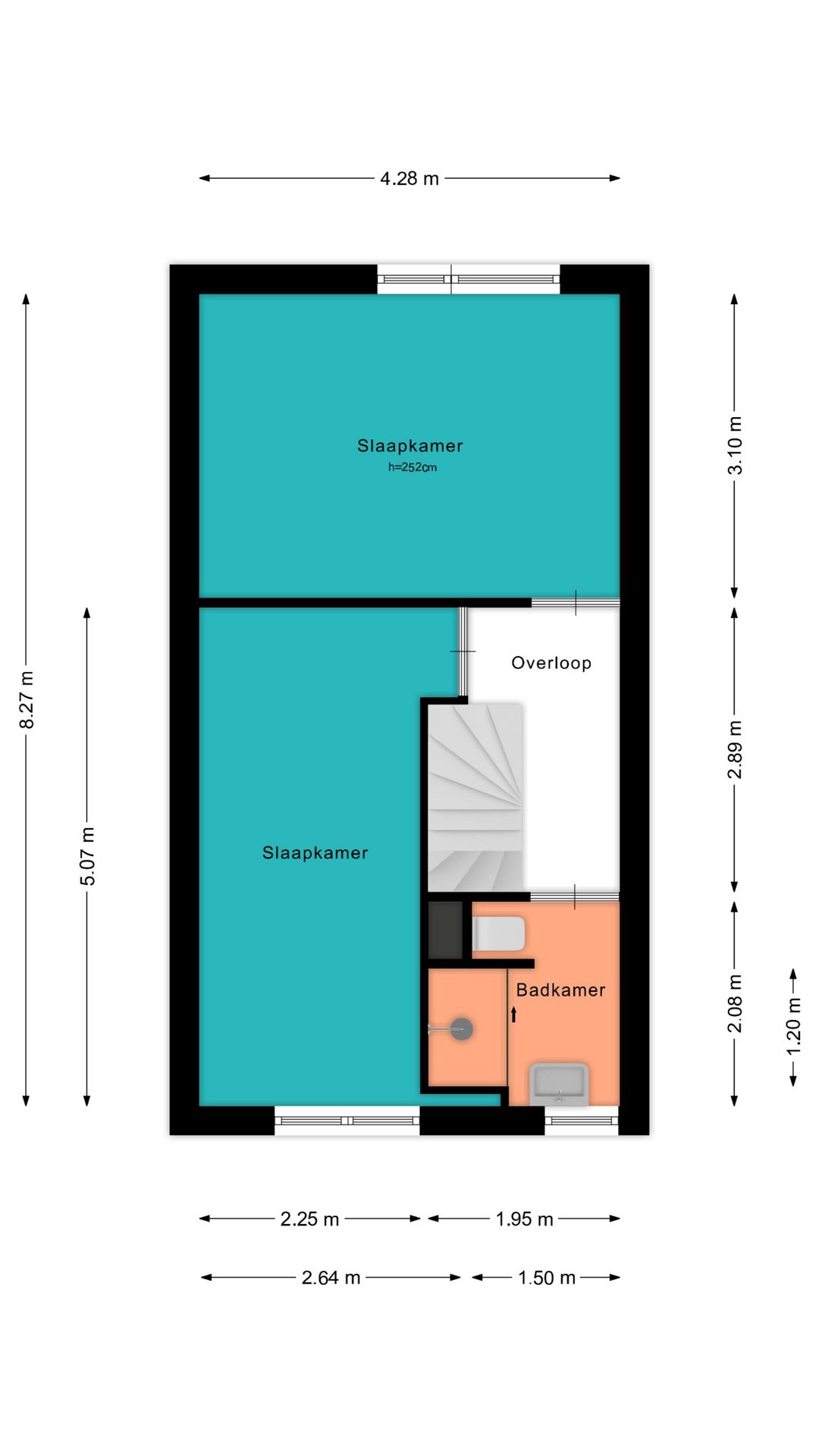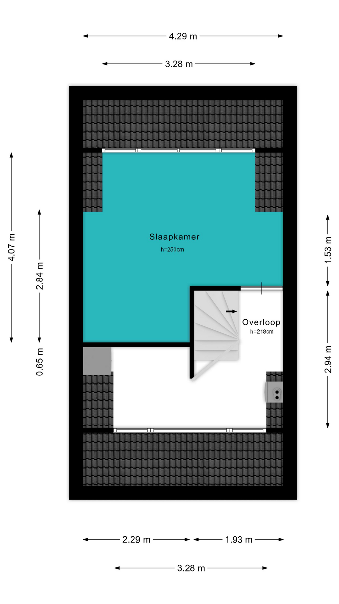Voor de afmetingen en indeling raadpleeg de gedetailleerde plattegrond.