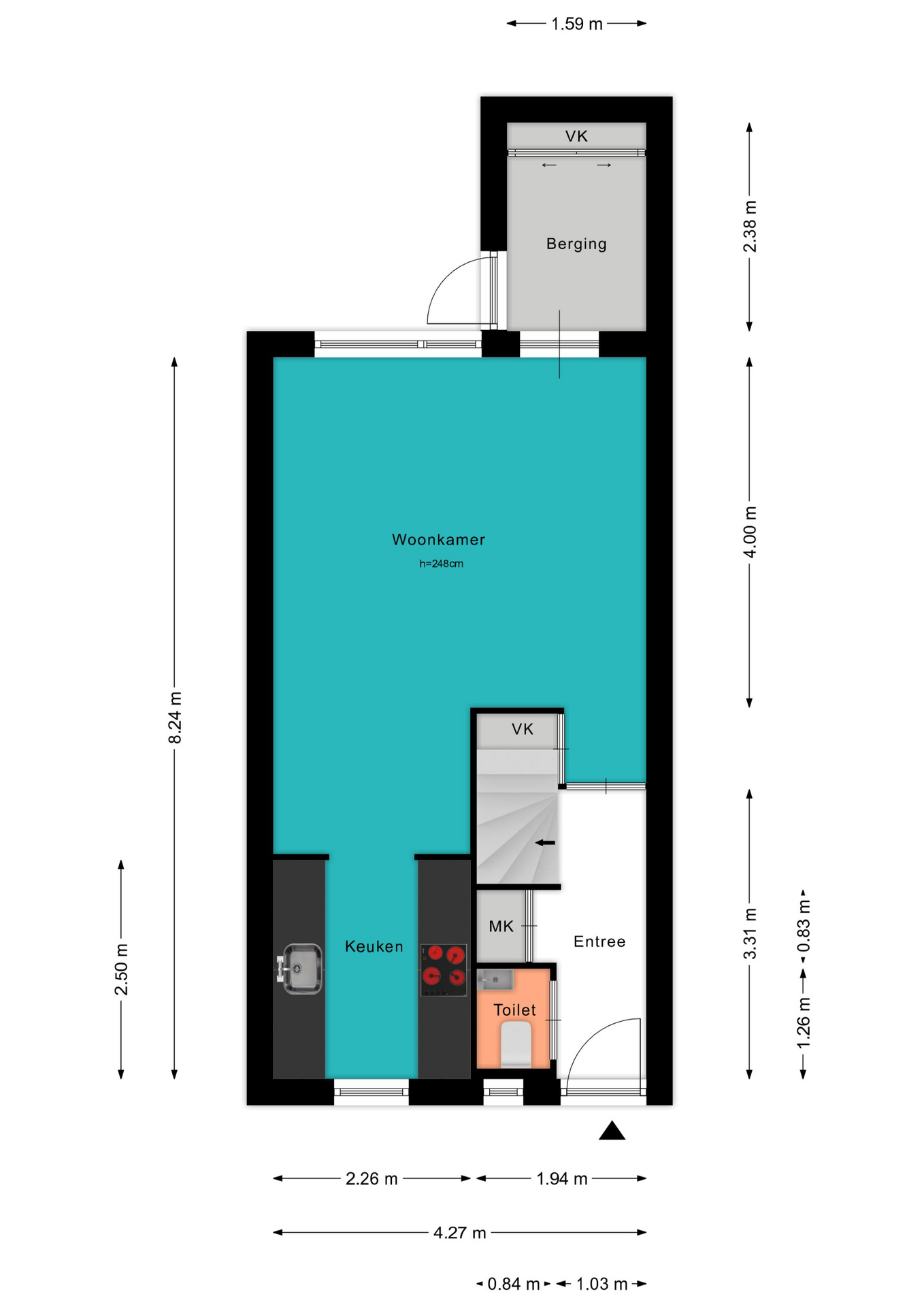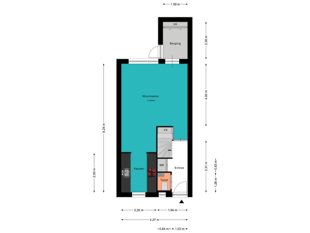 - Berging: ca 8 m²