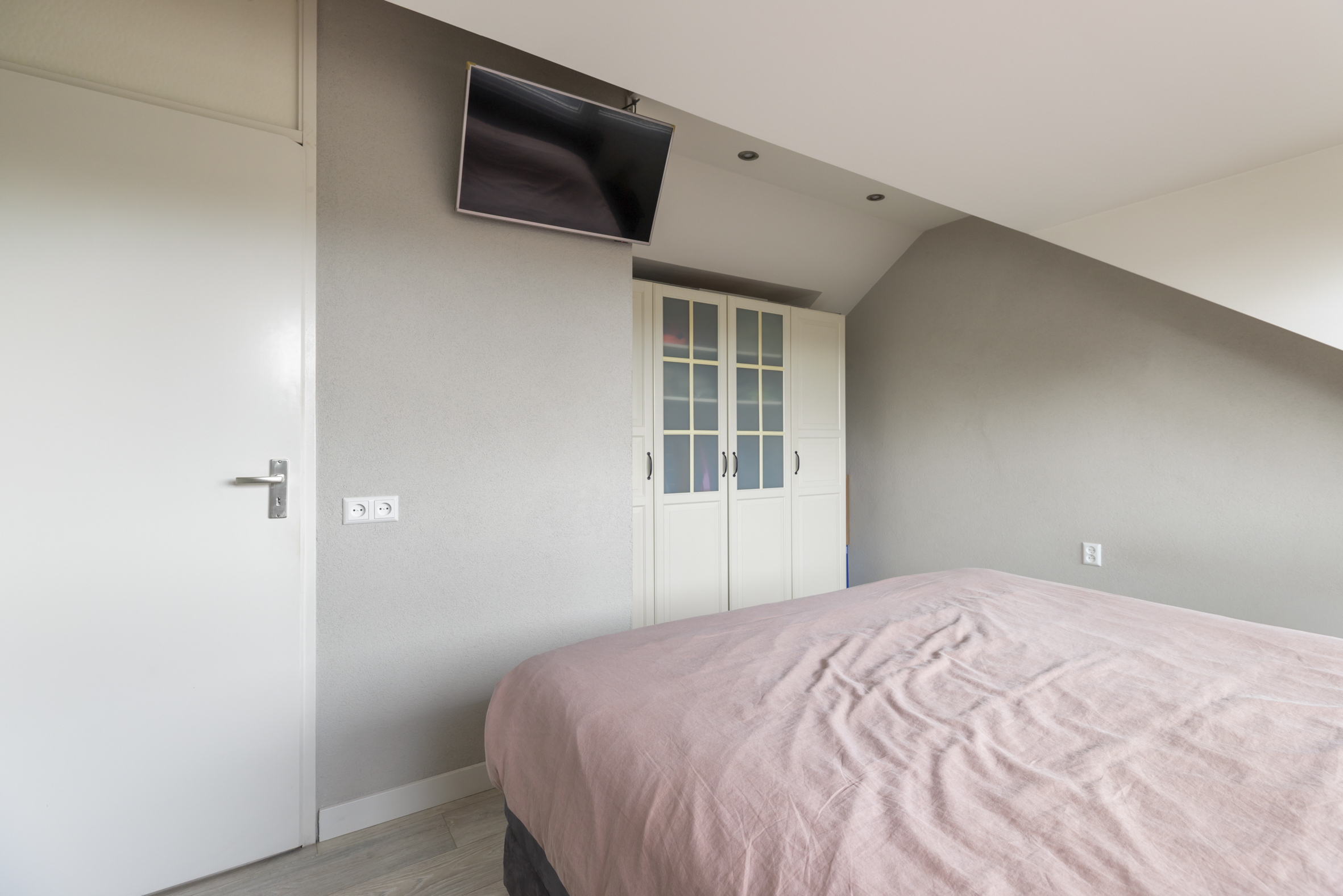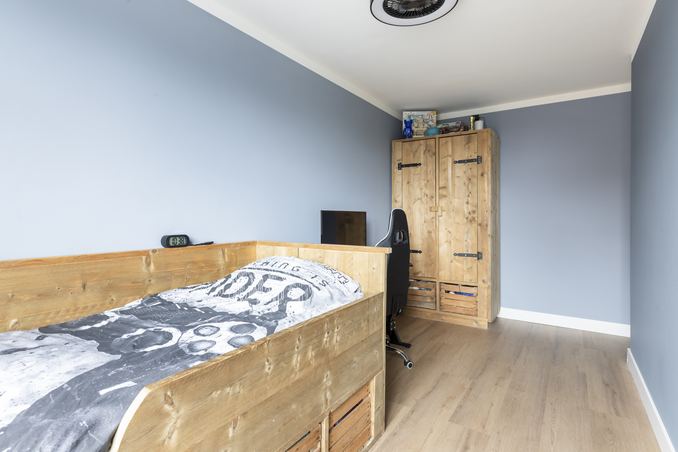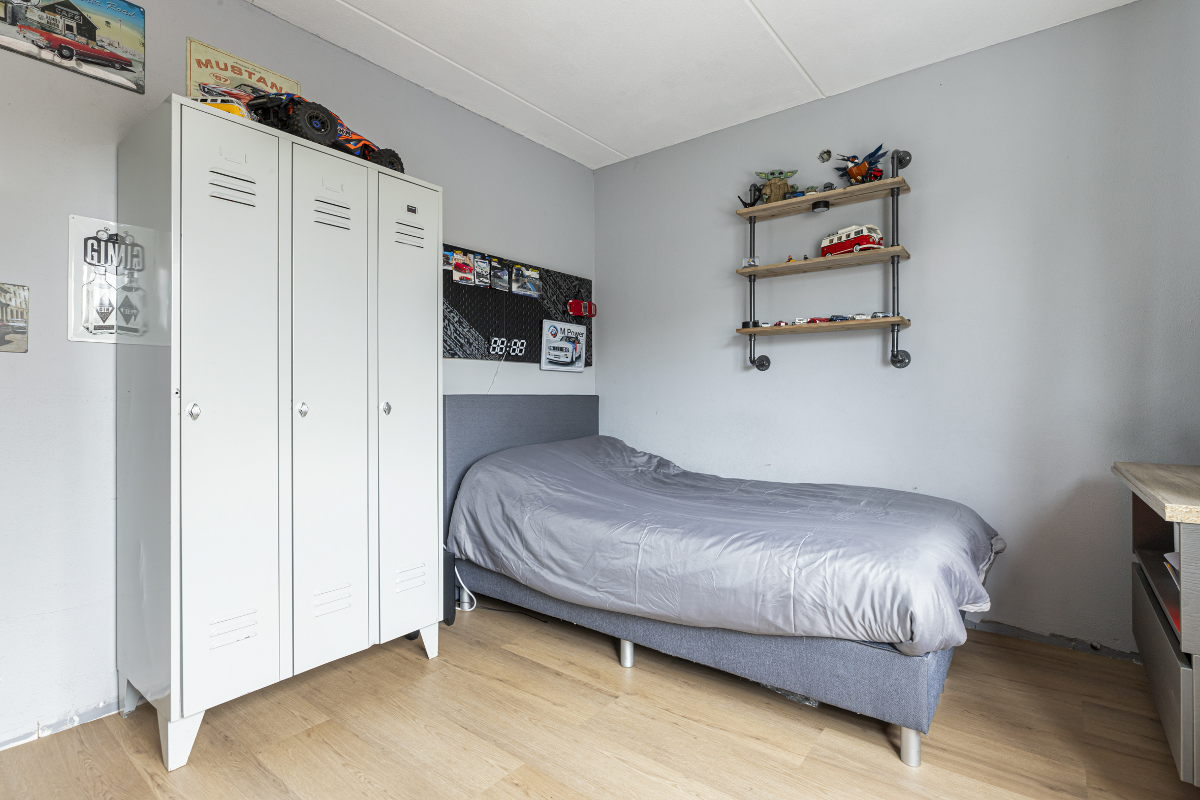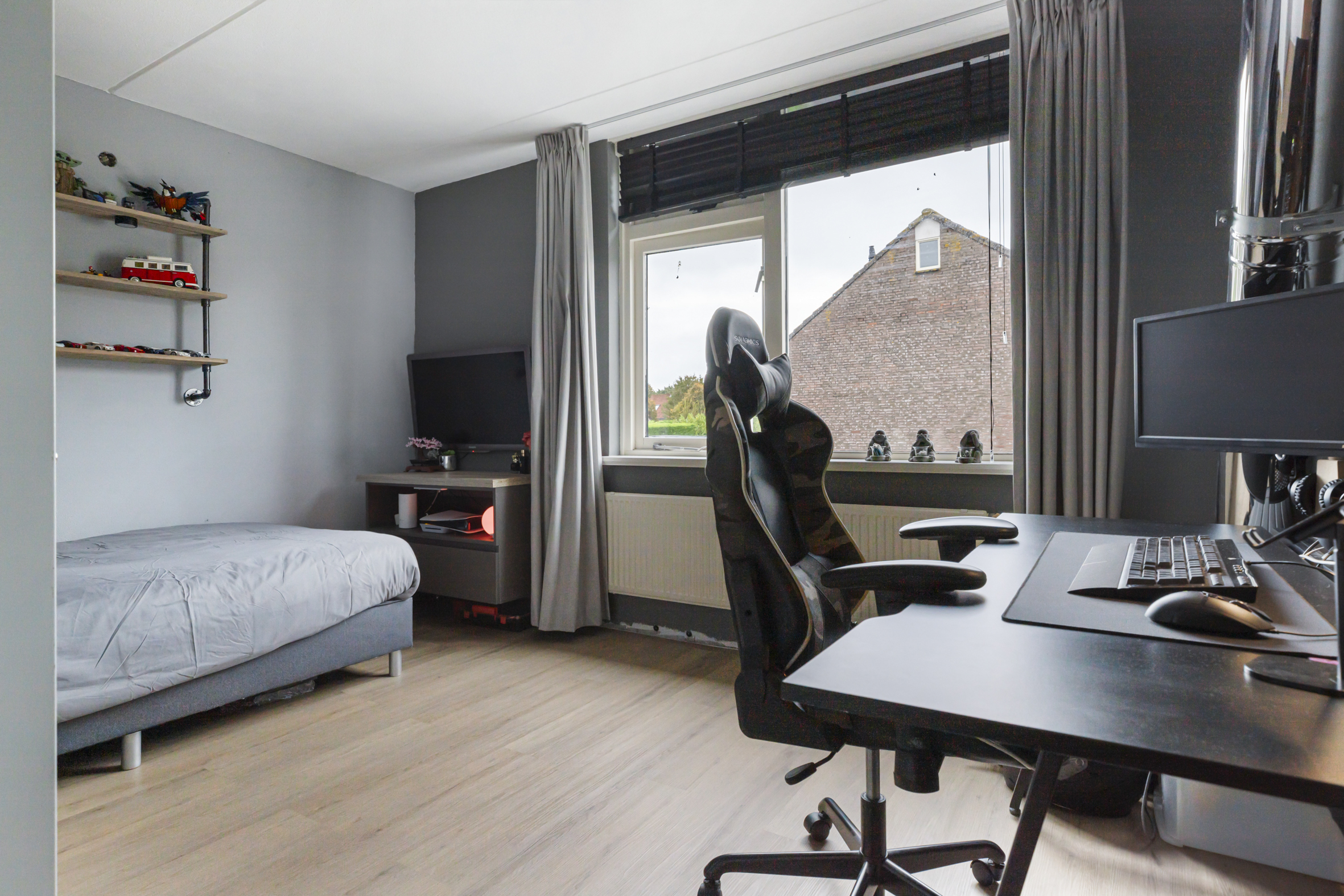 De tweede verdieping is aan zowel de voor- als achterzijde voorzien van een brede dakkapel, wat zorgt voor extra licht en ruimte. Aan de voorzijde bevindt zich een praktische was-/ opbergruimte met tevens de opstelplaats voor de HR CV-ketel. Aan de achterzijde ligt de derde slaapkamer, die de volledige breedte van het huis beslaat. Op de overloop is aironditioning (2023) aanwezig voor een prettig binnenkllimaat.