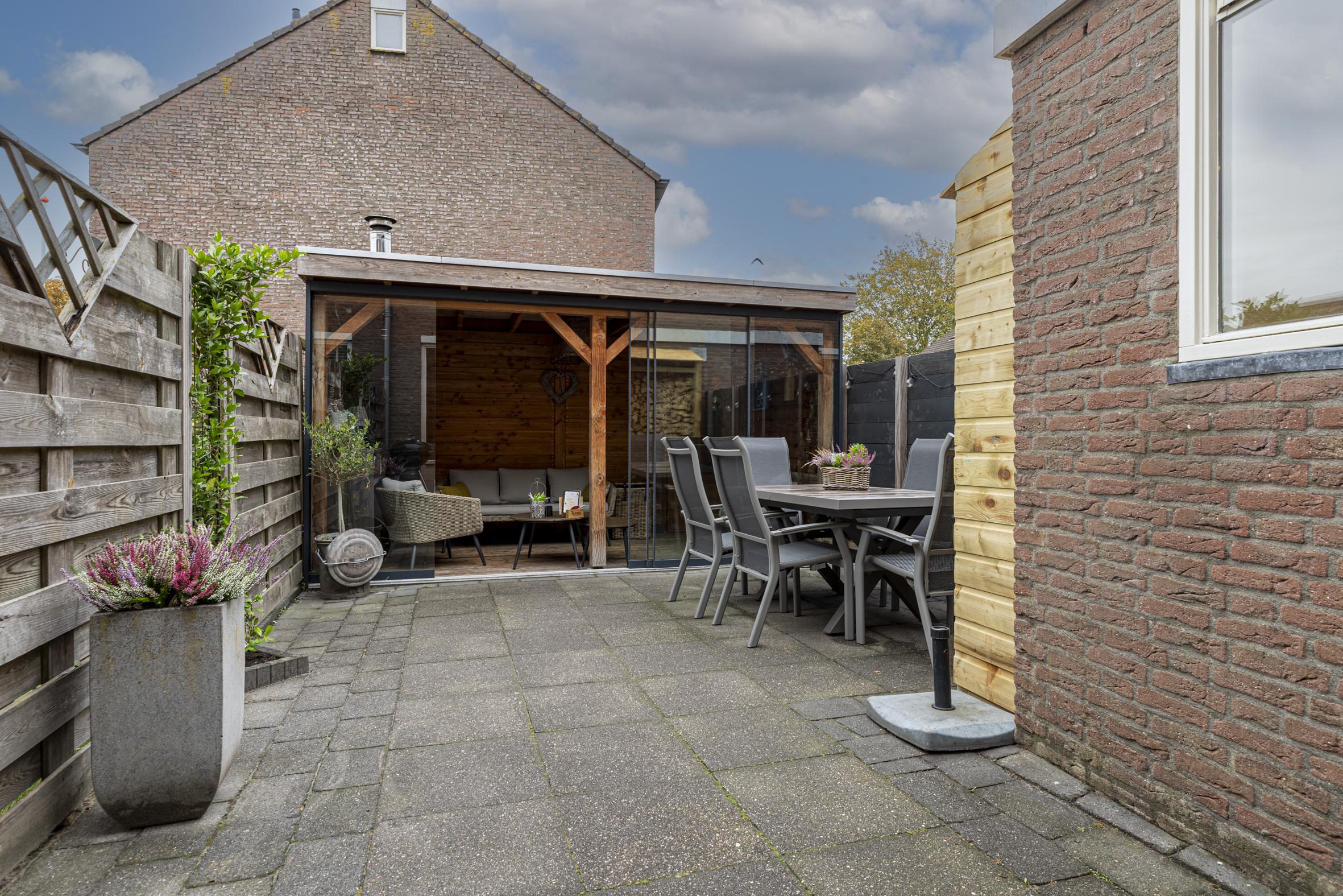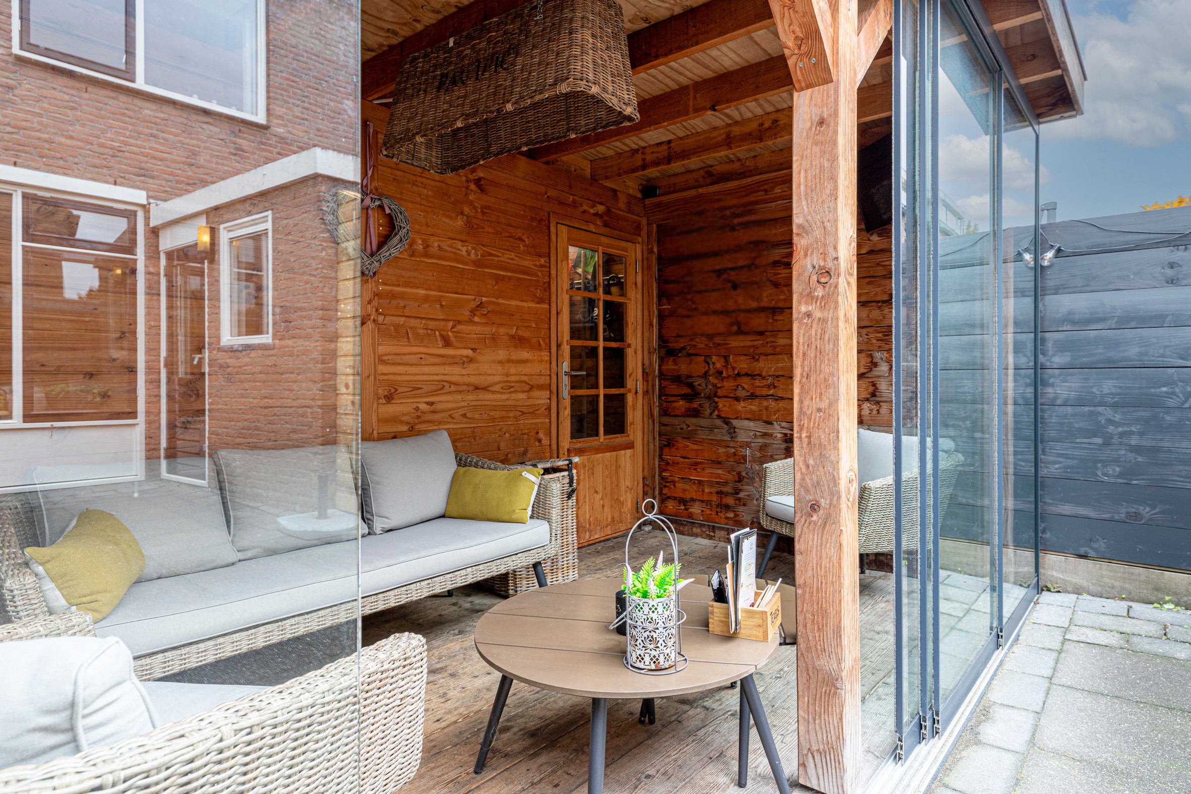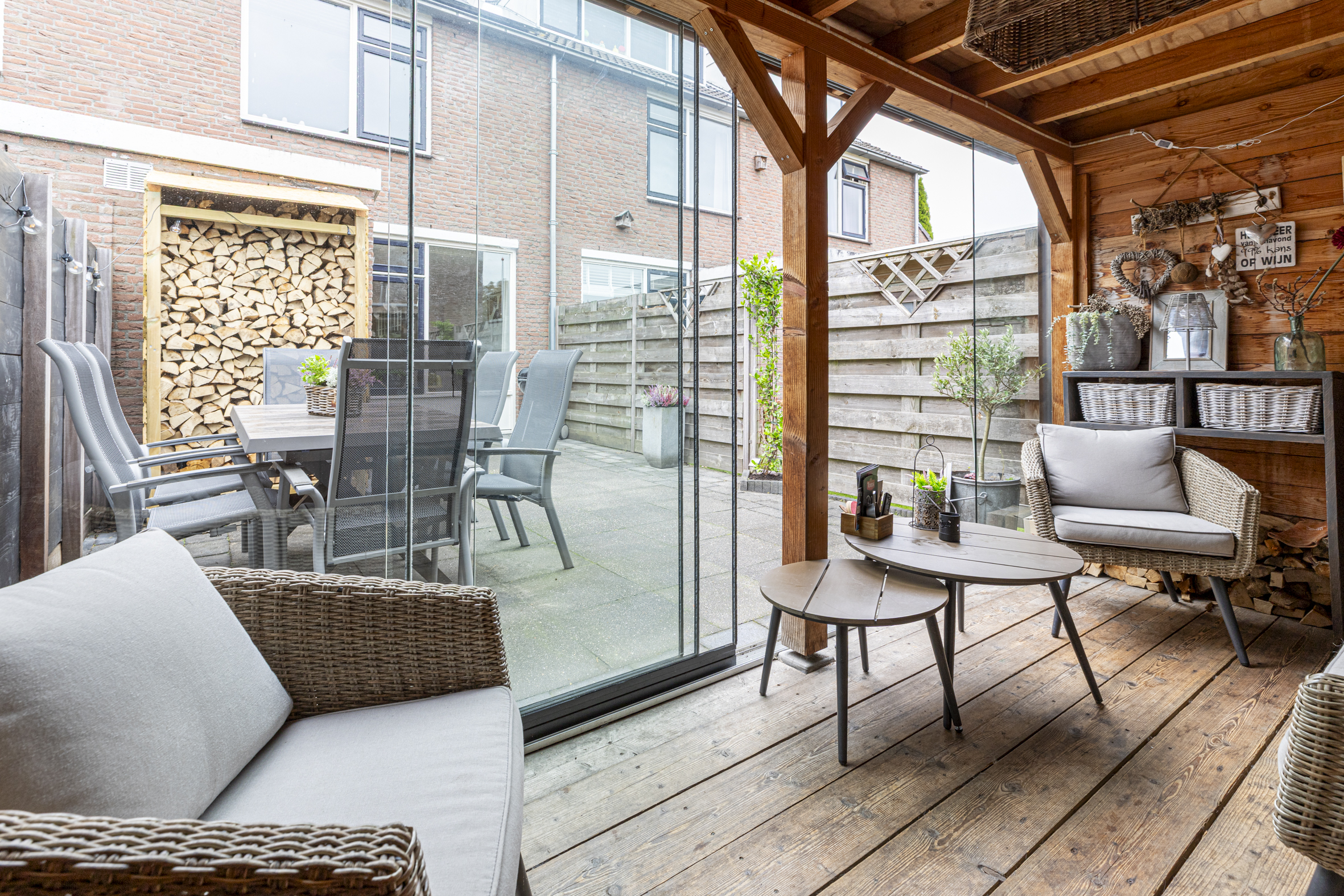 In de verzorgde en diepe achtertuin kun je heerlijk genieten. Dankzij de gezellige overkapping met houthaard en glazen deuren kun je hier gezellig samenzijn met vrienden en familie tot in de late uurtjes! Via de overkapping kom je in de ruime berging, voorzien van elektra. Hier is een deur aanwezig naar de achtergelegen steeg.