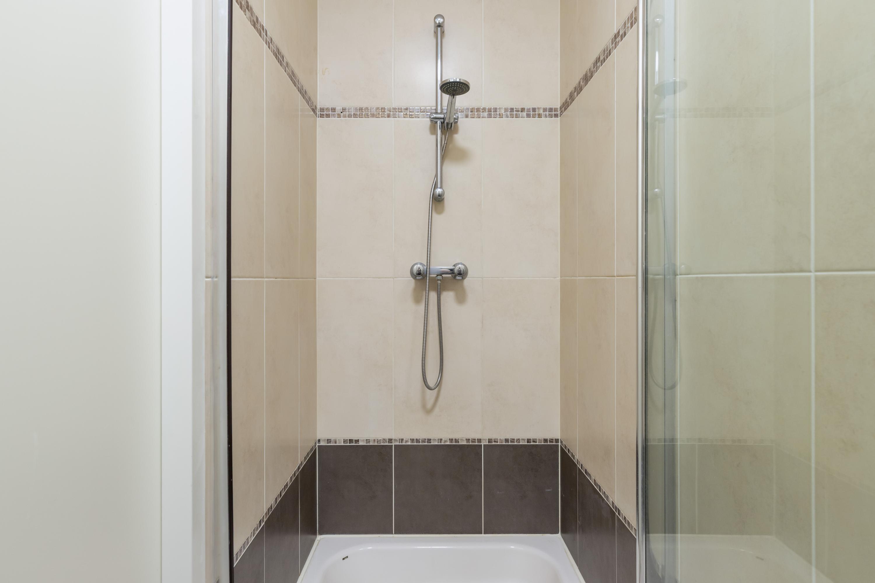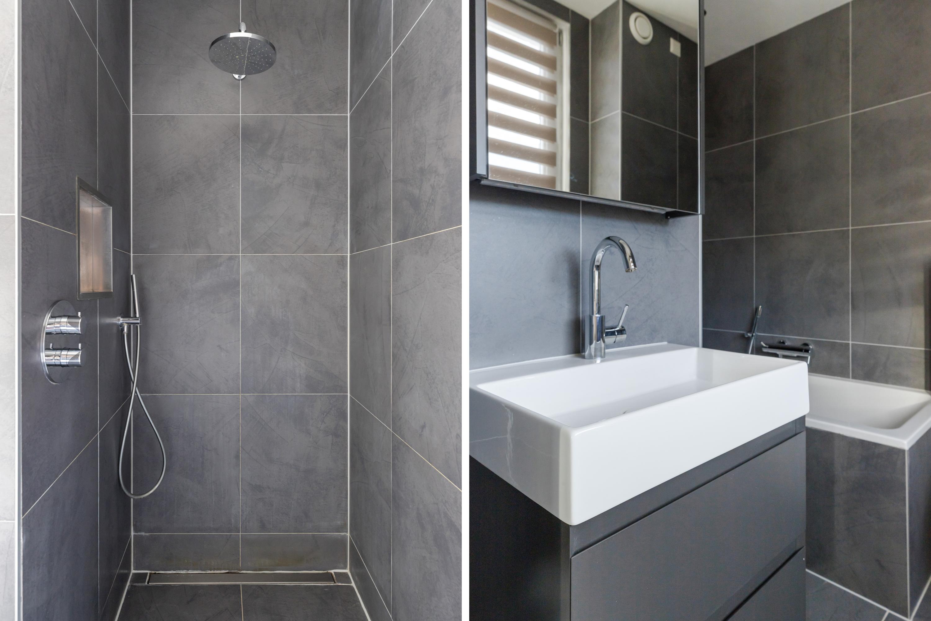 Via de vaste trap bereik je de overloop van de tweede verdieping, die toegang biedt tot de vierde slaapkamer en het dakterras. De slaapkamer strekt zich uit over de volledige lengte van de woning en biedt toegang tot de tweede badkamer (2022). Deze badkamer is comfortabel ingericht en modern afgewerkt.