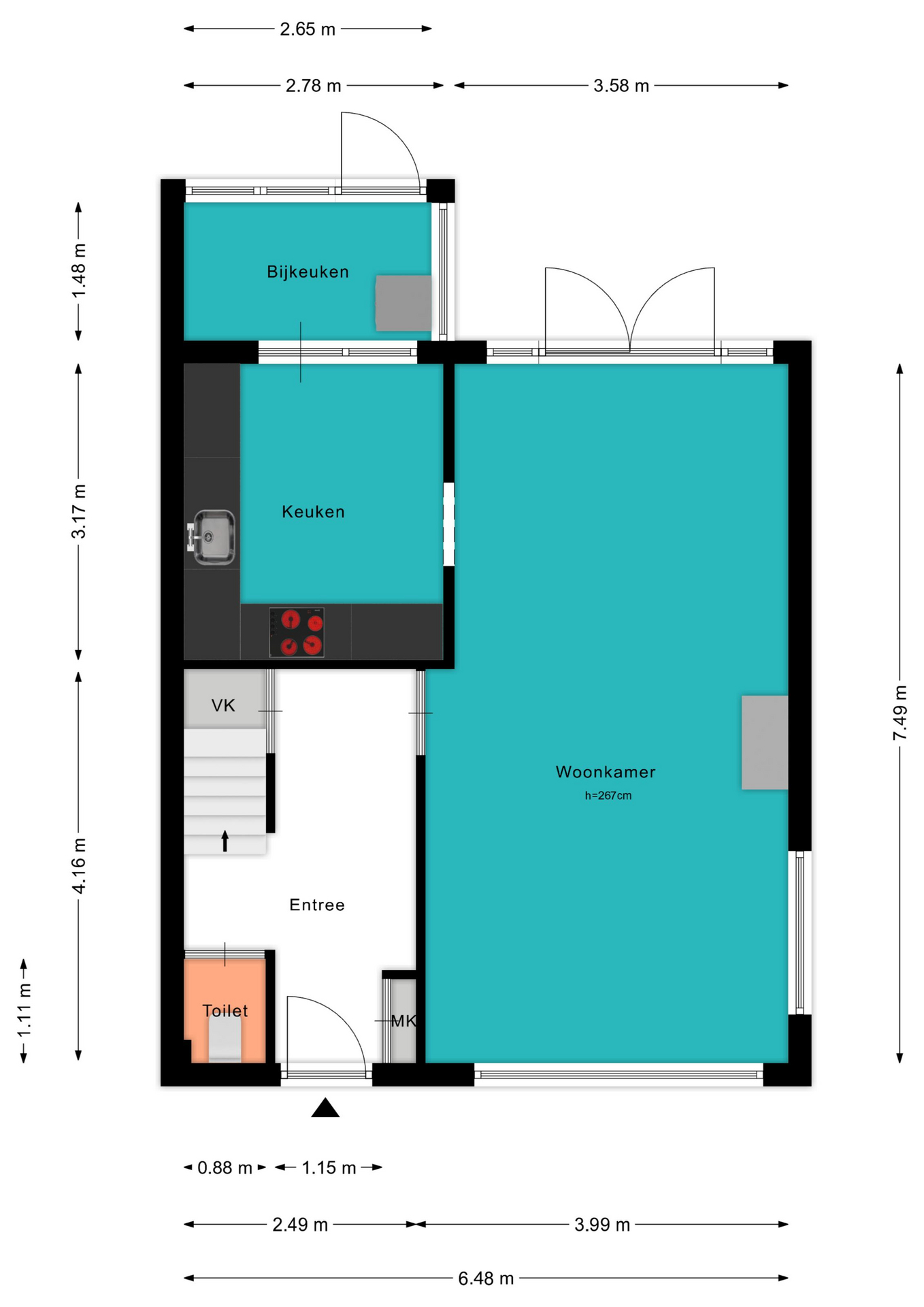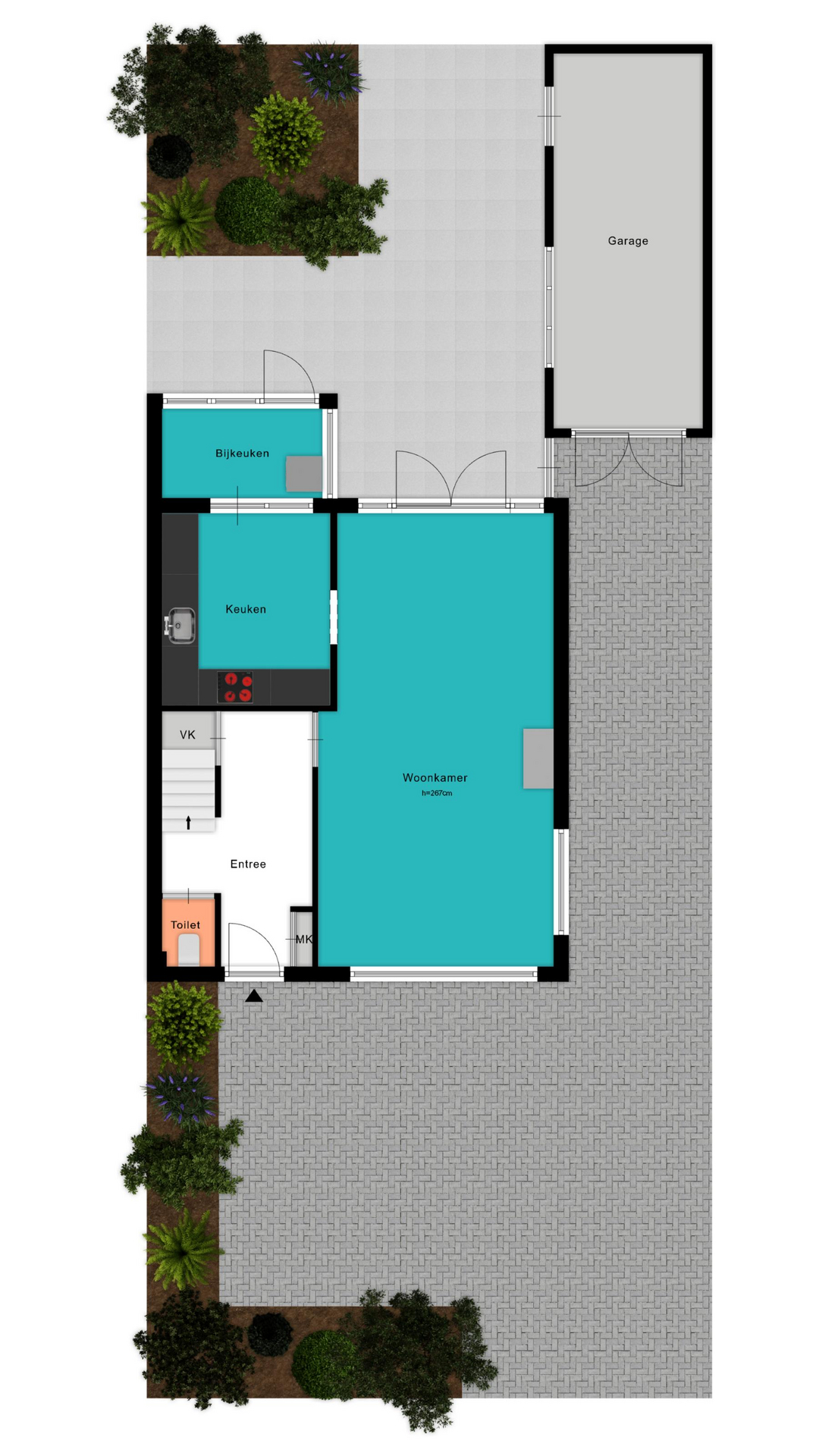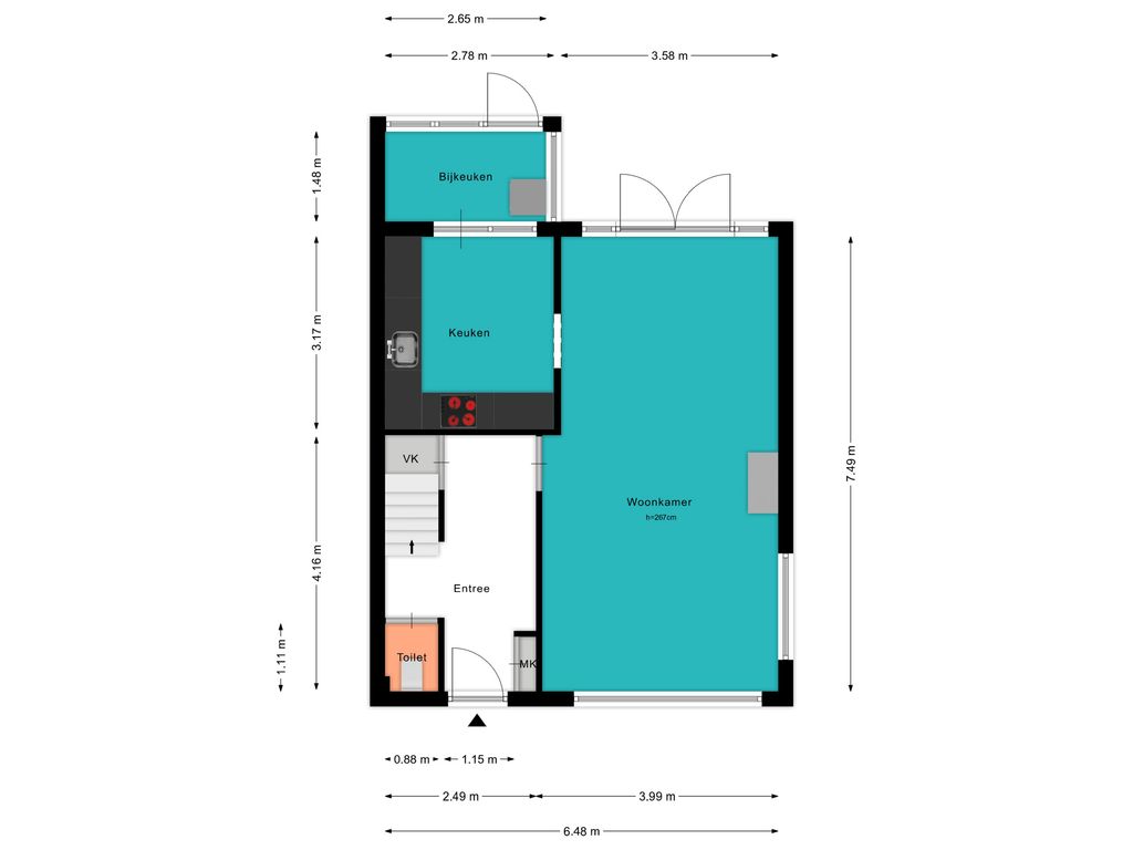 Voor de afmetingen en indeling raadpleeg de gedetailleerde plattegrond.