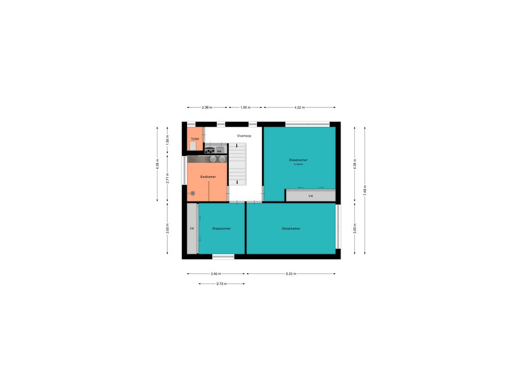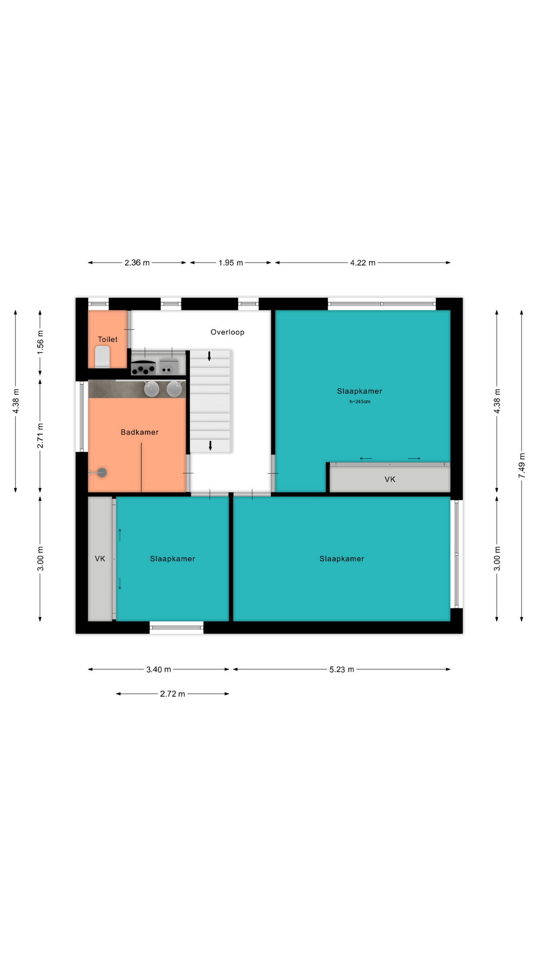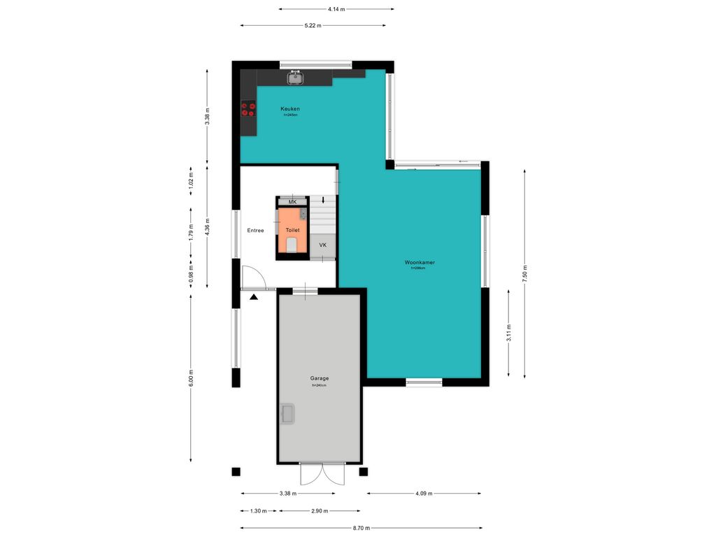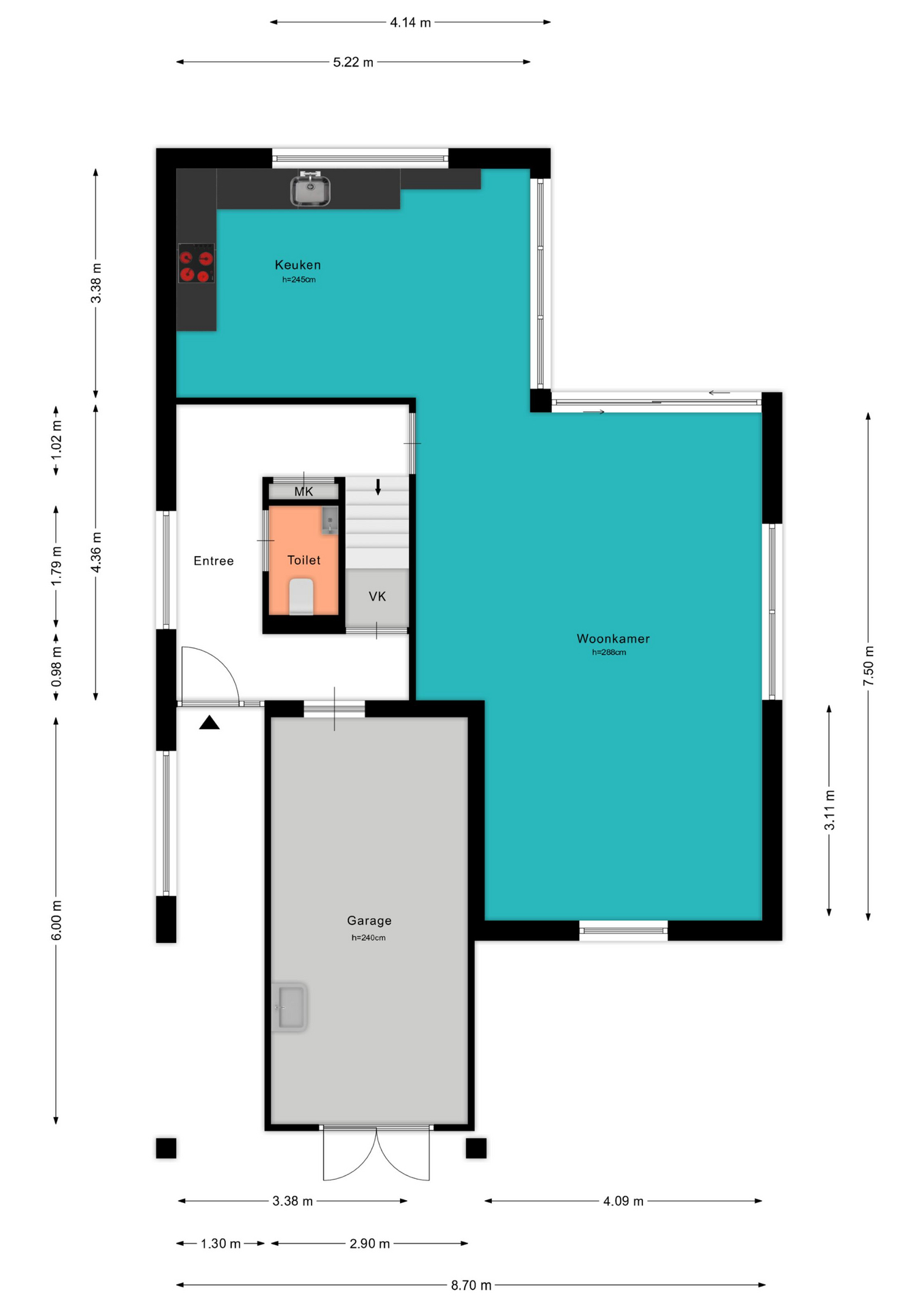 Voor de afmetingen en indeling raadpleeg de gedetailleerde plattegrond.