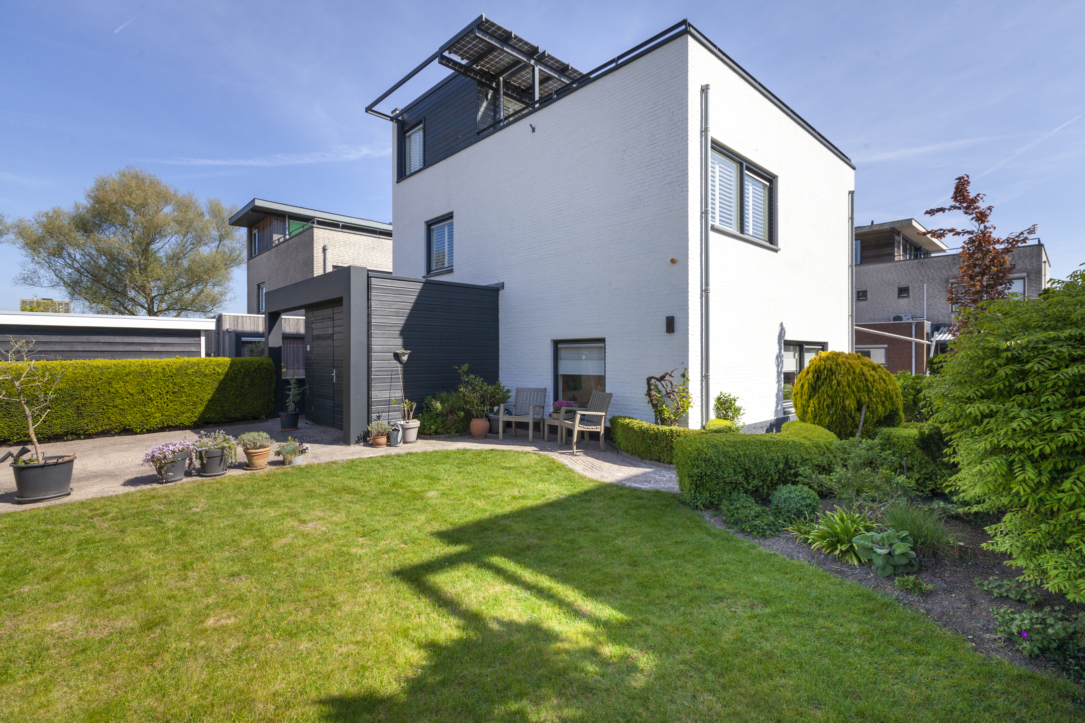 Kom kijken bij deze moderne vrijstaande woning aan het water met parkeren op eigen terrein, een garage en een royaal dakterras. Hier geniet je van een lichte living, een complete keuken met uitzicht op het water, vier comfortabele slaapkamers, een strak afgewerkte badkamer en maar liefst 19 zonnepanelen. De fraaie tuin ligt op het zonnige zuidoosten waar je op ieder moment van de dag van de zon kunt genieten. Zien we je binnenkort?