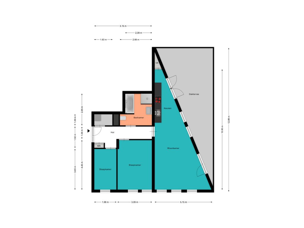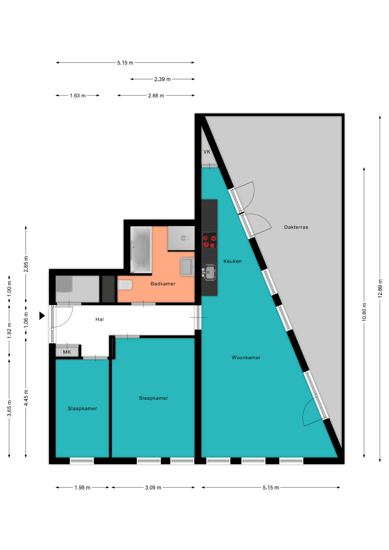 Voor de afmetingen en indeling raadpleeg de gedetailleerde plattegrond.