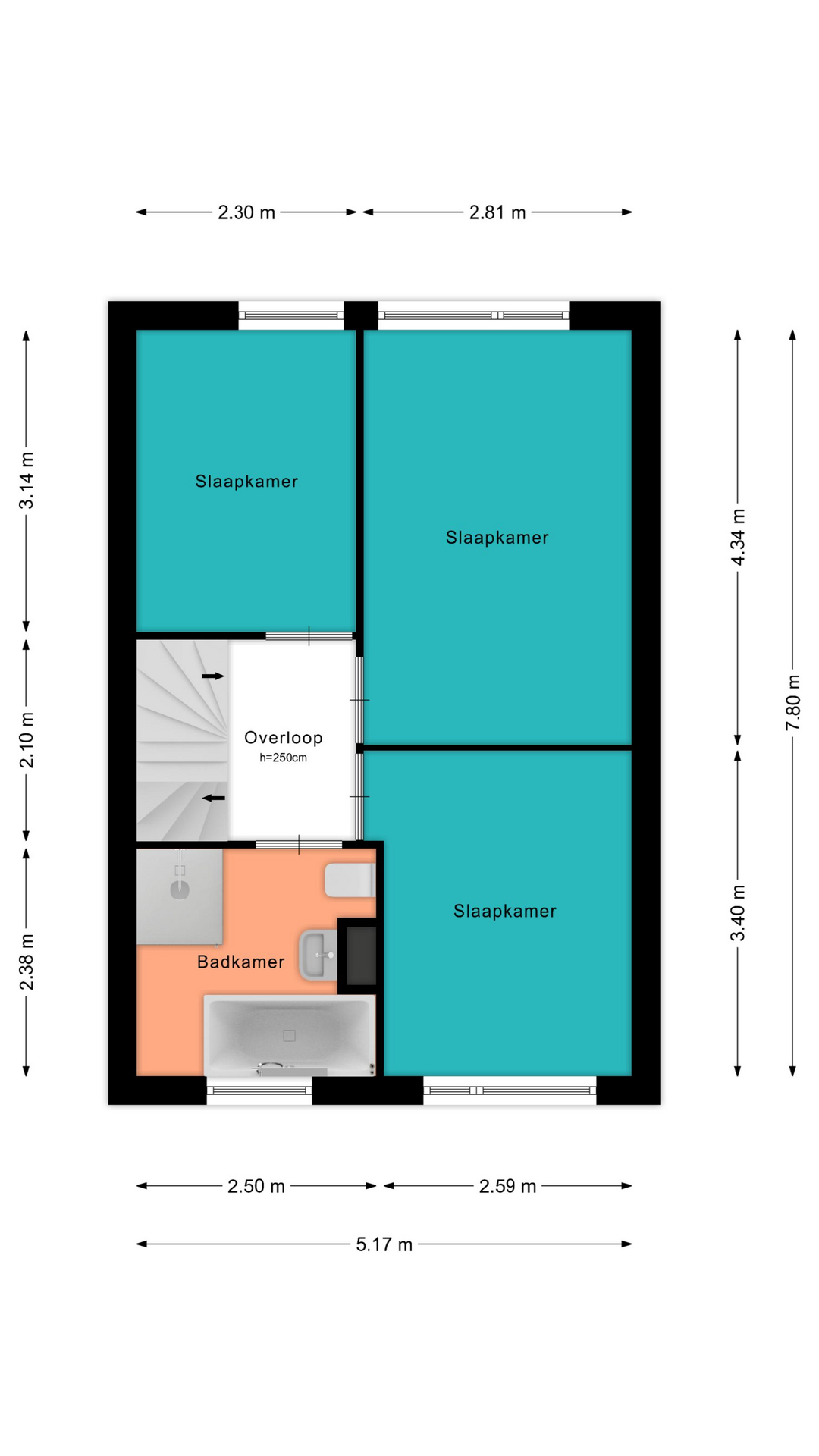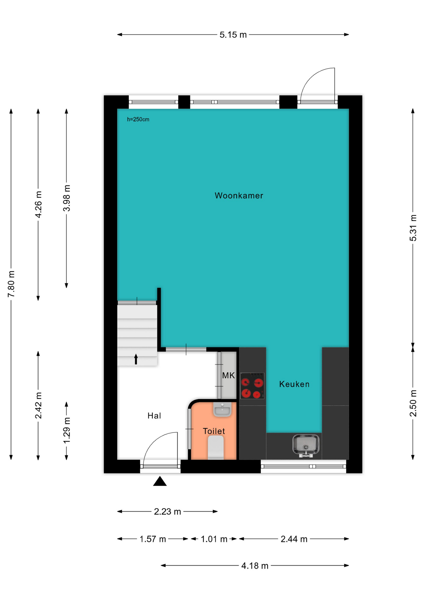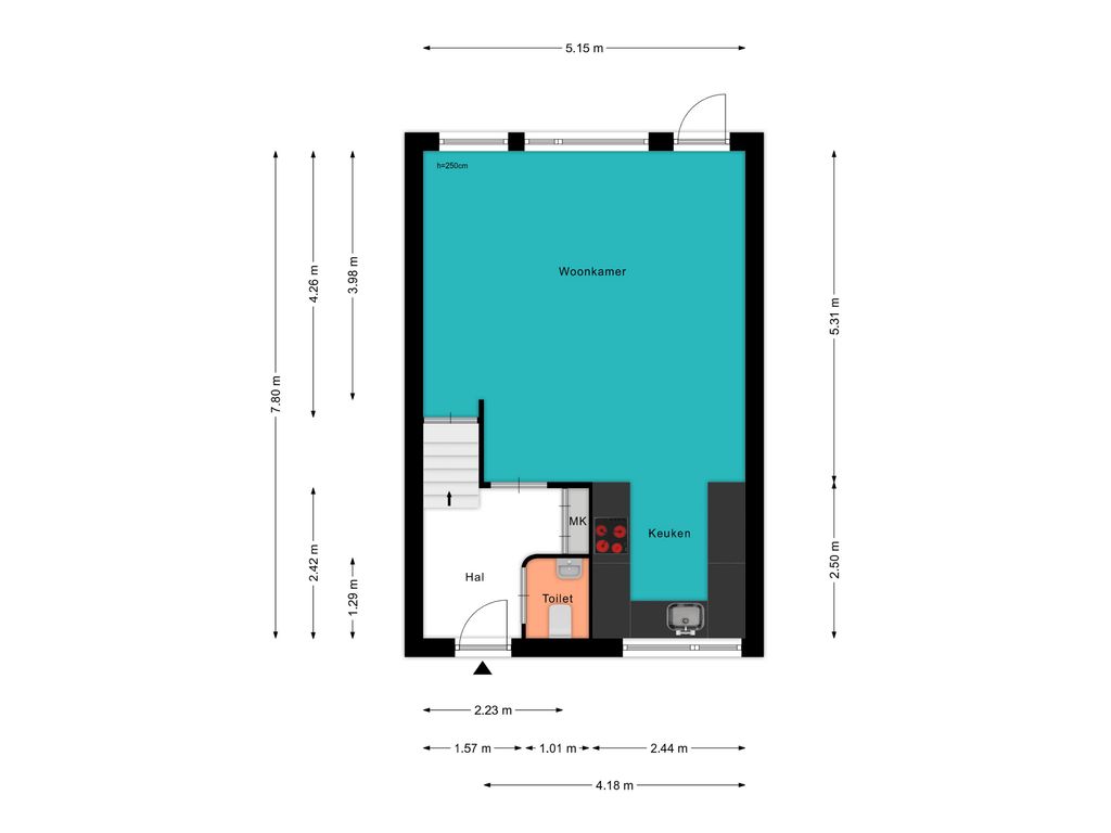 Voor de afmetingen en indeling raadpleeg de gedetailleerde plattegrond.