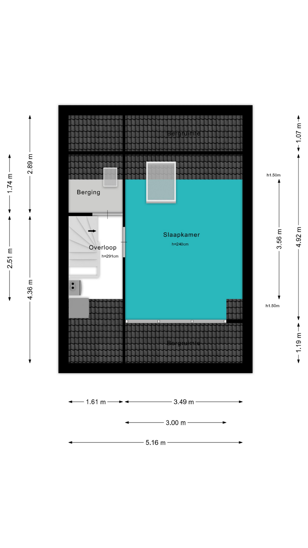 - Berging: ca 6 m²