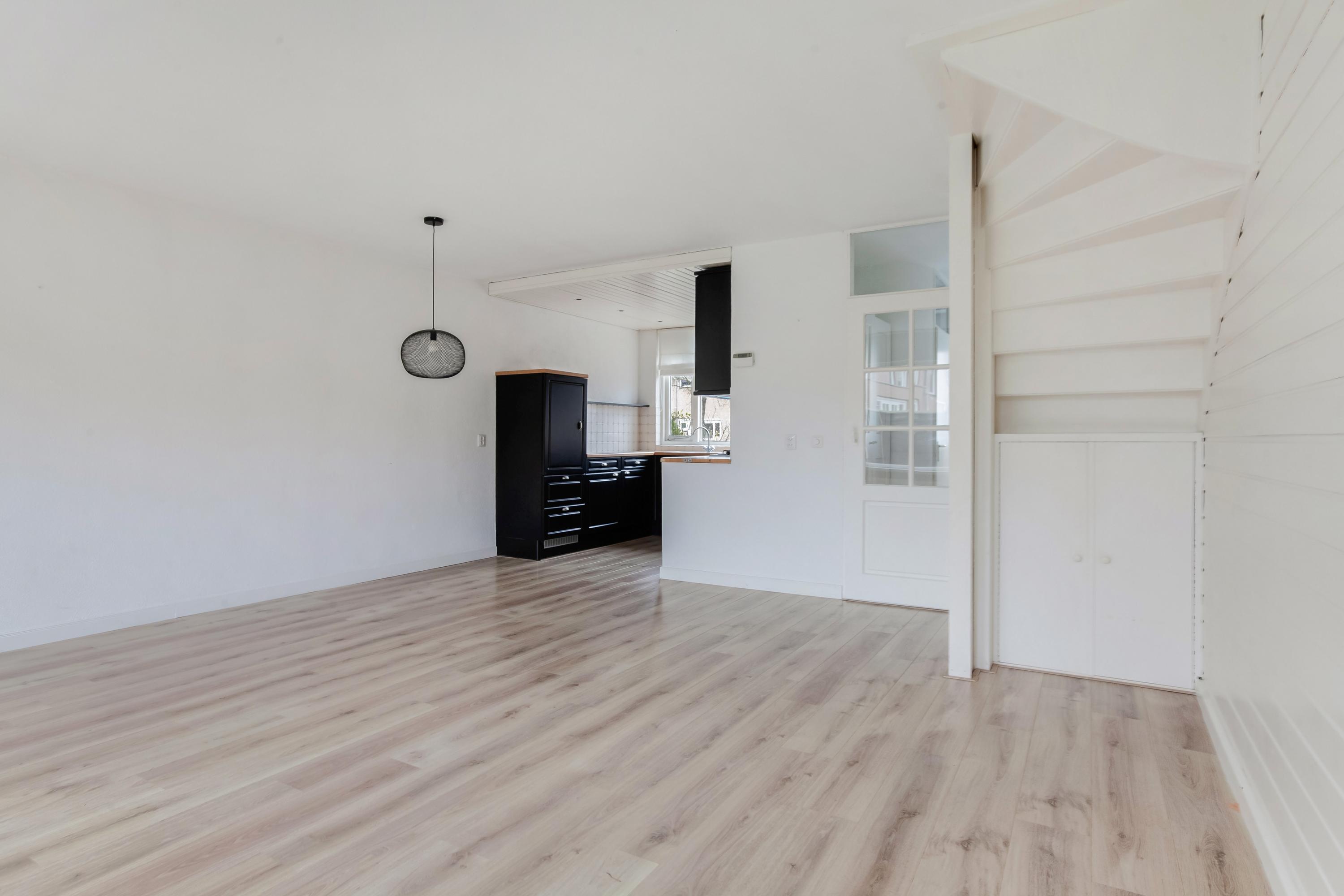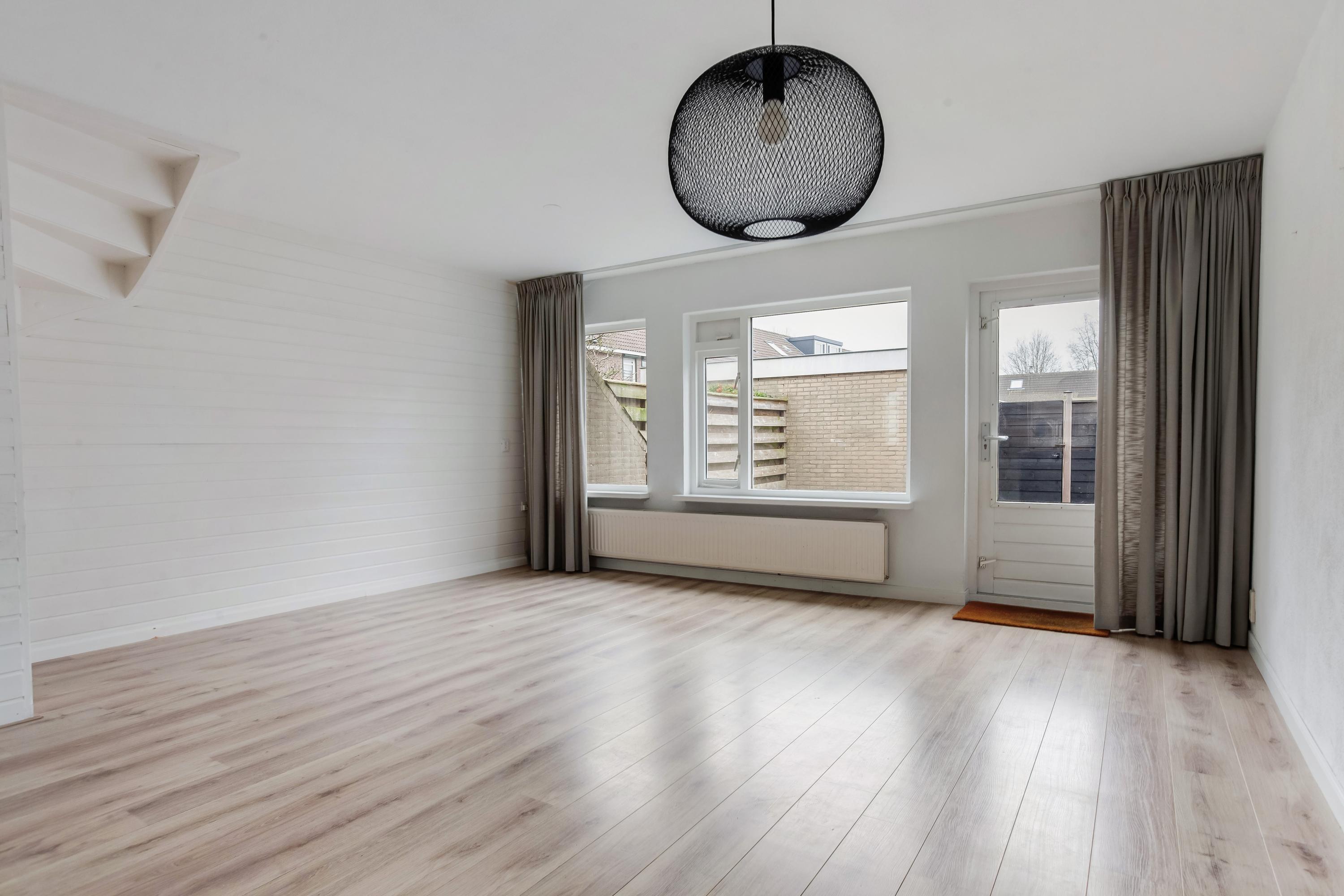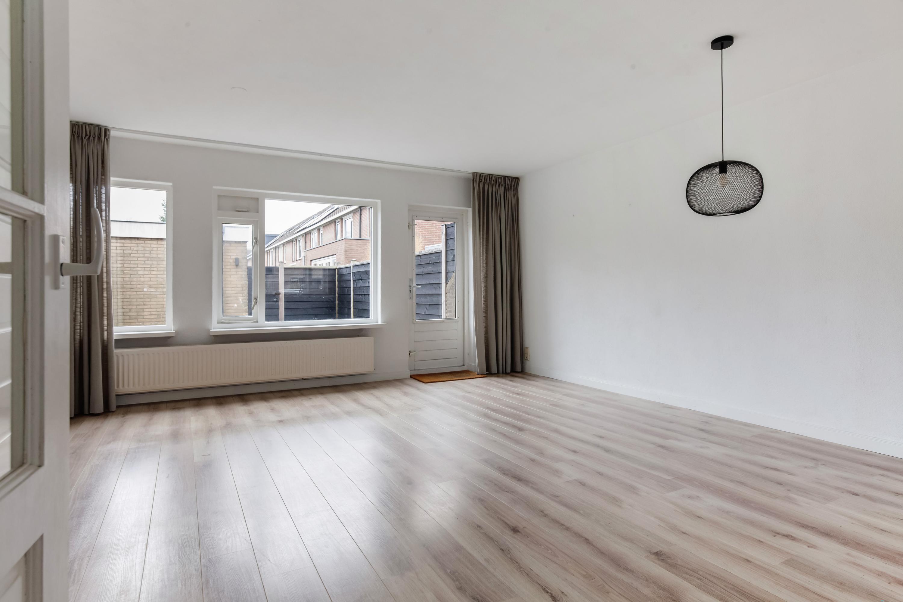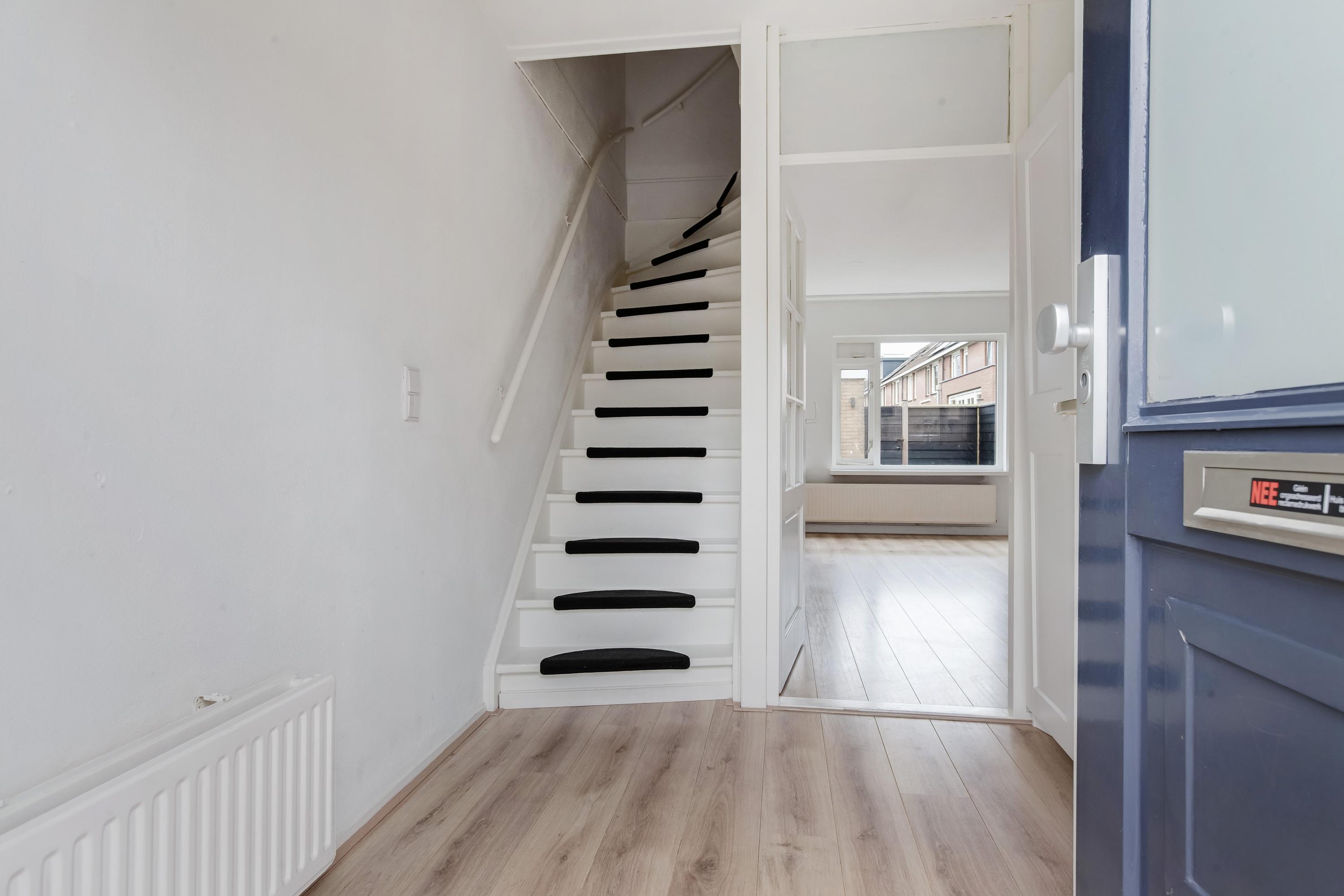 Er is voldoende parkeergelegenheid langs de straat en via de stoep en de voortuin stap je de hal binnen. De ruime hal is voorzien van de toiletruimte, meterkast, trapopgang en de deur naar de woonkamer. De ramen in de achtergevel zorgen voor een fijne lichtinval en dit is de perfecte plek voor een gezellige zithoek. Via een deur loop je zo de zonnige tuin in.