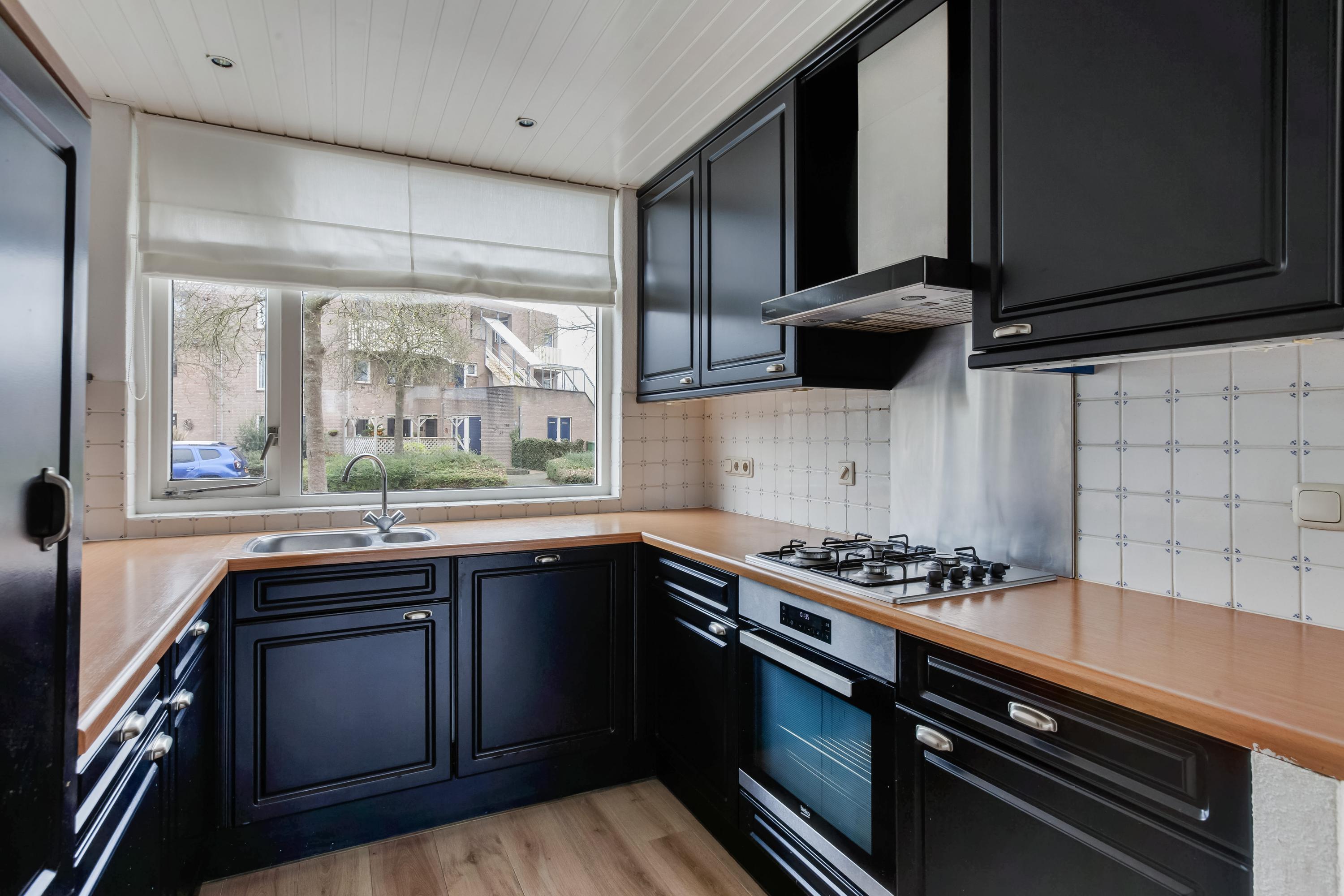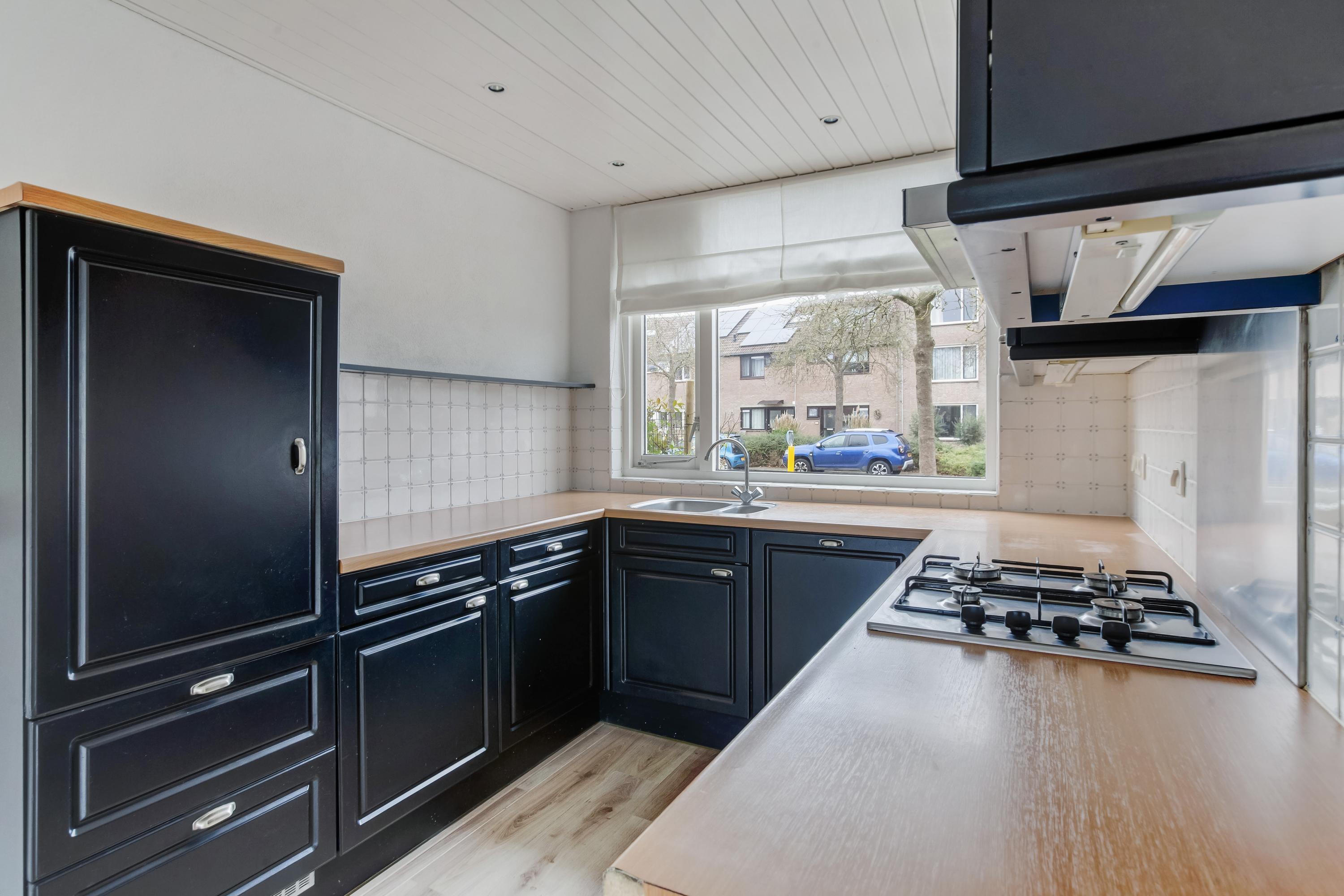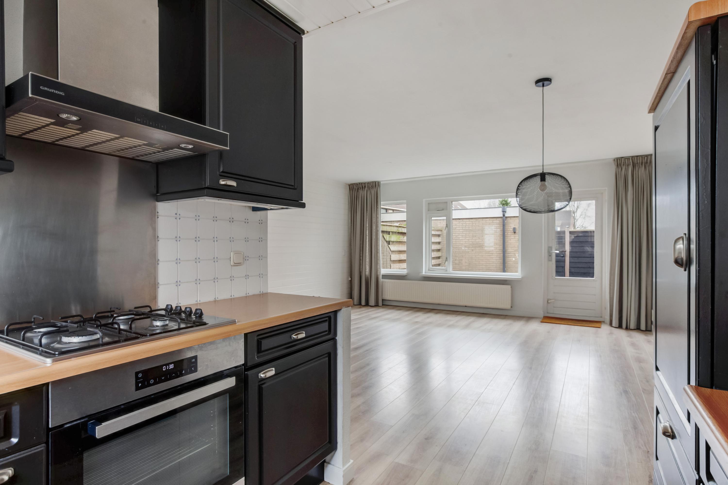 De open keuken aan de voorzijde is in U-vorm opgesteld en hier kijk je leuk uit over de straat. De volgende inbouwapparatuur (2021) is aanwezig: