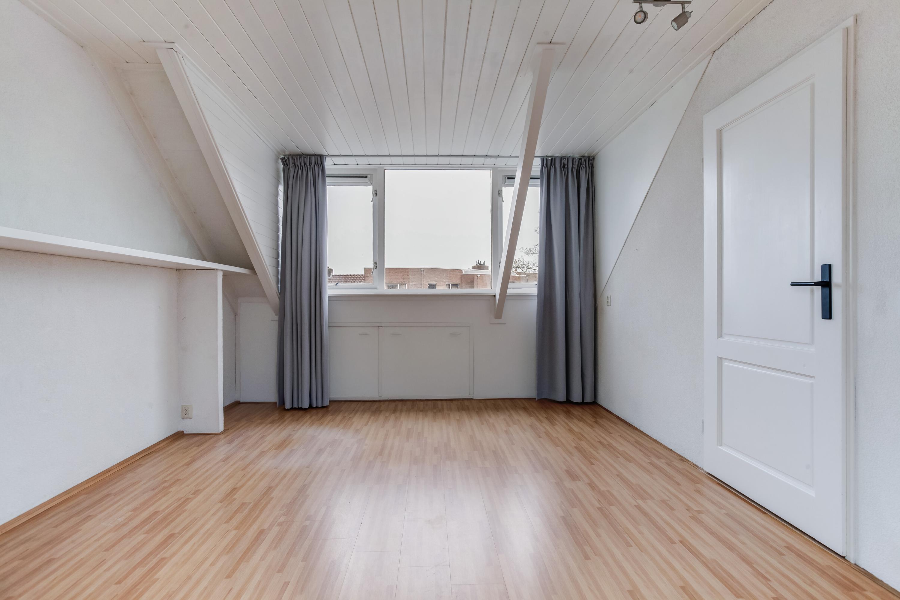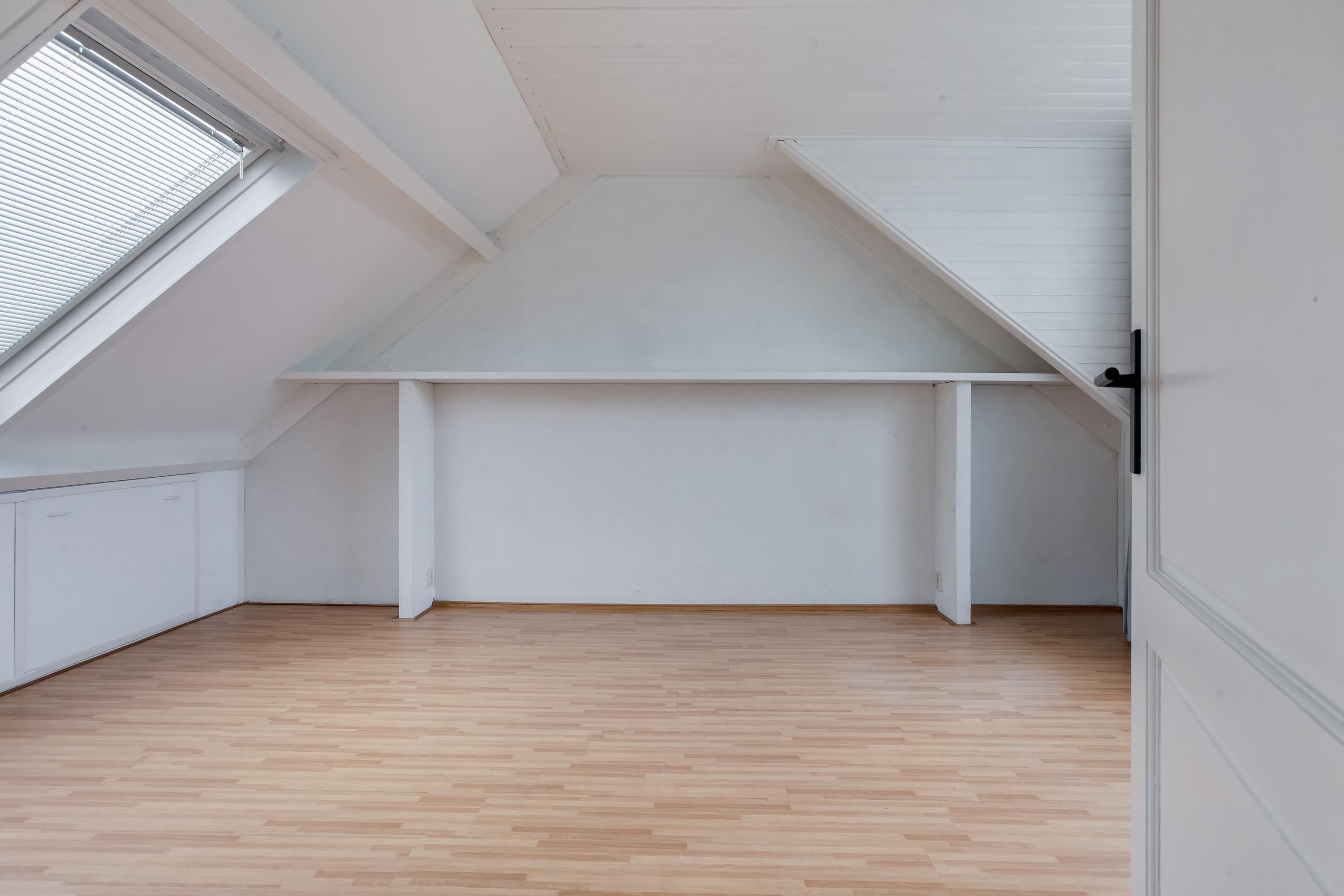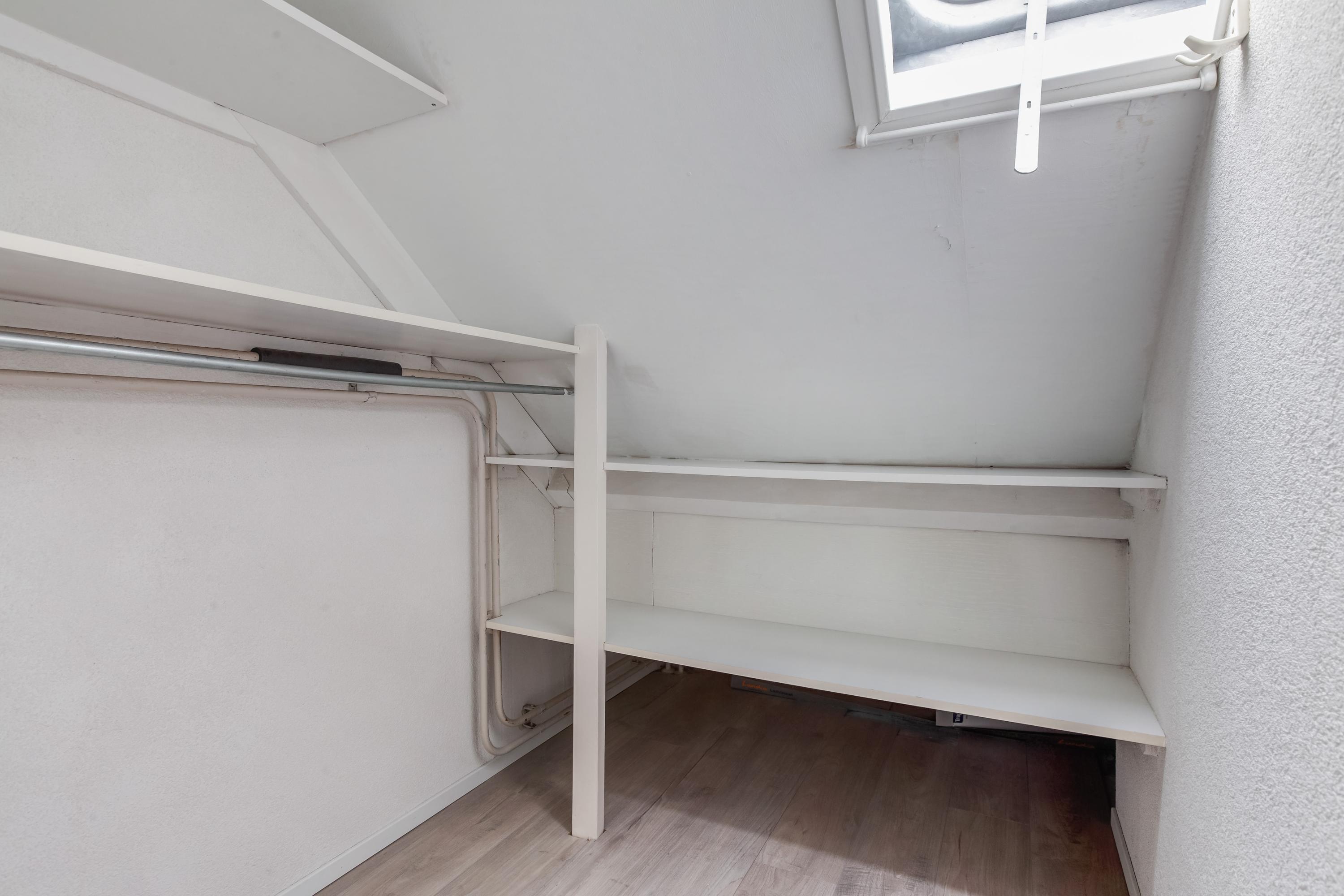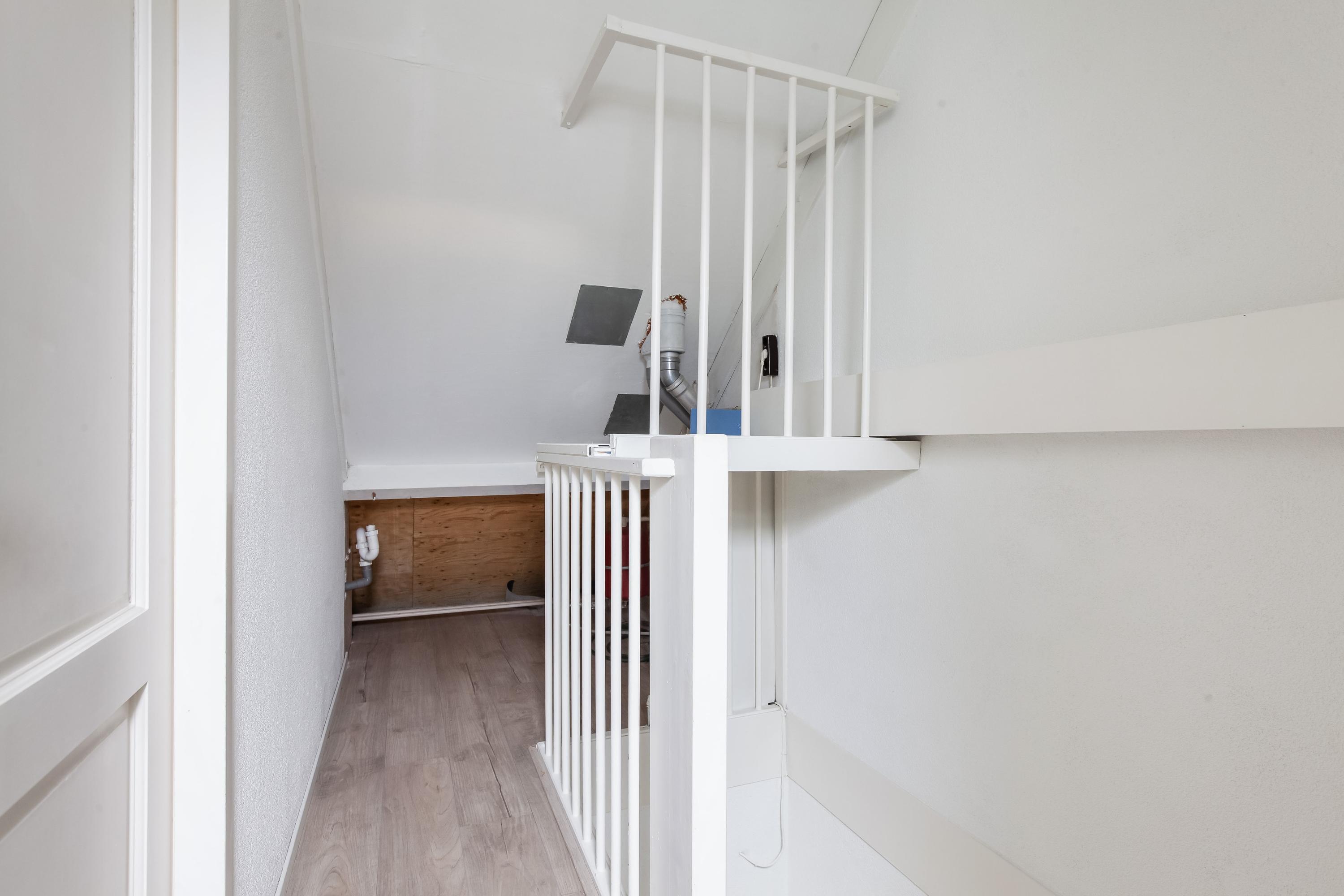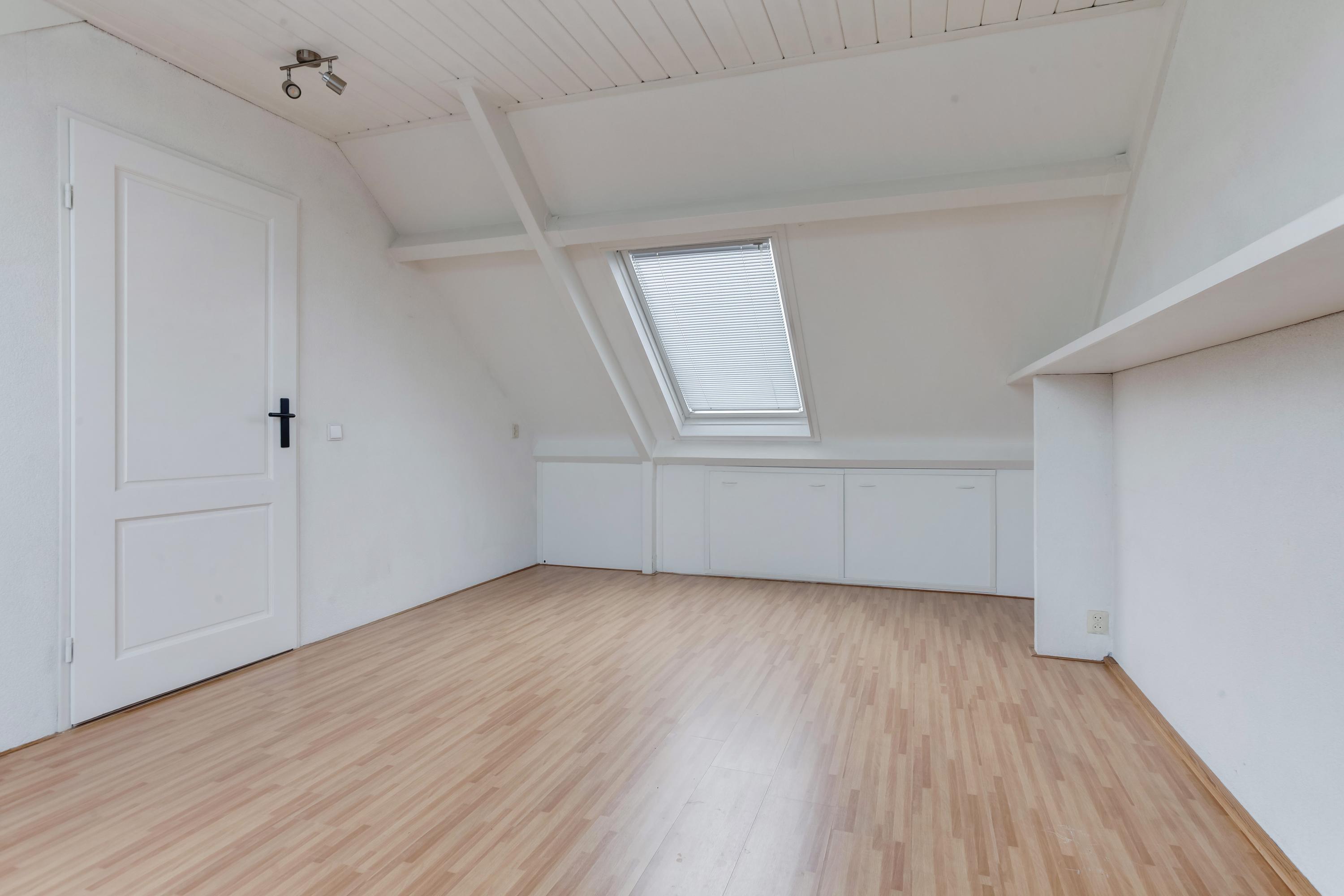 Op de overloop van de tweede verdieping is de CV-ketel opgesteld en hier vind je de aansluitingen voor de wasapparatuur. Verder is er aan de achterzijde een praktische bergruimte aanwezig. De ruime slaapkamer beschikt aan de voorzijde over een brede dakkapel en aan de achterzijde over een groot dakraam, wat zorgt voor veel lichtinval. Onder de schuine kap is volop bergruimte aanwezig en hier bevindt zich tevens de unit voor de mechanische ventilatie.