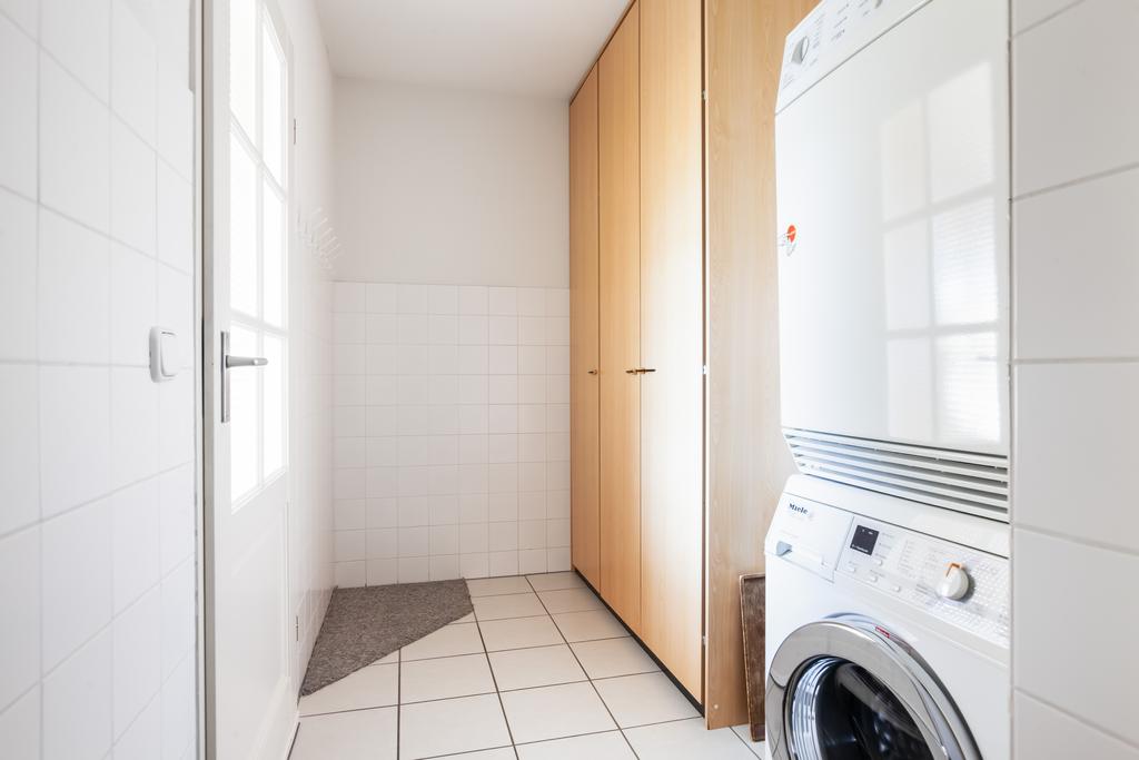 Vanuit de keuken kom je in de bijkeuken met de opstelplaats van de wasapparatuur.