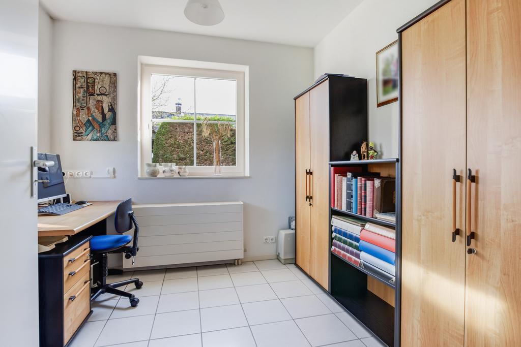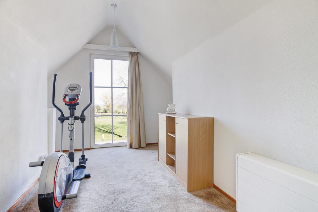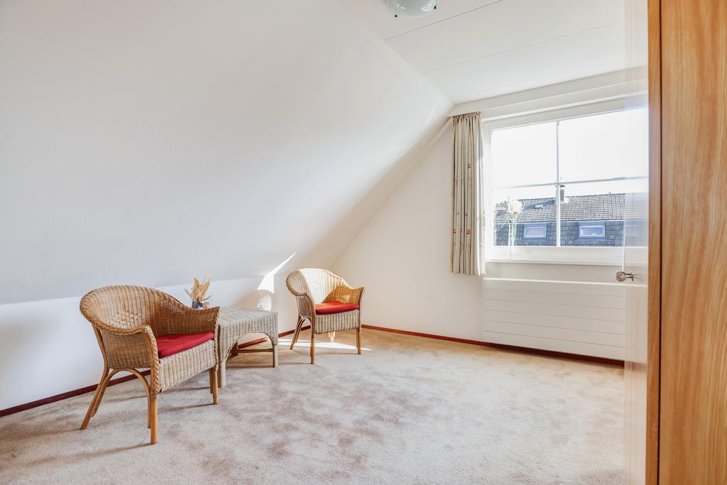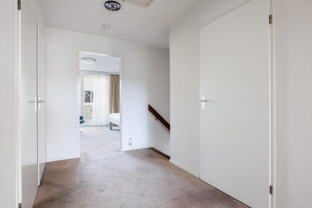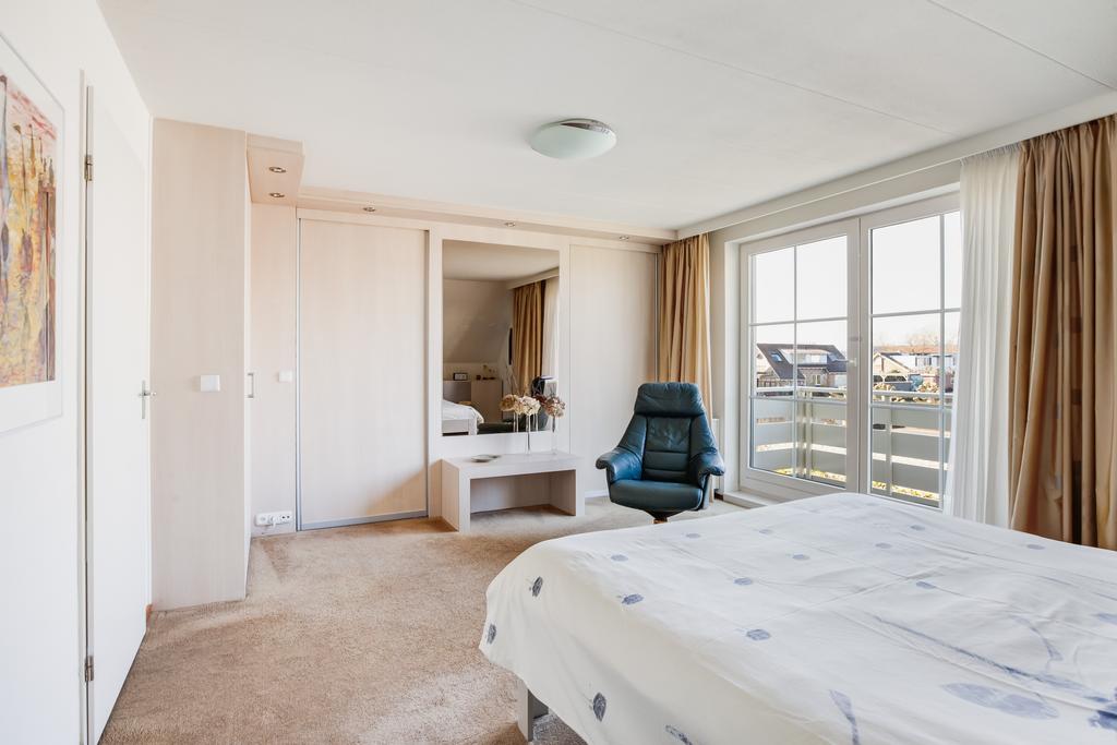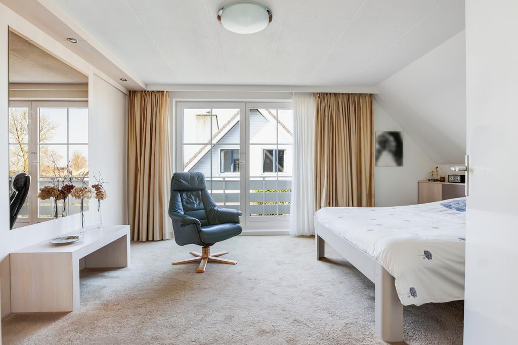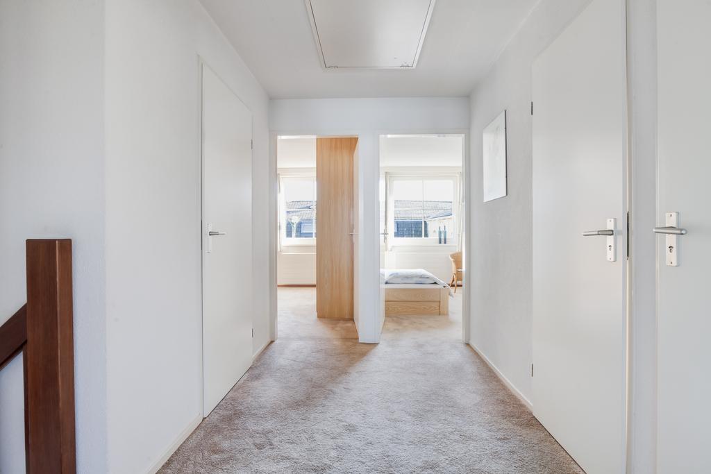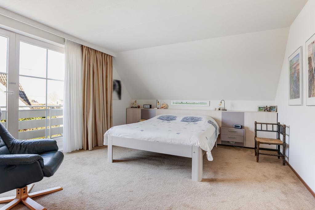 De overloop heeft een luik met een vlizotrap naar de woningbrede bergzolder en een aparte tweede toiletruimte. De masterbedroom is vanzelfsprekend royaal, heeft een inloopkast en een deur naar het balkon. Verder bevinden zich hier nog drie slaapkamers.