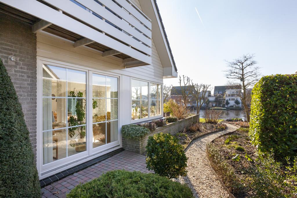 De tuin rondom de woning is met zorg ingericht en biedt volop mogelijkheden om buiten te leven. Dankzij de royale afmetingen en de ideale ligging van het perceel is er altijd een plekje in de zon of schaduw te vinden. Aan de zijkant van het terrein bevindt zich een eigen ligplaats voor de boot. De Oude Rijn biedt schitterende vaarroutes naar onder andere Leiden, de Nieuwkoopse Plassen en andere prachtige natuurgebieden.