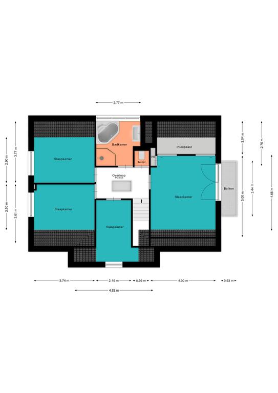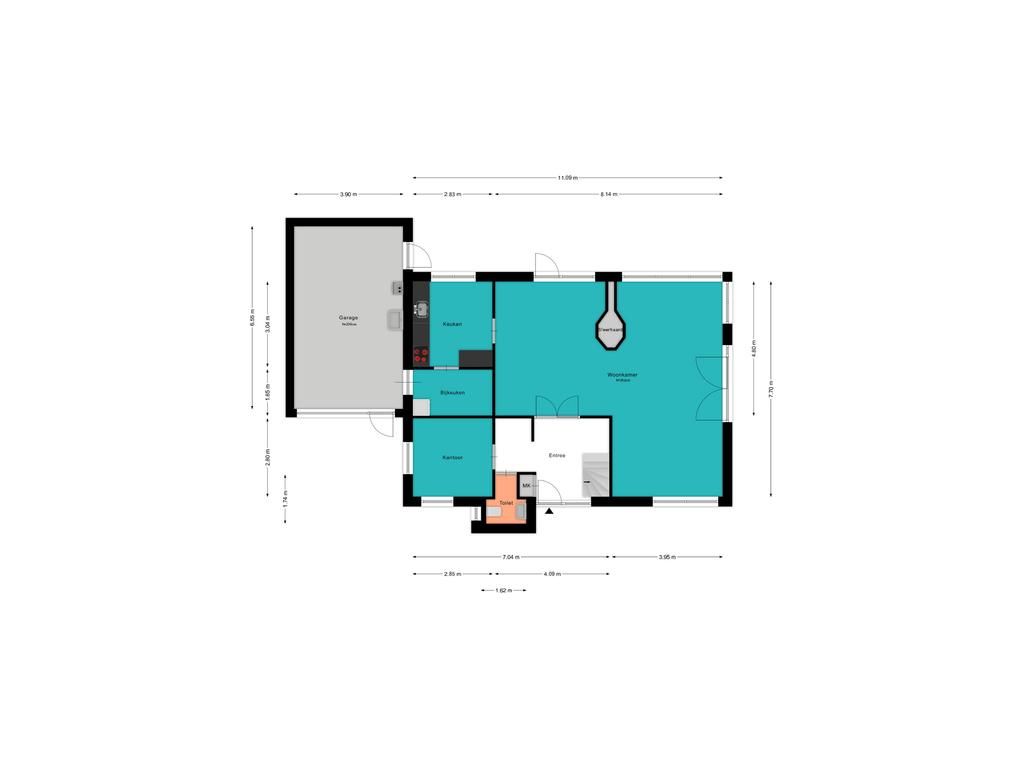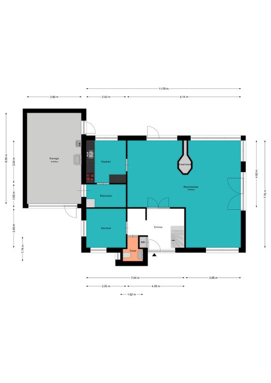 Voor de afmetingen en indeling raadpleeg de gedetailleerde plattegrond.